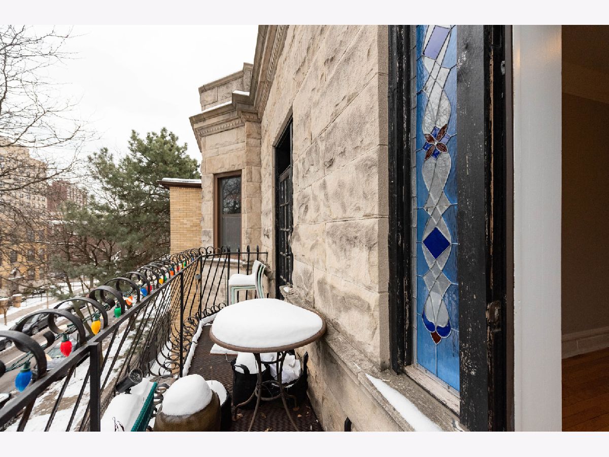 Welcome home to this top floor 3-bed, 1.1-bath unit, that's bursting with vintage charm and full of modern amenities. Located in a well maintained Greystone building on quiet, tree-lined Kenmore Ave in bustling Uptown! You'll be greeted by a large foyer, complete with the original hall tree with built in storage, and a skylight letting in endless amounts of natural light. Off the foyer, you'll find the living room with it's large, east facing bay window, and a charming decorative fireplace with built-ins. The first of three bedrooms is located in the front of the unit, with ample space for a queen bed and furniture, original stained glass, and direct access to the front balcony. Walk across the hall to the generously sized primary bedroom complete with direct access to the home's full bath. Heading towards the rear of the home, you'll find a large, separate formal dining room with enough space for all your entertaining needs; a charming kitchen with granite counters, stainless steel appliances, and 42" cabinets; the third and final bedroom, equipped with a half bath, will give all your guests a nice quiet and private place to retreat to. With central air and heat, as well as in unit washer and dryer, this home has everything you need. Outside the back door you'll be pleased to find a large private deck, as well as a large, shared back yard and patio space - an entertainers delight! One exterior parking space included in the price! Don't miss the large storage unit in the basement! Easily walk to the lake, CTA, Foster Beach, shops, restaurants, and everything Uptown and Andersonville have to offer!