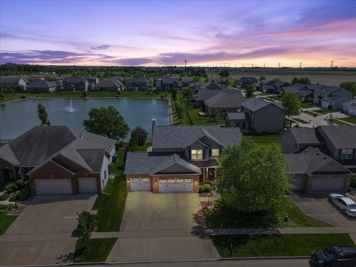 With over $35K in upgrades in the last two years including a new roof in 2020, new furnace and AC in fall of 2021, new stove and microwave in 2022 and newly installed sliding glass doors on all showers, this beautiful turn-key home with spectacular water views in Wills Trace Subdivision will check all your boxes. A large foyer with soaring ceiling greets you and leads you into a formal living room and separate formal dining room with gorgeous wainscoting and crown molding detail. The open concept kitchen with center island, granite counter tops and stainless steel appliances also provides a large eating area that is open to a spacious family room with gas log fireplace. A convenient half bath and laundry room round out the main floor. The second floor offers four bedrooms and two full baths, including a master suite. You'll love the finished basement with a third large living space/recreation room, a fifth bedroom and additional full bath - perfect for guests, hobbies, storage and more! The exterior of this home is truly something special, with a newly renovated all seasons sunroom leading to a fenced backyard, featuring lake views, in-ground pool with fountains and a six person hot tub. The subdivision offers convenient access to Carle at the Fields, I57, restaurants and shopping. House was pre-inspected May 13, 2022 and inspection is available for review.