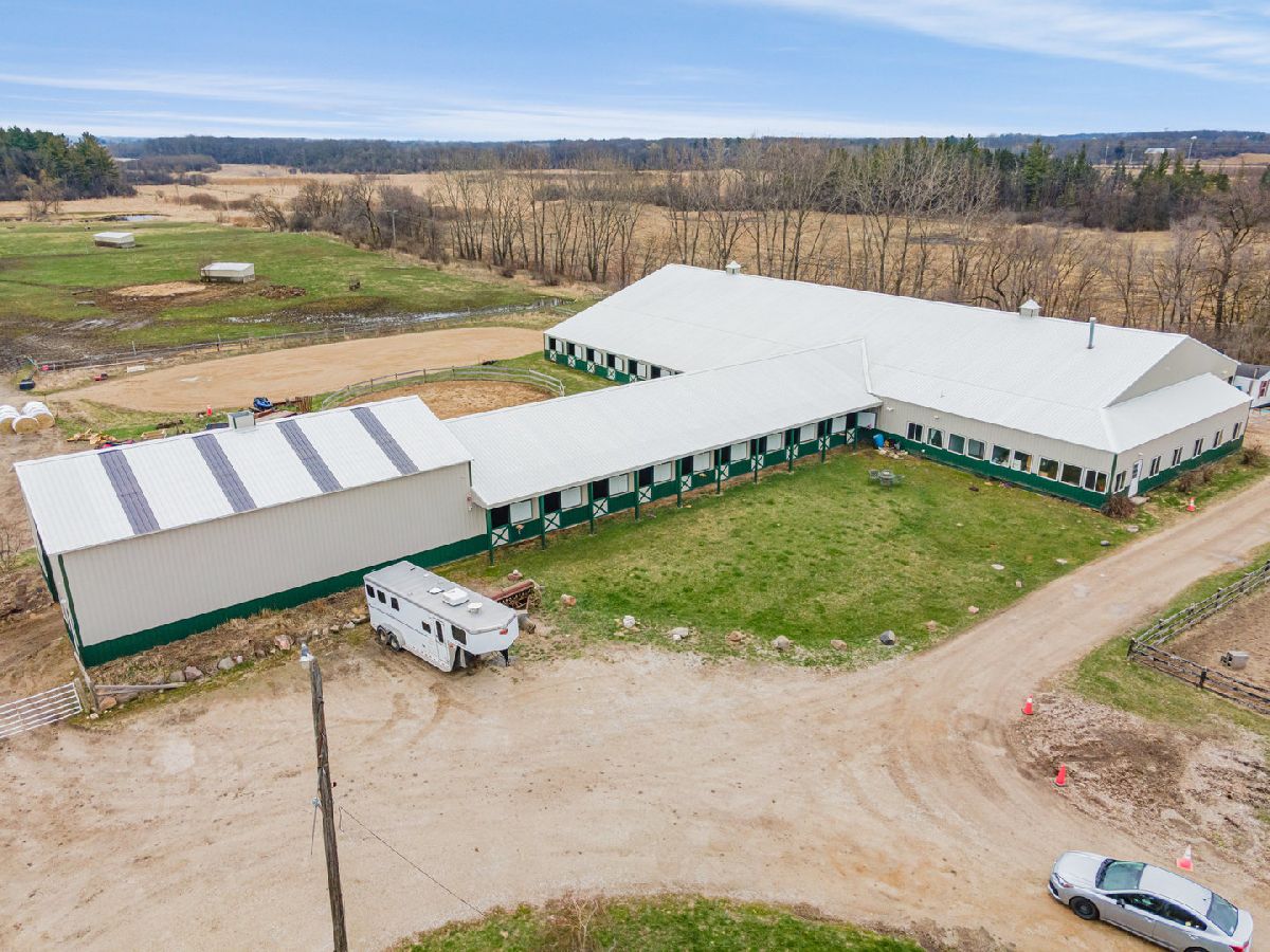 BEST VALUE ON THE MARKET - 10 ACRE HORSE PROPERTY with HOUSE, 25 STALLS, INDOOR and OUTDOOR ARENAS plus ROUND PEN on NATURAL GAS and ZONED A-1; AGRICULTURE. Whether you're a professional equestrian or simply looking for a private horse property that can help pay for itself, this one checks all the boxes! This QUALITY SHOW BARN was built in 2015 and was designed with the serious horseperson in mind. Work year-round in this ALL-HEATED FACILITY! It features 25 tongue-and-groove wood stalls (12x10 and 10x10), each outfitted with a dutch door, mats, automatic waterers, electrical outlet and blanket rack. The barn also includes a well-organized tack room, two grooming stalls and a wash rack (hot and cold water). The INDOOR ARENA is 72x180 with fully insulated walls and ceiling, kickboards and sand footing. The Viewing Room, Offices Half Bath and Laundry have radiant floor heat. The HAY / EQUIPMENT STORAGE SHED is 36 x 60; extra tall and can be closed off when needed. TWO OUTDOOR ARENAS (80 x 180 & 75 x 165) plus a 60 Ft ROUND PEN; all with sand footing. TURNOUT OPTIONS include 4 small and 6 medium sized paddocks and 3 large grass pastures (with 2-Lean-tos) and one with cross country jumps. (NOTE: Some of the turnouts are on an additional 5 acres of leased land from Comed at less than $300/year.) Access the Bridle Path behind the mobile home...follows the fence line and is approximately 1 mile. The horseshoe shaped drive makes pulling trailers in and out, a breeze! The HOUSE is 2300 sq ft with a Kitchen that has Dining space and opens to the Living Room with a beautiful stone fireplace. There is also a formal living room and office. The 3 Bedrooms are upstairs and all are a generous size with hardwood floors. One of them boasts a private balcony with stunning western views-ideal for relaxing after a day at the barn. 2 Full baths, Extra Deep Attached 2-Car Garage, a large mudroom, 1st floor laundry and a Basement that's good for storage. WHOLE HOUSE GENERATOR - powers the well during outages. The MOBILE HOME with 2 Bedrooms for the farm help is currently rented at $900/month. Not a trainer? Use some stalls for your own horses and lease a block of stalls to a trainer to generate income and have the property help pay for itself! CONVENIENTLY LOCATED equal distance between Lamplight and Ledges show facilities as well as the towns of Woodstock and Crystal Lake offering convenient access to shopping, restaurants, transportation and other amenities. **HAVE ANOTHER VISION? Add fencing to give every horse it's own individual paddock. Add temporary stalls to the hay barn when needed. In the House...need a 1st Floor Bedroom? Convert the Front Living Room and Back Office into a Bedroom and 3rd Bathroom. ** ROLL YOUR DESIRED IMPROVEMENTS INTO YOUR LOAN! Ask us for recommendations of Agricultural lenders have a program for this! * BE SURE TO CLICK ON THE VIRTUAL TOURS OF THE BARN AND HOUSE!