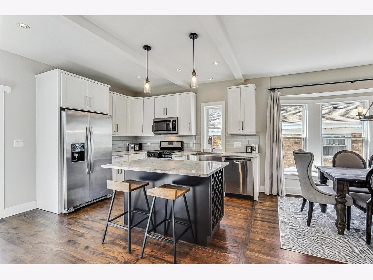 Welcoming and fully updated 4BR/3BA home in Jefferson Park. Open concept main floor flows with beautiful light from one end to the other and features: gorgeous, dark hardwood floors; modern, eat-in, island kitchen; dining area with bay window; on-trend bathroom; and ground floor office/bedroom. The kitchen/breakfast area opens directly out onto pergola-topped large deck and down to the garden and 2-car garage. Ideal floorplan with three bedrooms upstairs-the primary with contemporary en-suite bath and dual closets, as well as two further bedrooms with the most incredible walk-in closets and a second full bath. Finished basement has both entertainment/play space as well as all the utility and storage one could need. Commuting dream with easy access to I-90/94, Blue Line, Metra, O'Hare airport and near parks, shopping and Beaubien Elementary School. Please be advised that sellers have requested a deadline for offers to be set for Monday, 5/13 at 10am.