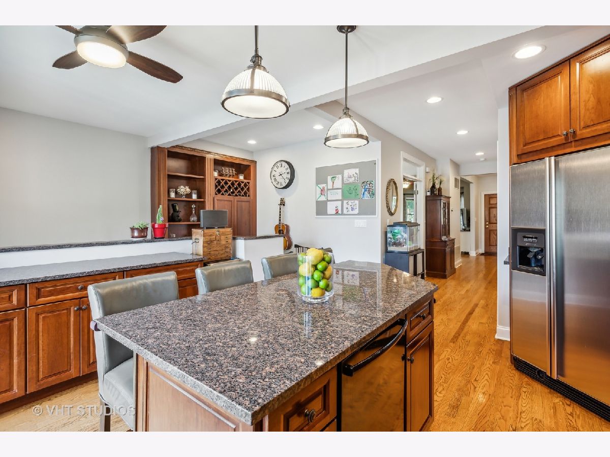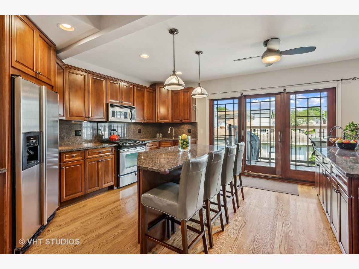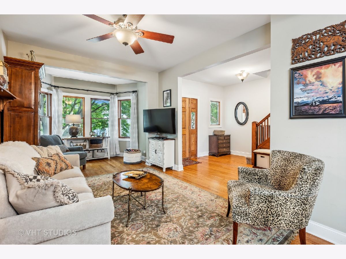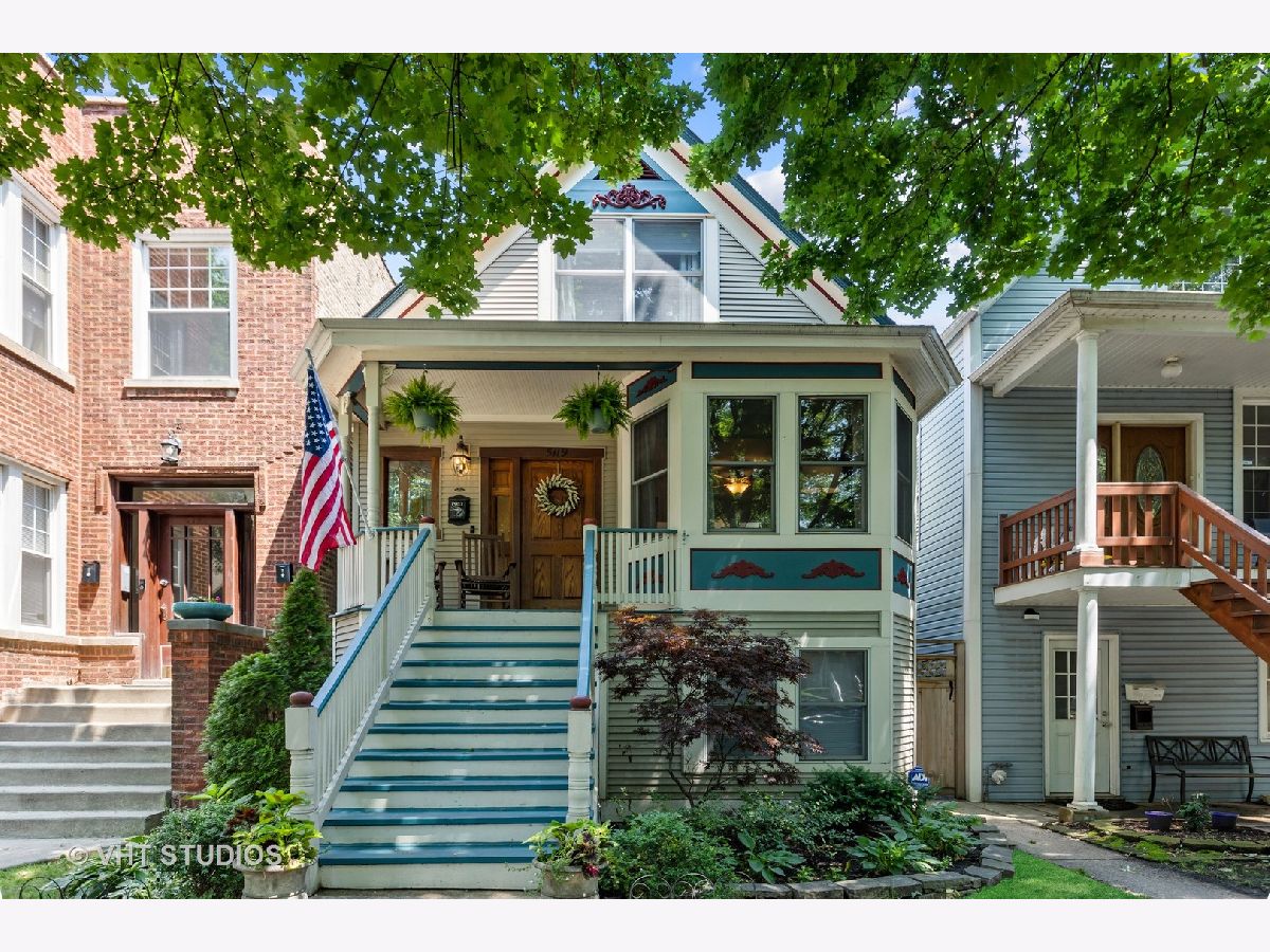 Welcome home to this Lincoln Square charmer on a beautiful tree lined street! This floor plan allows for flow and entertaining! Plus 3 bedrooms on the 2nd level, thanks to a recent addition. And, the lower level is only a couple inches below grade and offers ample ceiling height! Graced by Victorian accents and lush landscaping, enter via the gracious front porch and foyer with a leaded glass window. The first floor features hardwood floors, an open living room with wood paneling and a bay window; a separate but open dining room with french doors; a spacious kitchen with custom cabinetry, built-in storage, granite counters, large breakfast bar for gathering, stainless steel appliances, and Craftsman style glass doors leading to a deck for dining and grilling; plus laundry, pantry, a powder room, and coat closet. Heading down from the kitchen, it is a seamless transition to the walkout basement and rec room. There is a fireplace, built-in storage, a 4th bedroom with en-suite bath & steam shower, plus 2 large storage closets, and access to the brick paver patio. The second floor features 3 bedrooms, 2 baths, skylights, and ample storage. The addition in 2017 allowed for an expanded primary suite with a beautiful spa bath & walk-in Elfa organized closet. The primary spa bath features heated floors, a double vanity with quartz counters, skylight, linen storage, and shower. Large backyard with well maintained lawn and garden. 2 car garage with party door. Wonderful block to live on! Very quick walk to Winnemac Park, Chappell Elementary, Amundsen High School, shops on Lincoln Ave and breweries. This home checks ALL the boxes!
