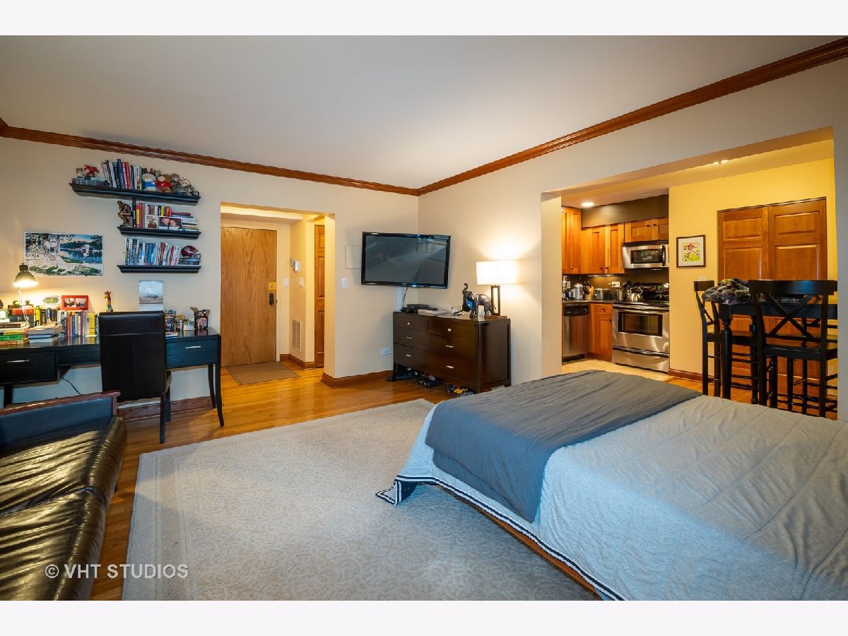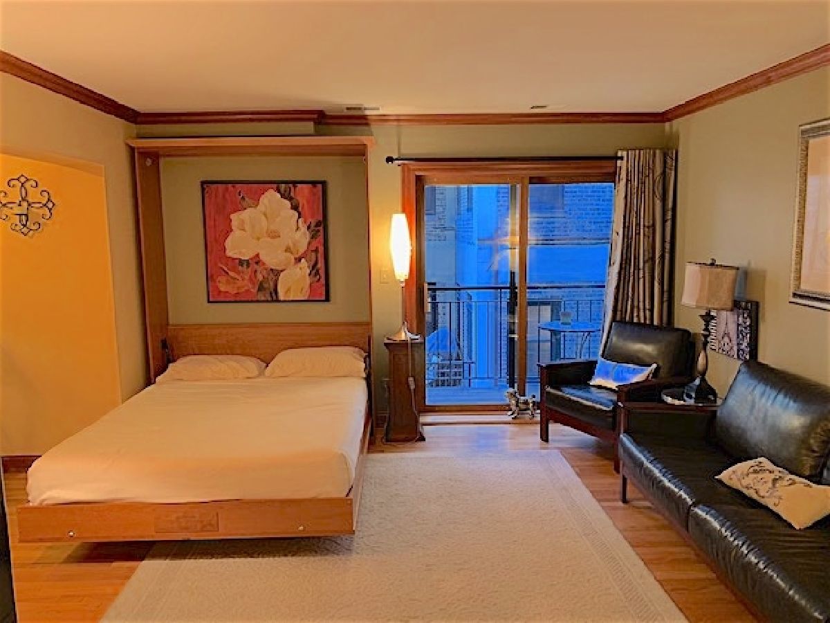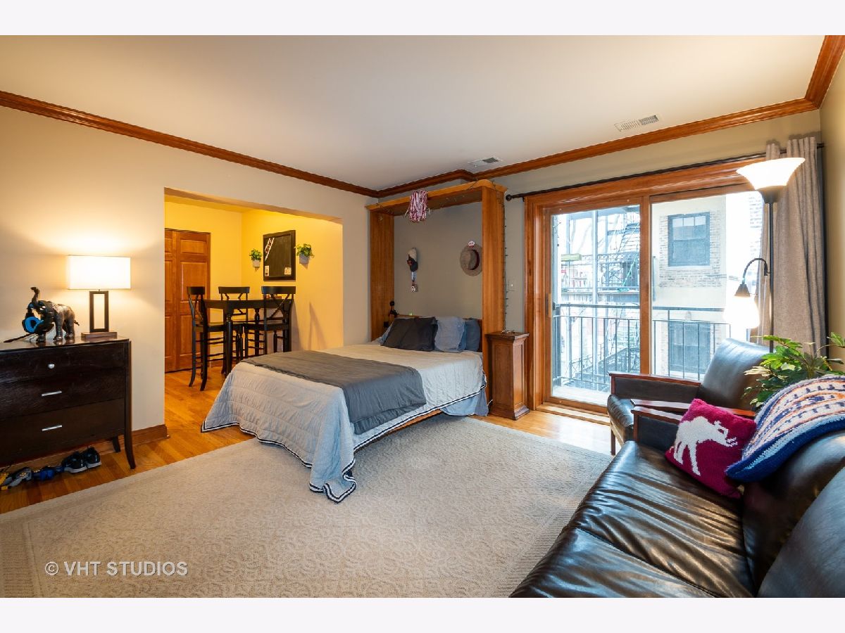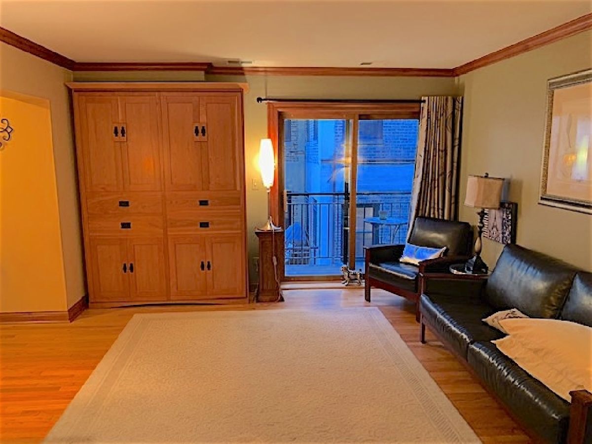 Large bright studio in Lakeview East. Prime location with new Marianos, XSport, and Starbucks at end of the block. Short walk to the Belmont El, plus six bus lines at the corner. Unit gets tons of light from the sliding doors which access the private balcony. The unit's spaces are smartly divided clearly defining living, sleeping, kitchen, and even home office spaces. Hardwood floors throughout, custom solid wood doors and hardware, crown molding, and the custom built murphy bed is included. Kitchen features stainless steel appliances and granite countertop. There is a large space for a dining table and several full-size closets. In unit washer/dryer hook up in dedicated closet plus building common laundry room. Additional storage cage and bike room included. This is an elevator building with a bright secure lobby with full time maintenance. Pet friendly and FHA approved building. Note that the low assessments also include cable and internet. Out your door to all of the shopping, dining, and transportation options of Lakeview, and live so close to the Lake. Available for in person showings!