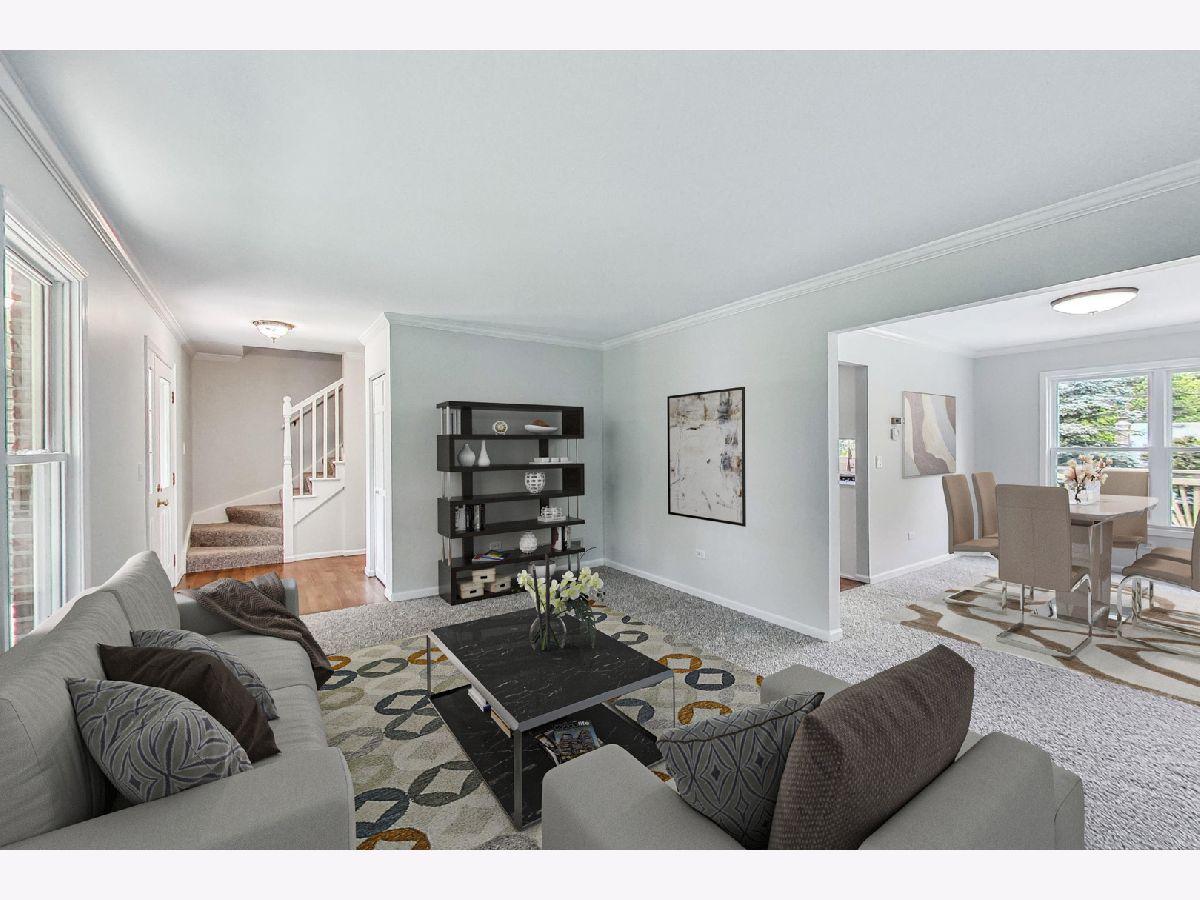 Welcome to your dream home! An elegant and meticulously updated 3 Bedroom, 2.5 bath home located in the sought after Foxmoor Subdivision. Upon entering you will notice the refinished hardwood flooring in the kitchen and entryway creates a warm and inviting ambiance, while the all-new carpeting throughout the rest of the home provides plush comfort underfoot. The entire interior has been treated to a fresh coat of neutral colored paint, enhancing the sense of light and space. The eat-in kitchen features gleaming quartz countertops, classic white shaker cabinetry and modern backsplash. The spacious family room beckons you to unwind by the fireplace creating the perfect spot for cozy evenings. Upstairs you will find 3 spacious bedrooms, a full bath with new vanity, and a bonus loft area perfect for storage or play room. The primary bedroom with ensuite is updated with all-new shower tile, glass doors and modern vanity. Huge backyard with large repainted deck truly sets it apart, offering an extraordinary outdoor extension of living space. Partial unfinished basement and 2 car attached garage. Blacktop driveway was just resealed. Walking distance to Algonquin Road Elementary School, parks, ponds and all that you need! WELCOME HOME!! Broker owned interest