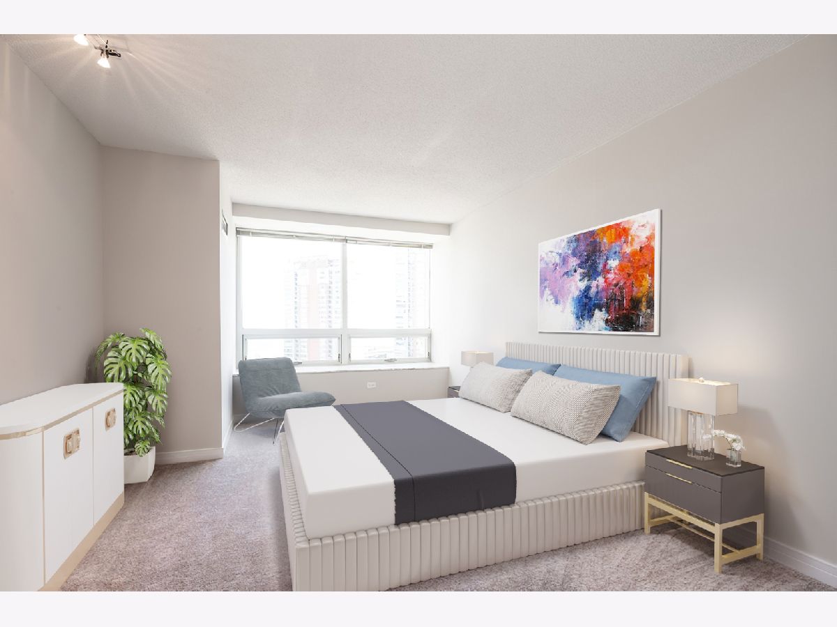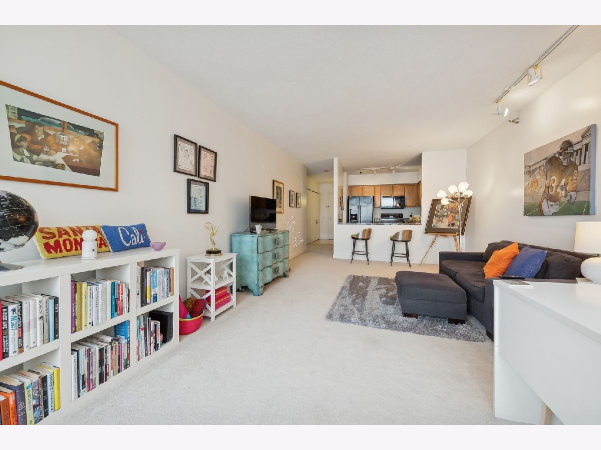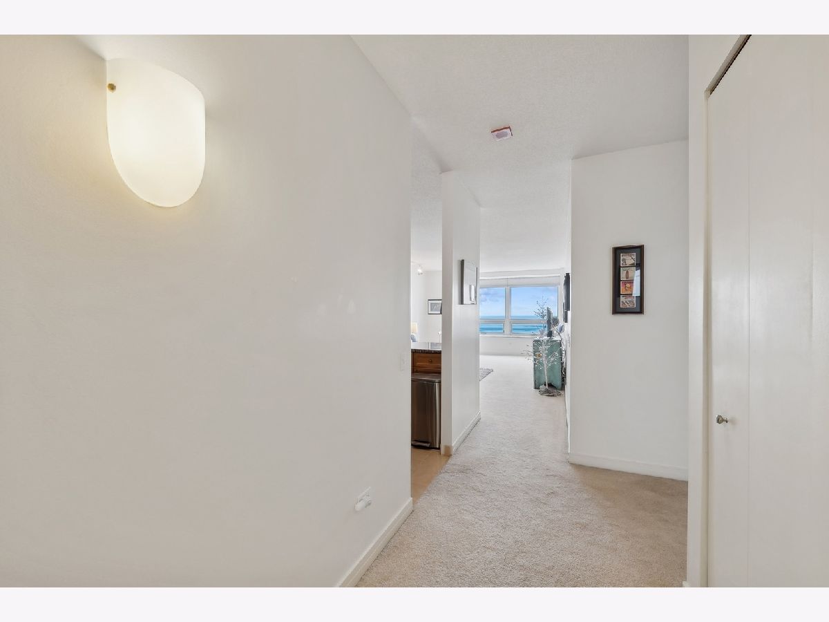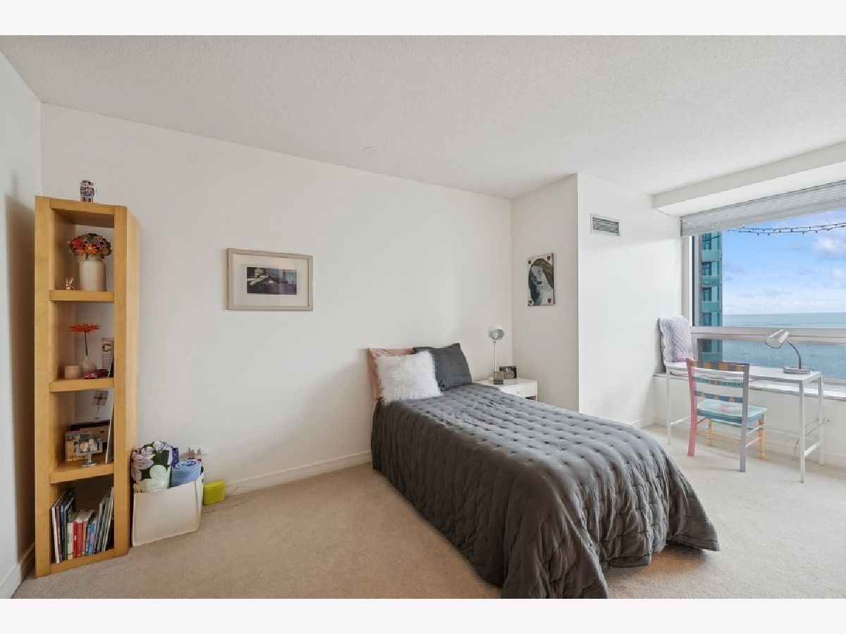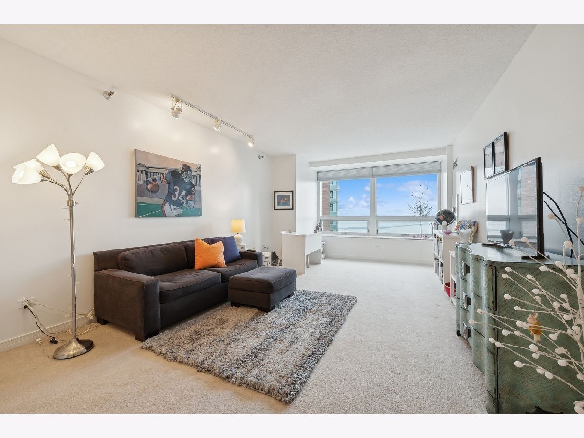 Welcome to your dream home in the heart of Streeterville! This stunning one-bedroom condo offers unparalleled southeast views of Lake Michigan from the spacious living room, enhanced by expansive picture windows that create a bright and airy atmosphere. The generous 965 sq ft layout features a large living/dining area with perfect for relaxing or entertaining while taking in the serene lake vistas. The open-concept kitchen includes a breakfast bar ample cabinet space making it ideal for culinary enthusiasts. Retreat to the nicely sized primary suite, where you'll find soothing soffit lighting and an organized walk-in closet. The adjacent bath features an oversized vanity and luxurious soaking tub with glass doors. Additional highlights include the convenience of an in-unit washer/dryer and custom window treatments. Full Amenity building with 24 hr. door staff, exercise Room, sundeck with grilling stations, and a newly updated business center and entertainment room.