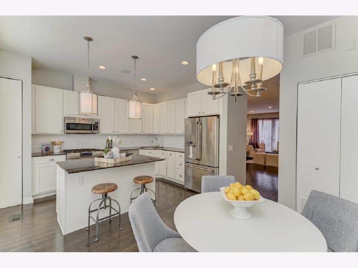Nestled in the vibrant heart of Chicago's sought-after Fulton River District, steps from the Fulton Market and some of the best bars and restaurants in the city, this exquisite four-story townhouse located in the serene Via Como neighborhood presents a rare blend of city charm and tranquil living. Completely remodeled with the discerning tastes of married, working professionals in mind, this home is a sanctuary for those envisioning a bustling city life balanced with the comfort and warmth of a family home. The heart of this home lies in its thoughtful design. As you step through the gated garden, graced with lush white hydrangea bushes, the tone is set for a residence that marries elegance with functionality. The beauty of dark hardwood floors welcomes you, extending throughout the house, complemented by sophisticated shutter window treatments that frame every room with a touch of grace. Ensuring optimal living conditions, this home boasts upgraded appliances, a new furnace and air conditioning unit, a new tankless water heater for endless hot showers, and a new humidifier and air purification system. As you enter the house, imagine peacefully working from the comfort of your home in a large bedroom area that doubles as an office, complete with a full bathroom. Beyond the full bathroom is a large, heated two-car garage, a rarity in the city, which adds unparalleled convenience to urban living. As you walk up the stairs, the main living floor floods with natural light and unfolds as a testament to luxury and comfort. The bright, gourmet kitchen features a cozy eating area, a large island, and a balcony overlooking a charming brick courtyard with a built-in natural gas line for effortless grilling. Adjacent to the kitchen, a roomy dining area underneath a picturesque chandelier and a spacious sitting area, with a fireplace and custom-built shelving that promises memorable evenings with loved ones. Above the main living area, the privacy of the bedroom floor offers a sanctuary for rest and rejuvenation. Two bedrooms, equipped with custom-built closets, share a lovely guest bathroom, ideal for children or guests. While the master suite offers a retreat with floor-to-ceiling Carrara marble in the bathroom, an extra-large, custom walk-in glass shower, a large double vanity, heated floors, and a large walk-in closet designed for the expert fashionista. The crown jewel of this home is the private rooftop deck on the top floor, offering sun-soaked leisure and panoramic city views. The potential to build your dream rooftop oasis is now a reality, thanks to recent amendments to the HOA Decs and Bylaws that permit fourth floor additions. Envision the fourth floor as your blank canvas, awaiting your creativity to transform it into the rooftop retreat of your dreams. Perhaps you've always dreamed of an urban garden under a pergola, where verdant plants and flowers create a serene oasis against the backdrop of the bustling city. Or envision expanding your living space for tranquil morning workouts coupled with sun-drenched relaxation. Or, for those who seek the ultimate in relaxation, consider the luxury of a rooftop spa, featuring a hot tub where you can unwind under the twinkling city lights. This space offers a rare opportunity in the Via Como neighborhood to fully express your unique vision. Additional bonus features to this townhouse include an installed electric car charger, extensive childproofing, in-wall speaker system, a garden sprinkler system, low maintenance composite rooftop decking, and exclusive zoned street parking, ensuring this home is not just a residence but a lifestyle choice. Embrace the opportunity to make this your dream home and begin thriving in your family's next chapter.