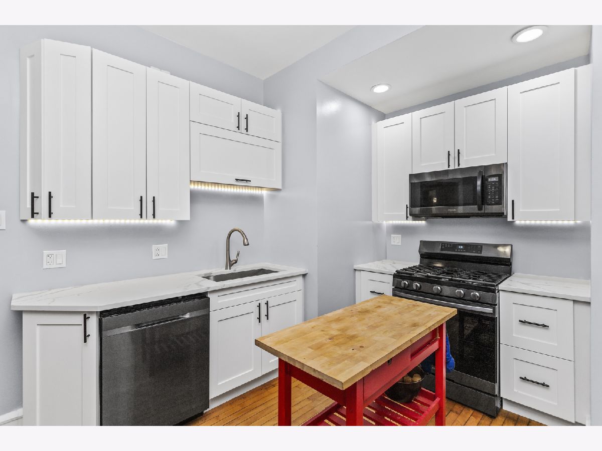 Looking for a Great Uptown Condo? This Two Bedroom, One Bathroom End Unit offers Tall Ceilings, Hardwood Floors, and Ornate Millwork that is highlighted by the Natural Light that fills the Spacious Open Floor Plan. Relax in the Living Room or make your way to the Sunroom that features Large Windows that treat you to Views of the Park. The Fully Renovated Kitchen boasts 42" Cabinets, Quartz Countertops, Upgraded Stainless Steel Appliances, including a 5 Burner Stove with Micro Hood, French Door Refrigerator with Water / Ice Dispenser, Dishwasher, Touchless Faucet and a Floor-to-Ceiling Pantry! There is a Large Primary Bedroom and a Spacious Guest Bedroom, both with New Windows and Custom Radiator Covers. To Complete the Condo there is a Full Bathroom and a Private Porch off the Kitchen. The Building offers On-Site Storage, an On-Site Laundry Facility (included as part of the HOA) and One Garage Space! This Prime Location is Moments to: The Red Line, Mariano's, Jewel-Osco, Montrose Beach and Montrose Dog Park, Sydney Marovitz Golf Course, Shopping, Dining, Nightlife and More.