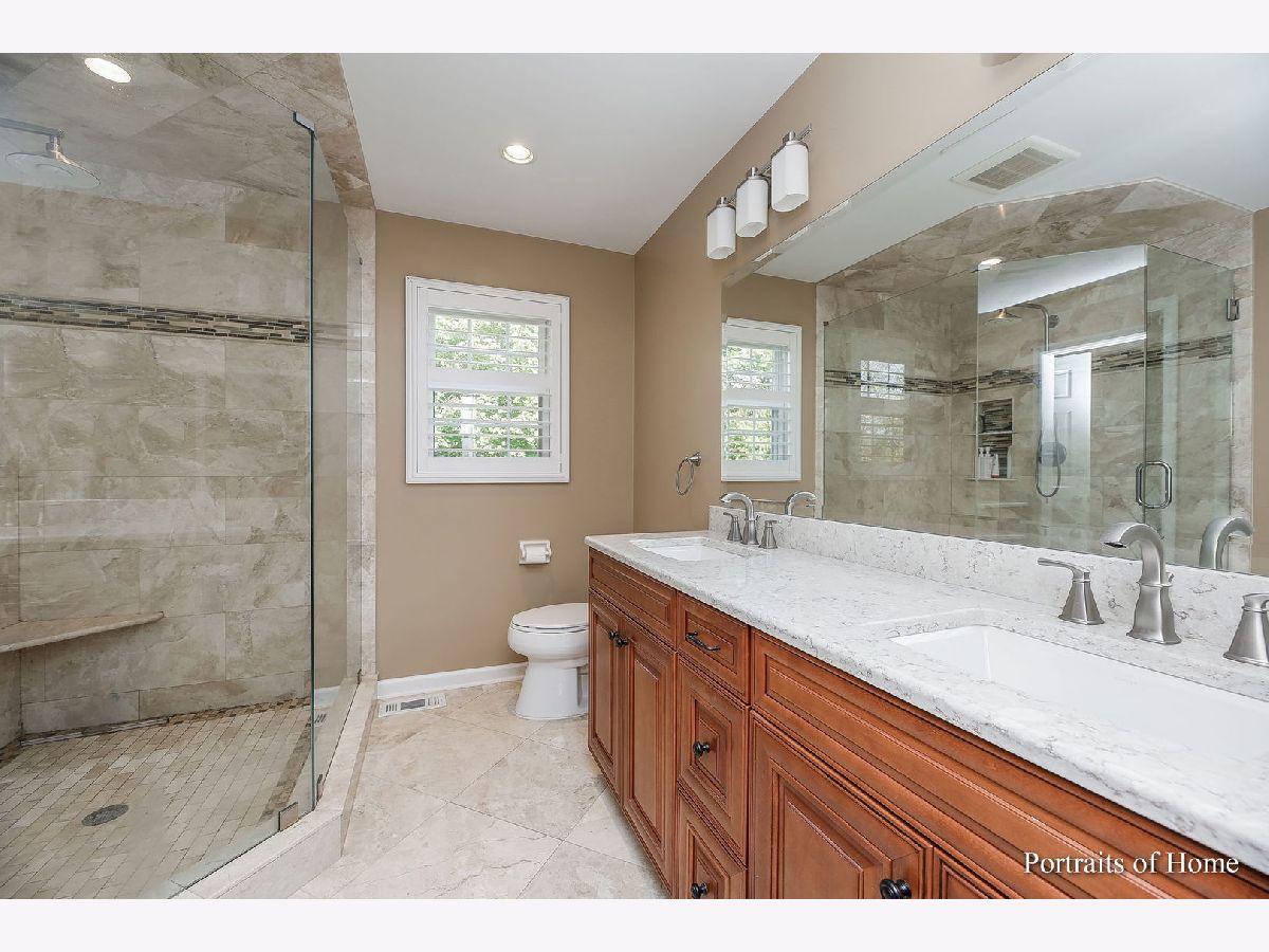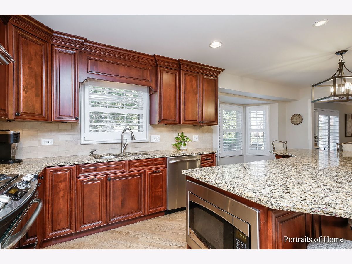 This beautifully updated, impeccably maintained, Heritage Knolls home is one you need to see to believe! Ready for the holidays this home shows like a model! There is literally nothing to do here but move in and enjoy the approx 3140 SF of finished living space! Impressive front elevation features a beautiful brick facade, updated front door with prairie style privacy glass & sidelight panels, new landscaping, custom trim and elegant light fixtures! Stepping inside you'll love the fresh paint in today's on-trend colors with crisp white trim, gorgeous Norman plantation shutters throughout, updated lighting and stunning wide plank solid oak flooring! The fabulous chef's kitchen features an oversized island with loads of seating, solid maple cabinets, soft close doors & drawers, wine rack, garbage/recycle drawer, granite counter tops, custom backsplash, under cabinet lighting, range hood, recessed lighting, high end GE stainless steel appliances, large pantry closet and bay window overlooking the private back yard. Perfectly designed for entertaining the kitchen is open to the large family room featuring a beautiful brick surround fireplace with gas log set, glass doors and oversize base board trim. French doors open to the private paver patio and beautiful back yard. The large dining room has chair rail, designer paint and is conveniently open to the kitchen and foyer. Of special note is the large first floor office featuring luxe carpeting and plenty of natural light. Heading upstairs note the updated metal staircase spindles. All four bedrooms are very spacious and are in pristine condition. The hall bath has been recently remodeled and features a white vanity, porcelain tile wood look floor and custom shower surround with designer inlay. The master suite features a beautifully updated bath with double sinks, quartz counter top, marble flooring and a huge walk in shower with marble tile, large shower seat and a custom frameless glass enclosure! The master closet has upgraded lighting and a custom closet organizer system. Downstairs you will find a fabulous rec room with built in projector and surround sound system perfect for watching the big game or movie night. There is also an ideal space for an exercise area. In addition there is a large unfinished area providing ample storage space. Additional updates include: driveway 2017, Dryer 2020, 50 gal water heater 2021, Roof/Siding/Windows 2006. There are well over $200,000 worth of updates throughout this home! Top ranked district 203 schools! Fabulous location is just 12 minutes to downtown Naperville and Metra train, just 2 minutes to River Woods Elementary School, just 6 minutes to Marianos and Jewel, and .7 miles to the forest entrance leading to both Whalon Lake & Knock Knolls Park & Nature Center w/miles of walking/biking trails, fishing, canoeing & dog park! Join Naper Carriage Hill Swim Club, just 4 minutes from this home! Low Taxes! Welcome Home