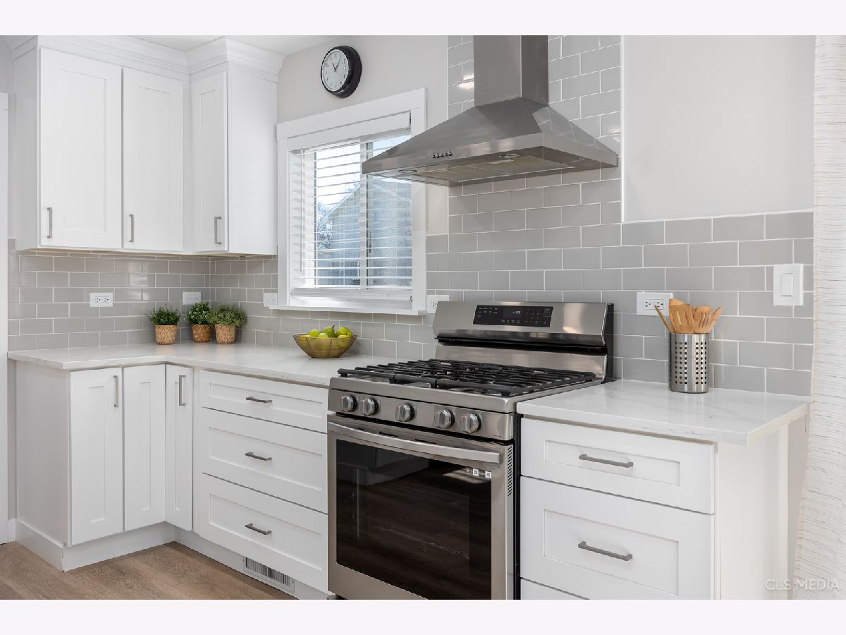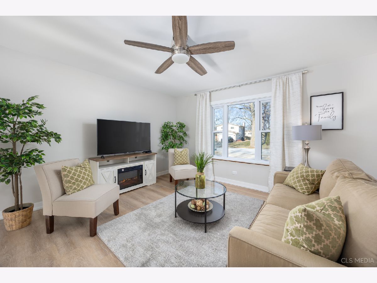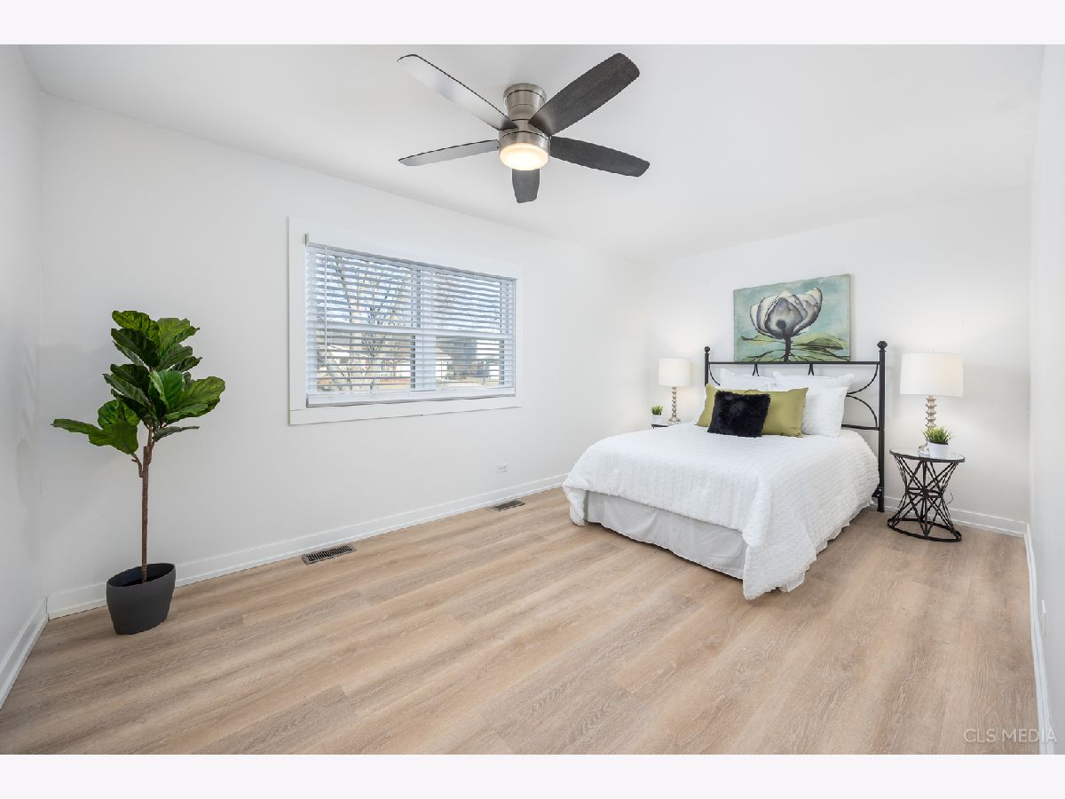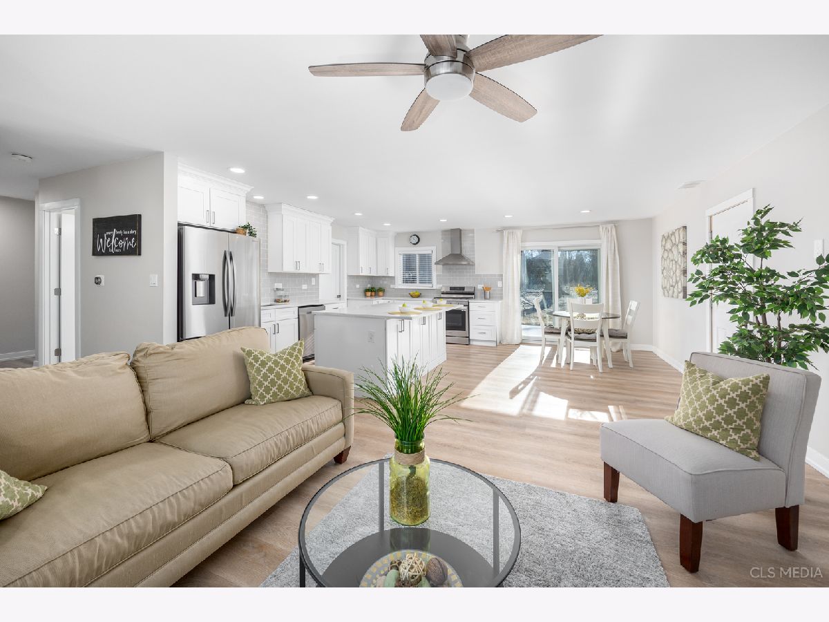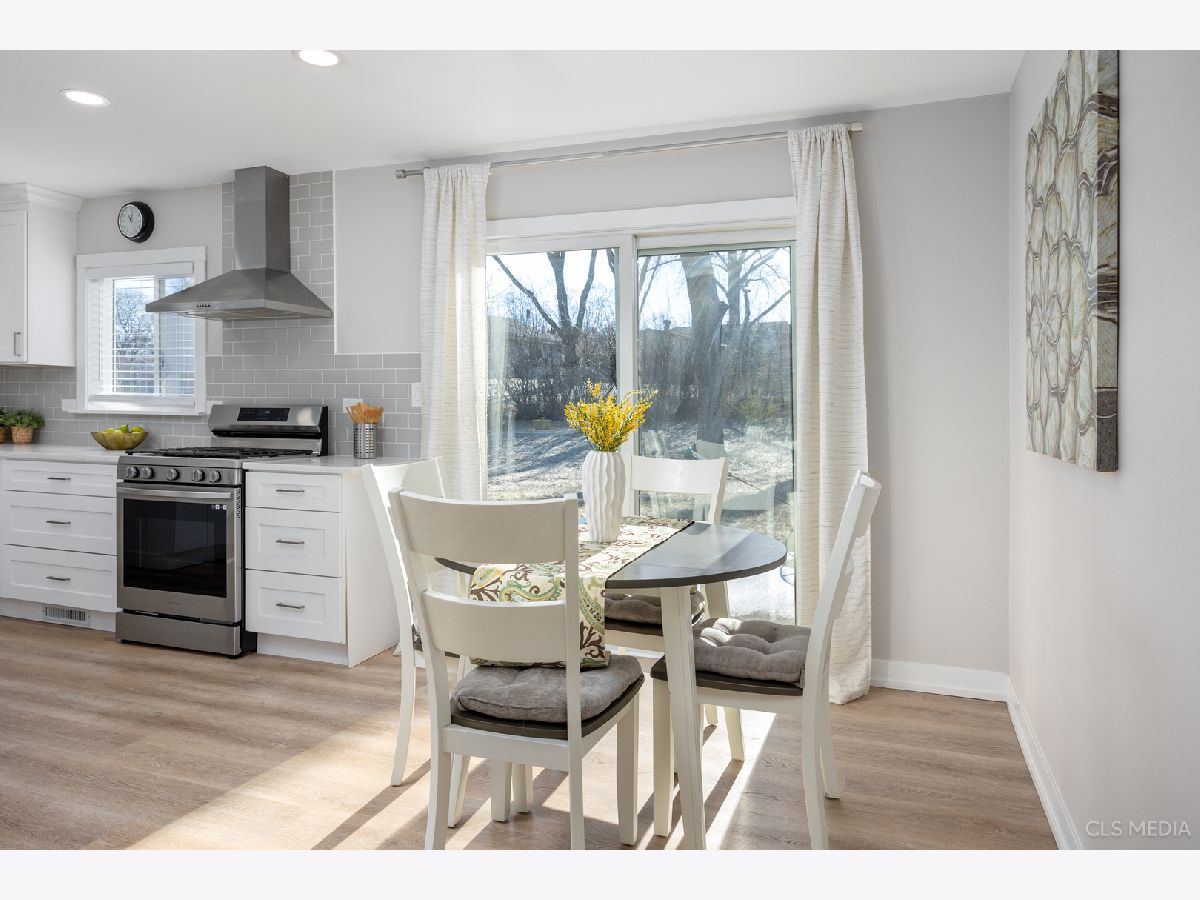 Must see gorgeous RANCH home with timeless updates. Loads of natural light fill this beautiful open-concept kitchen featuring a huge eat-at island. Quartz counters, white shaker cabinets, all stainless appliances. Luxury vinyl plank flooring throughout, solid wood doors painted white with high-end trim. Big, fenced-in back yard with newer concrete patio and new brick paver sidewalk (2022). Newer vinyl windows (2018) and new patio door (2022). Roof, gutters, facia (2019), siding (2022), driveway (2019),garage door (2019). HVAC about 2018. Full remodel (2022) done with permit from the Village of Schaumburg.