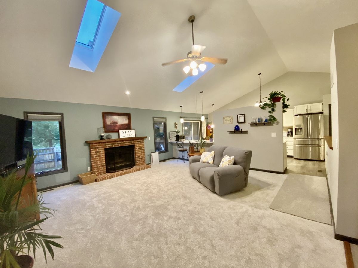 PROFESSIONAL PICTURES TO COME! Move-in Ready! Beautiful open-concept ranch home with FULL FINISHED basement. Fresh updates throughout, including new quartz countertops with stainless steel appliances in the kitchen. Main level freshly painted with new carpet and new laminate wood floors. Living room features brick fireplace, vaulted ceilings and skylights that brighten the main living space. Master bedroom includes en-suite full bath and walk-in closet. Main bath updates have a spa-like feel. Full finished basement adds so much versatile space to the home with family room, theater room, workout room, and laundry room. Theater room could easily become 4th bedroom, and includes a large closet. Double computer desk and cabinetry provide ample space for two to work from home, or homework station. Smart basement layout includes walk-in storage room with shelving, under-stair storage, and cedar-lined closet at the back. 2-car garage and rare concrete driveway. Backyard has beautiful patio and newer fence. Walk to parks, minutes from I-88, close to shopping & restaurants. Simply move in and enjoy!