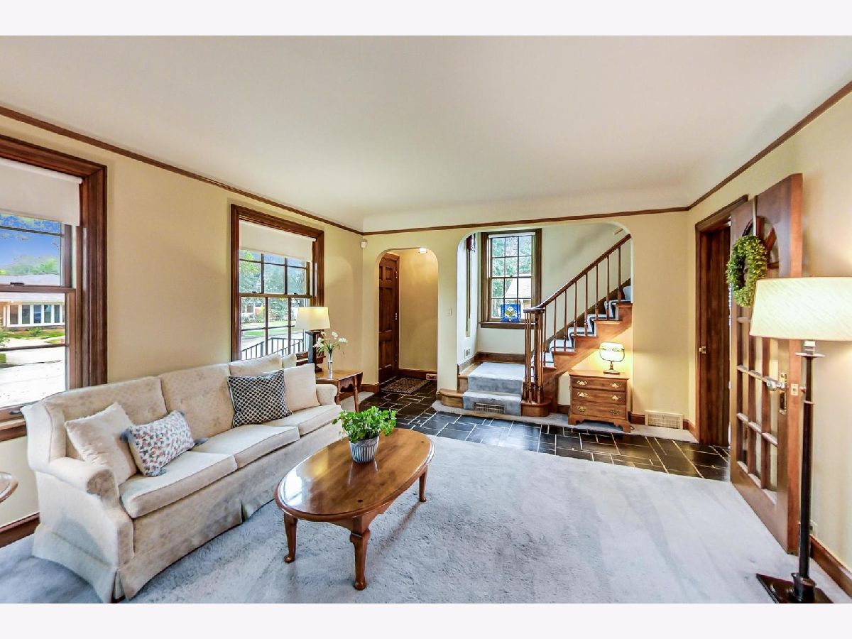 Don't miss this stately 2 story brick walk up in desirable neighborhood. Amazing curb appeal and double lot (with separate PIN). The first floor features a living room with fireplace, large separate dining room with built in shelves and hardwood floors, and a family room with built in shelves and a library ladder which could be used a first floor bedroom. Upstairs, there's 2 spacious bedrooms and full bath. Master bedroom is oversized with 2 cedar closets. Basement is unfinished. New AC. New Roof. Close to Skokie Swift and easy 94 access. DOUBLE LOT which means this house could be a perfect candidate for an addition or a tear down. Kitchen and baths need some updating. Sold As-Is. Large 2.5 car detached garage. Fenced yard. Quiet street.