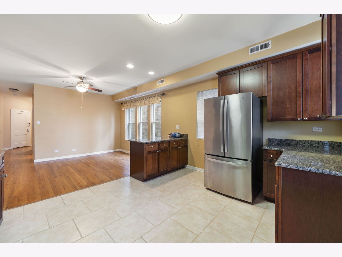 Welcome home to this beautifully maintained condo offering modern convenience and style in the highly sought-after Jefferson Park neighborhood. This unit has everything you need for comfortable living, including newer dishwasher and fridge! Step inside to find an open-concept layout featuring hardwood floors and high ceilings that create a bright and spacious atmosphere. The kitchen is a chef's delight with 42" maple cabinets, granite countertops, stainless steel appliances, and a stylish backsplash. Relax or entertain on the private balcony. Unit has in-unit washer/dryer. Assessments cover water, lawn care, snow removal, and more. Conveniently located close to schools, parks, shopping, dining, and public transportation (CTA, EL, Metra). Also enjoy easy access to I-90, I-94, and O'Hare Airport. Don't miss this opportunity-schedule your showing today and make this condo your new home!