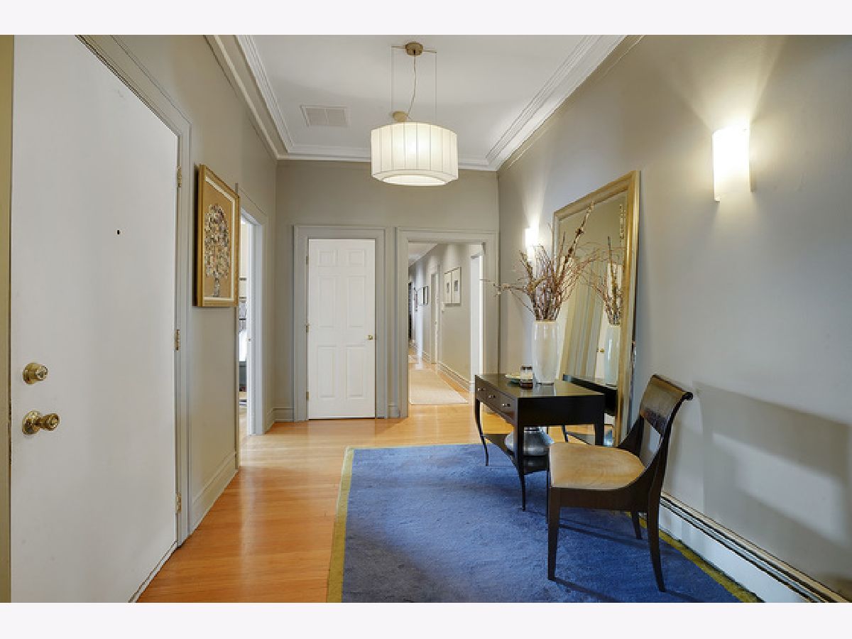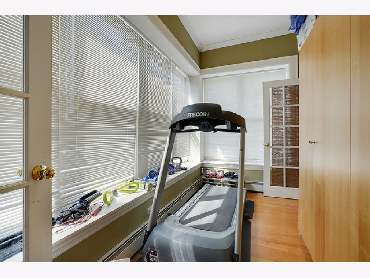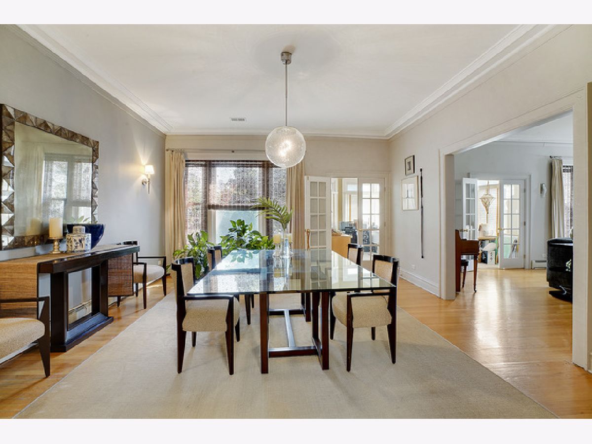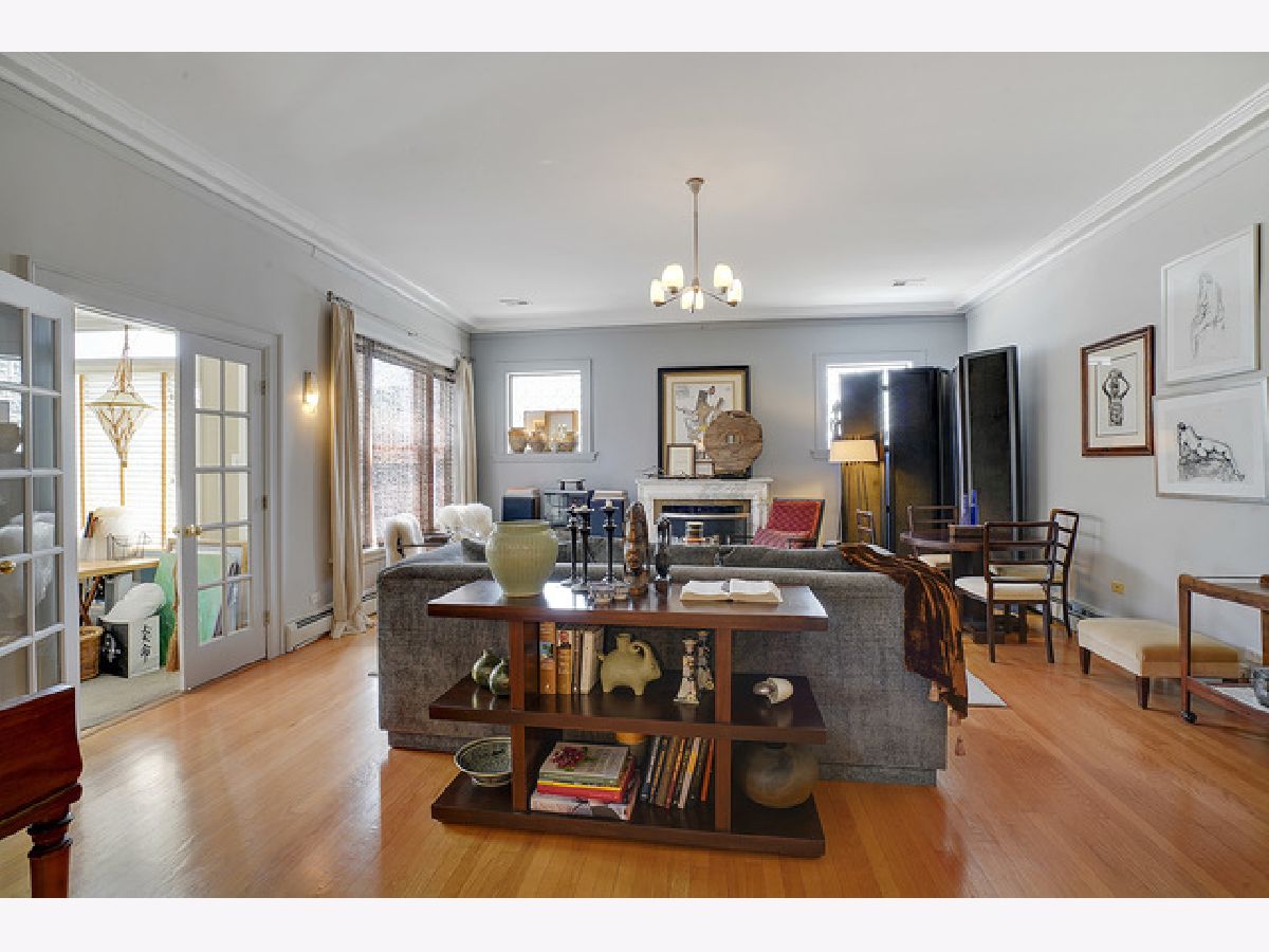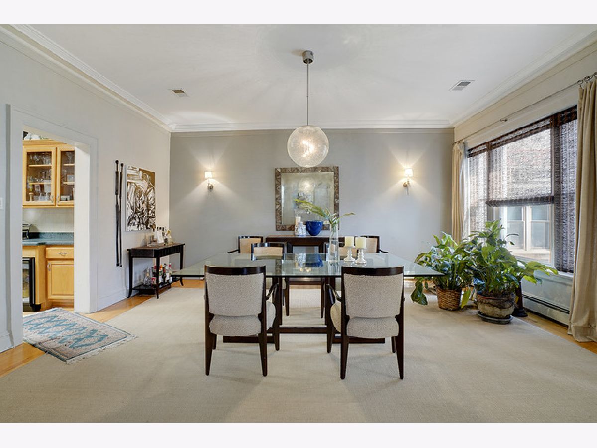 Welcome to this beautiful 4 bedroom, 3 bath top-floor condo in the heart of Hyde Park. A mix of vintage charm with it's 9 foot ceilings, hardwood floors and original crown moldings plus modern amenities makes this unit an elegant home. The living room with the Roman marble surround fireplace is spacious enough for entertaining as it opens to the large, formal dining room. Both rooms have been customized with Conrad handwoven shades at the windows. The sunroom is adjacent and currently being used as an office with French doors opening into the living and dining rooms. The eat-in, gourmet kitchen comes equipped with all high-end stainless-steel appliances including a Sub-Zero refrigerator, Gaggenau cooktop, KitchenAid double-ovens and dishwasher PLUS a mini-fridge, wine cooler, walk-in pantry, skylights and banquette seating. Two of the bedrooms have ensuites with a Whirlpool tub and walk-in shower in the master bath. In addition, the master bedroom includes a shoe closet and a bonus room--a sunny alcove-- with two maple armoires for additional storage and large enough to use as a workout or sitting area. All three bathrooms were renovated in 2018 with marble and Kohler fixtures. Custom light fixtures are located throughout the unit as well as the new Miele stackable washer and dryer. For outdoor living, there is a beautiful common area backyard that is fully fenced with access to the one car garage space and private storage unit which is included in the price. A truly elegant home within walking distance to the 53rd St shopping and dining corridor, the Metra station, plus the University of Chicago campus, hospitals and lake front.