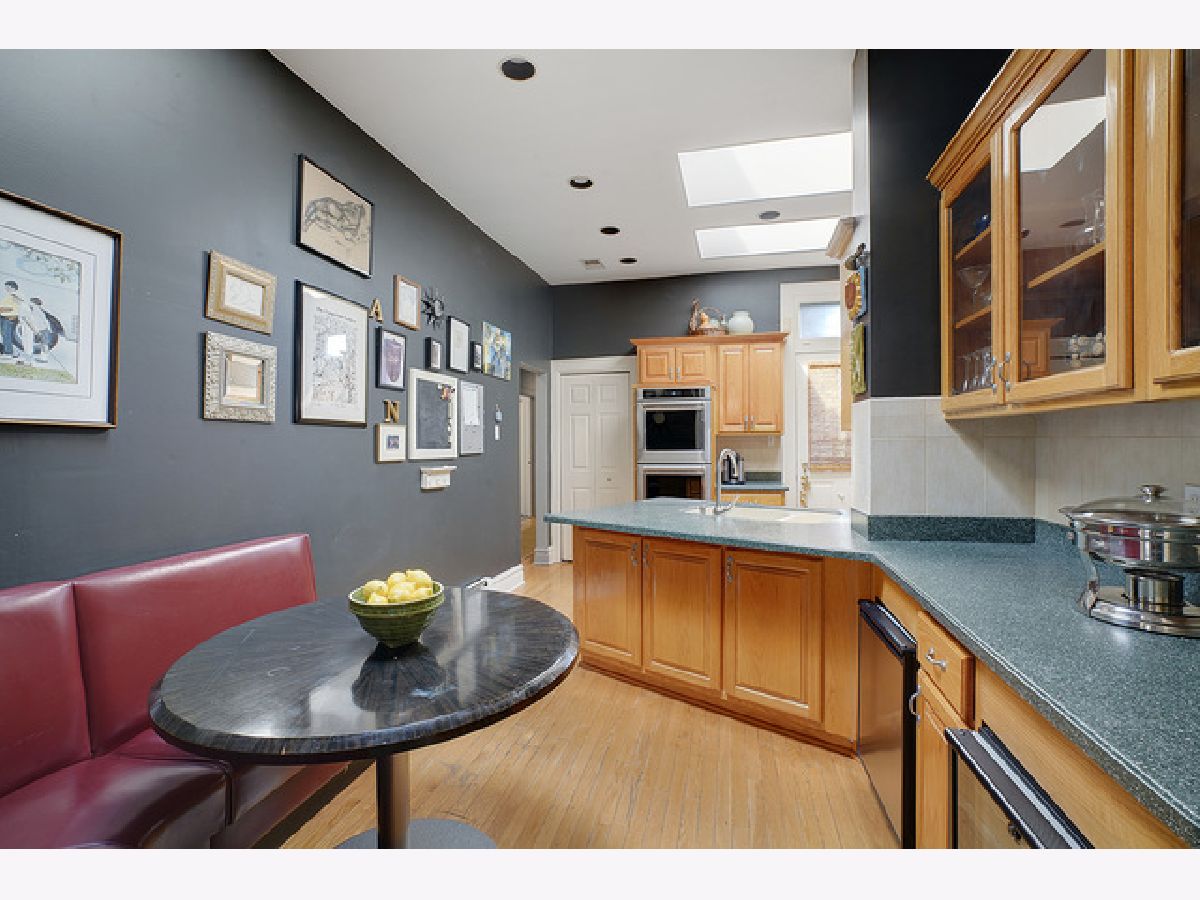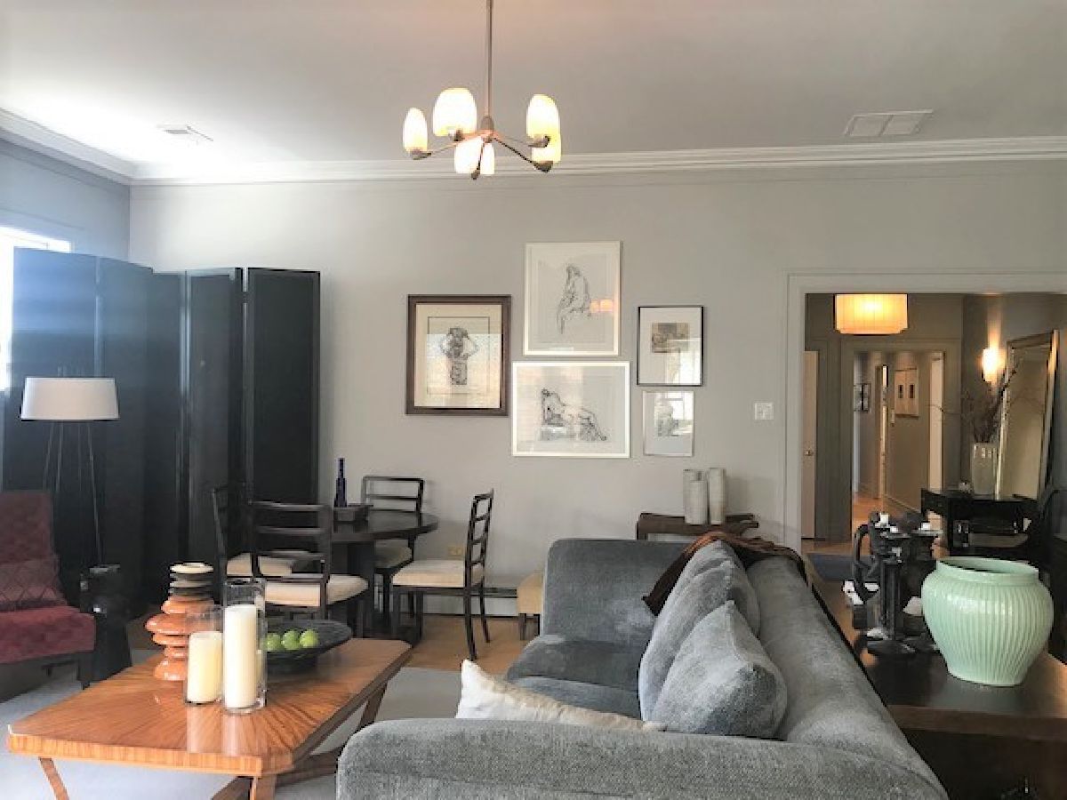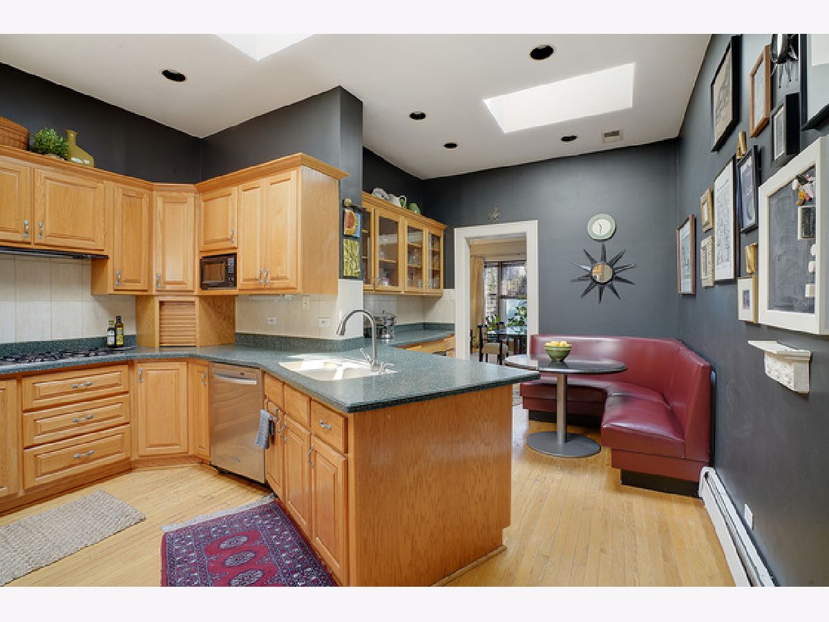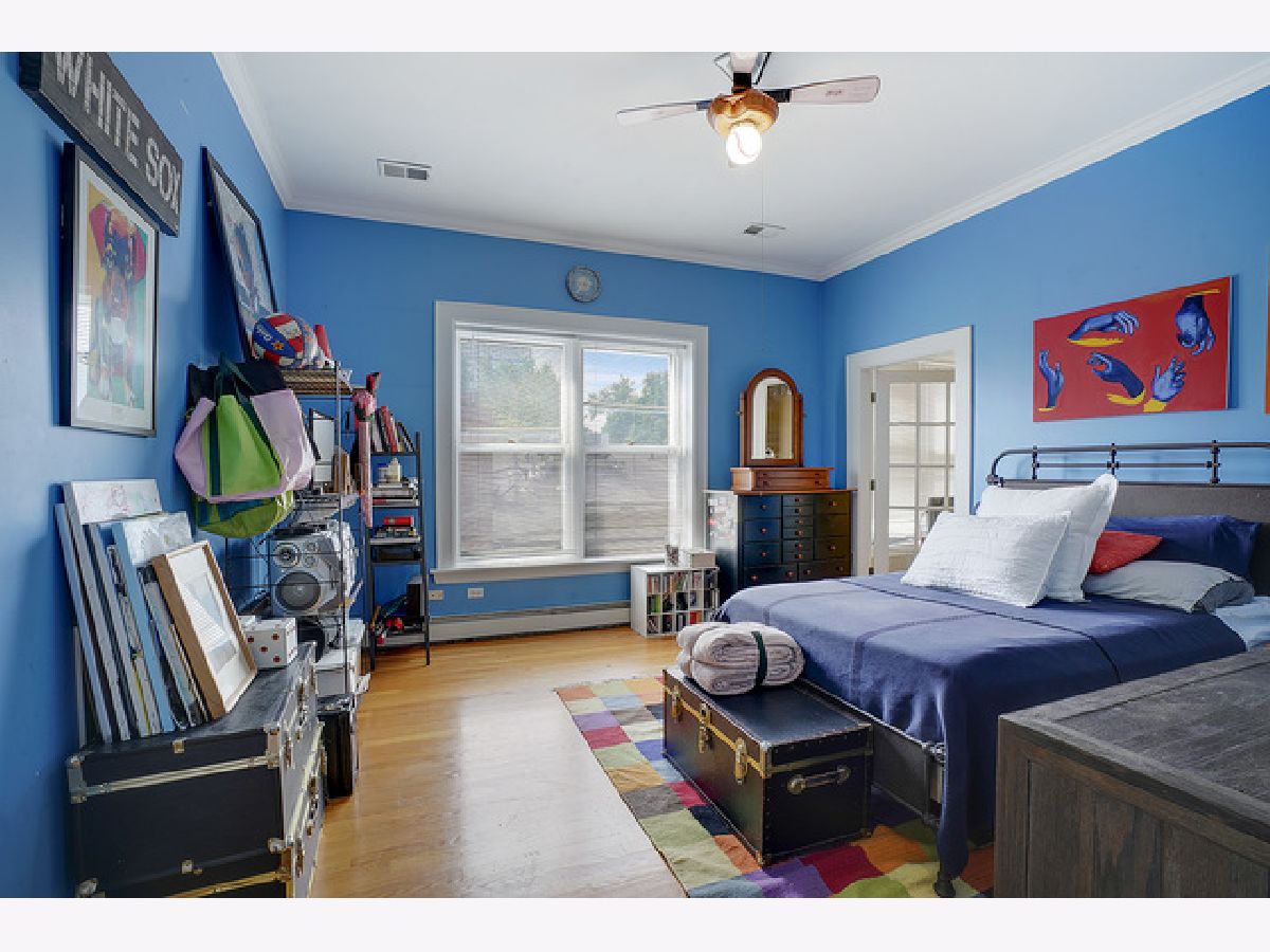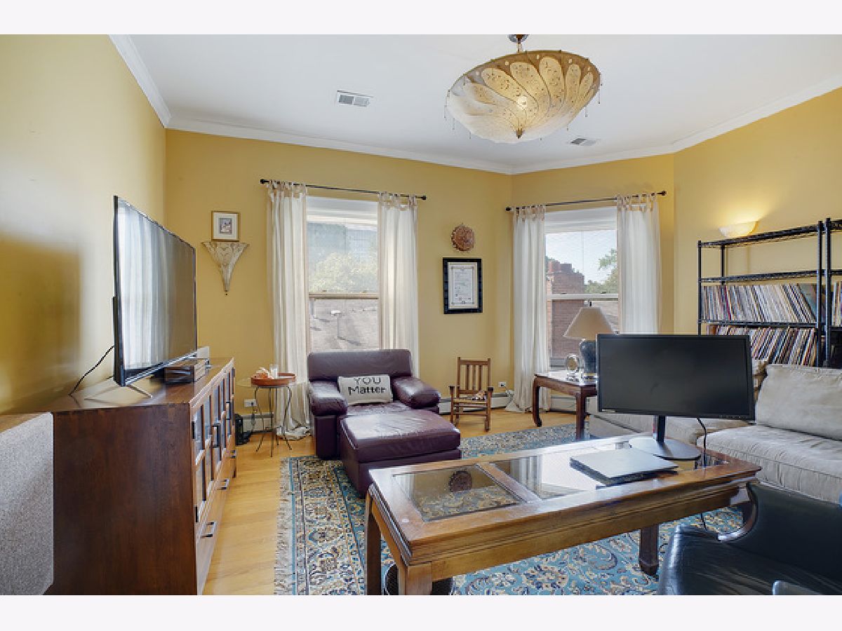 Welcome to this beautiful 4 bedroom, 3 bath top-floor condo in the heart of Hyde Park. A mix of vintage charm with it's 9 foot ceilings, hardwood floors and original crown moldings plus modern amenities makes this unit an elegant home. The living room with the Roman marble surround fireplace is spacious enough for entertaining as it opens to the large, formal dining room. Both rooms have been customized with Conrad handwoven shades at the windows. The sunroom is adjacent and currently being used as an office with French doors opening into the living and dining rooms. The eat-in, gourmet kitchen comes equipped with all high-end stainless-steel appliances including a Sub-Zero refrigerator, Gaggenau cooktop, KitchenAid double-ovens and dishwasher PLUS a mini-fridge, wine cooler, walk-in pantry, skylights and banquette seating. Two of the bedrooms have ensuites with a Whirlpool tub and walk-in shower in the master bath. In addition, the master bedroom includes a shoe closet and a bonus room--a sunny alcove-- with two maple armoires for additional storage and large enough to use as a workout or sitting area. All three bathrooms were renovated in 2018 with marble and Kohler fixtures. Custom light fixtures are located throughout the unit as well as the new Miele stackable washer and dryer. For outdoor living, there is a beautiful common area backyard that is fully fenced with access to the one car garage space and private storage unit which is included in the price. A truly elegant home within walking distance to the 53rd St shopping and dining corridor, the Metra station, plus the University of Chicago campus, hospitals and lake front.