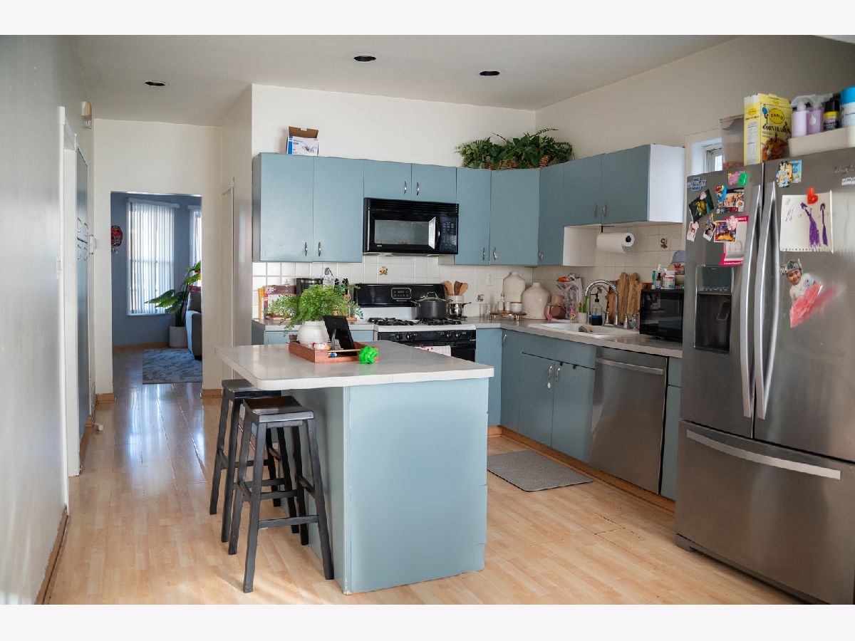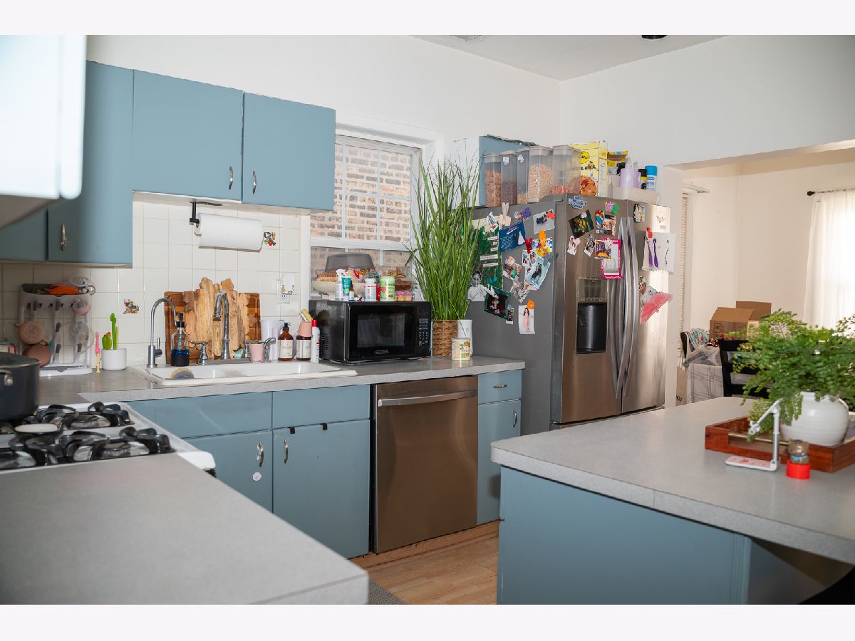 Sought out Portage Park are 2 flat with a duplex unit. The lower level offers a living room, kitchen, 2 bedrooms, and one full bath. The upper level is a duplex and offers 2 total bedrooms, 1 full bath, a large kitchen, and a spacious eating area on the main level, and upstairs there's another very large bedroom, tons of storage, and another full bath. Large backyard with patio. 3 car garage. HOME IS BEING SOLD AS IS.