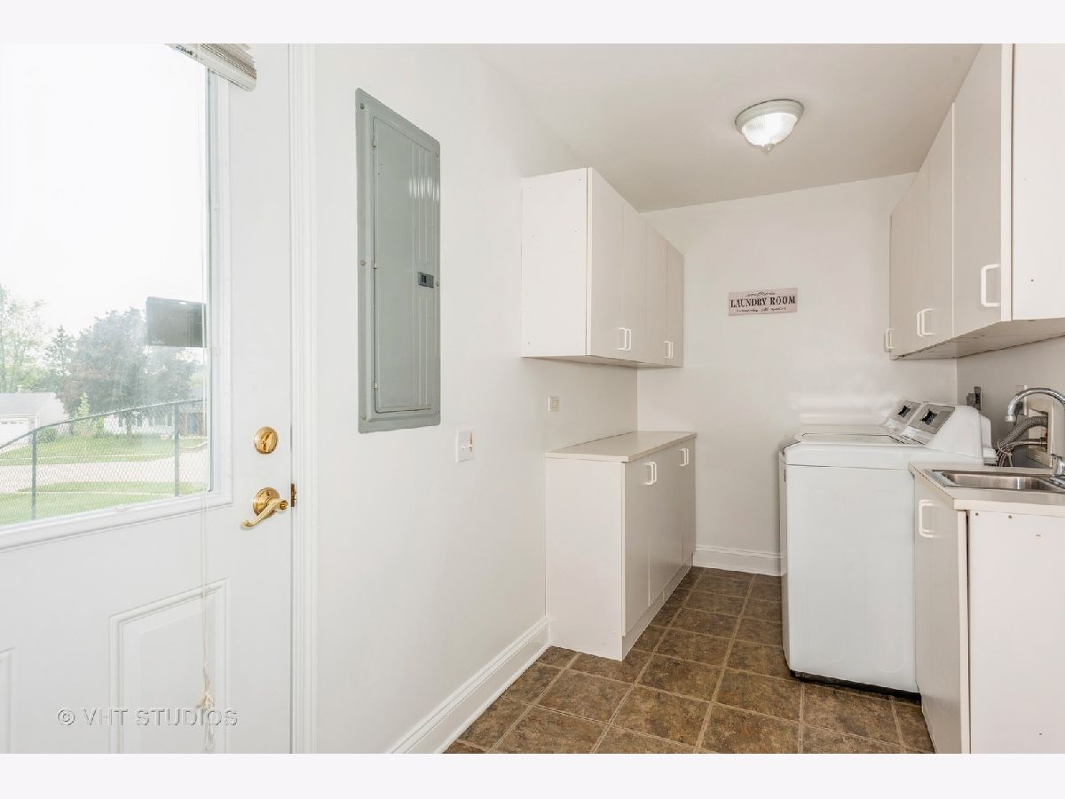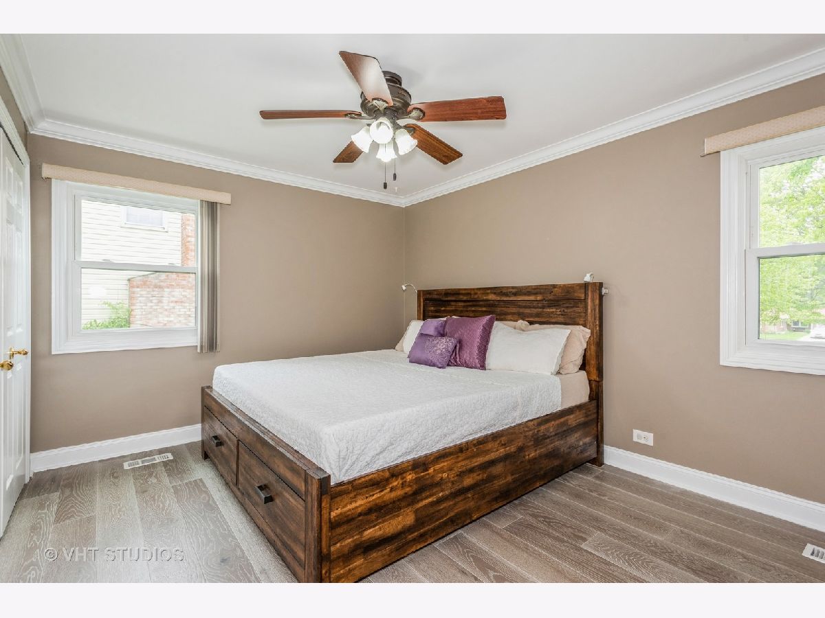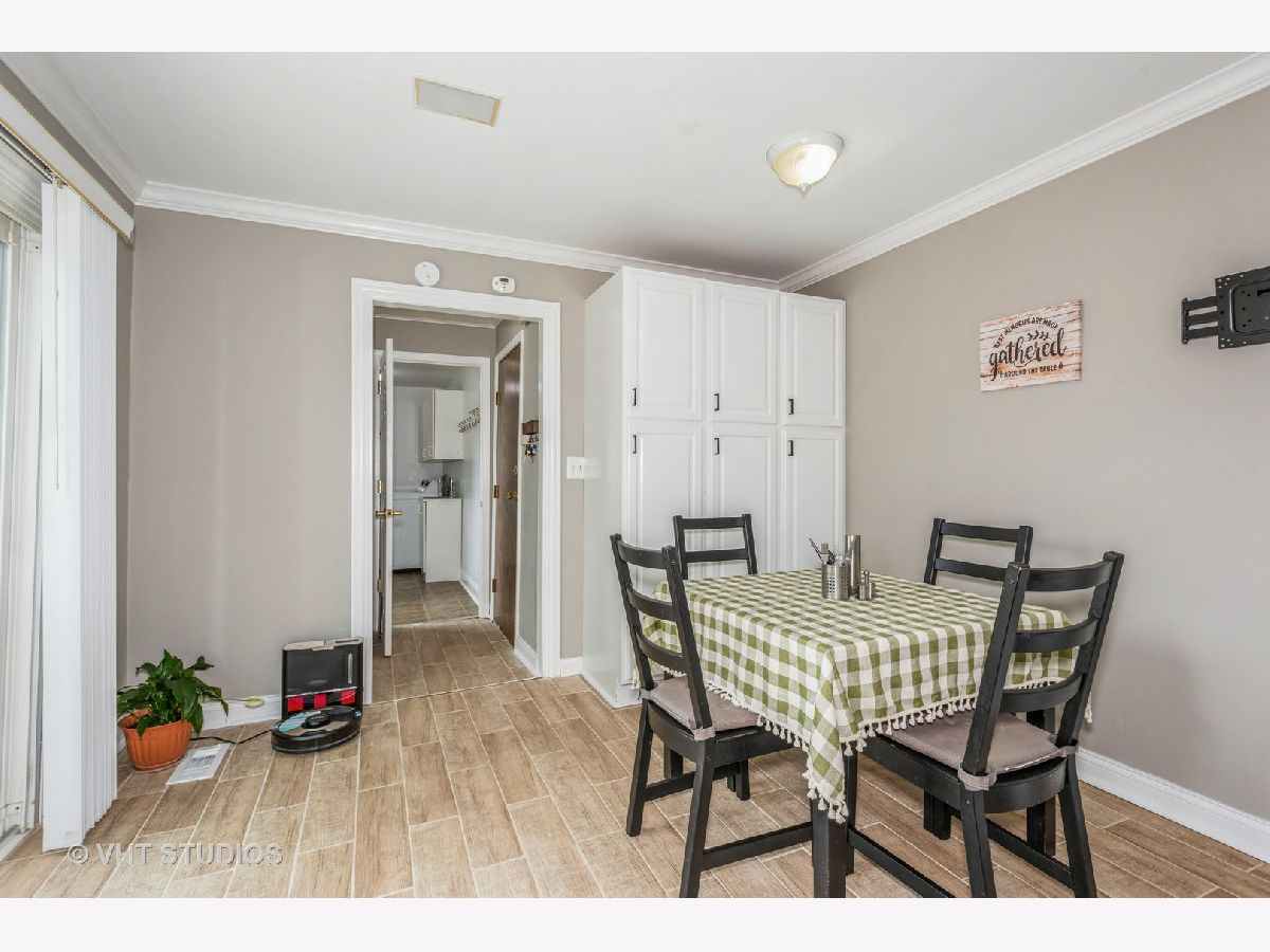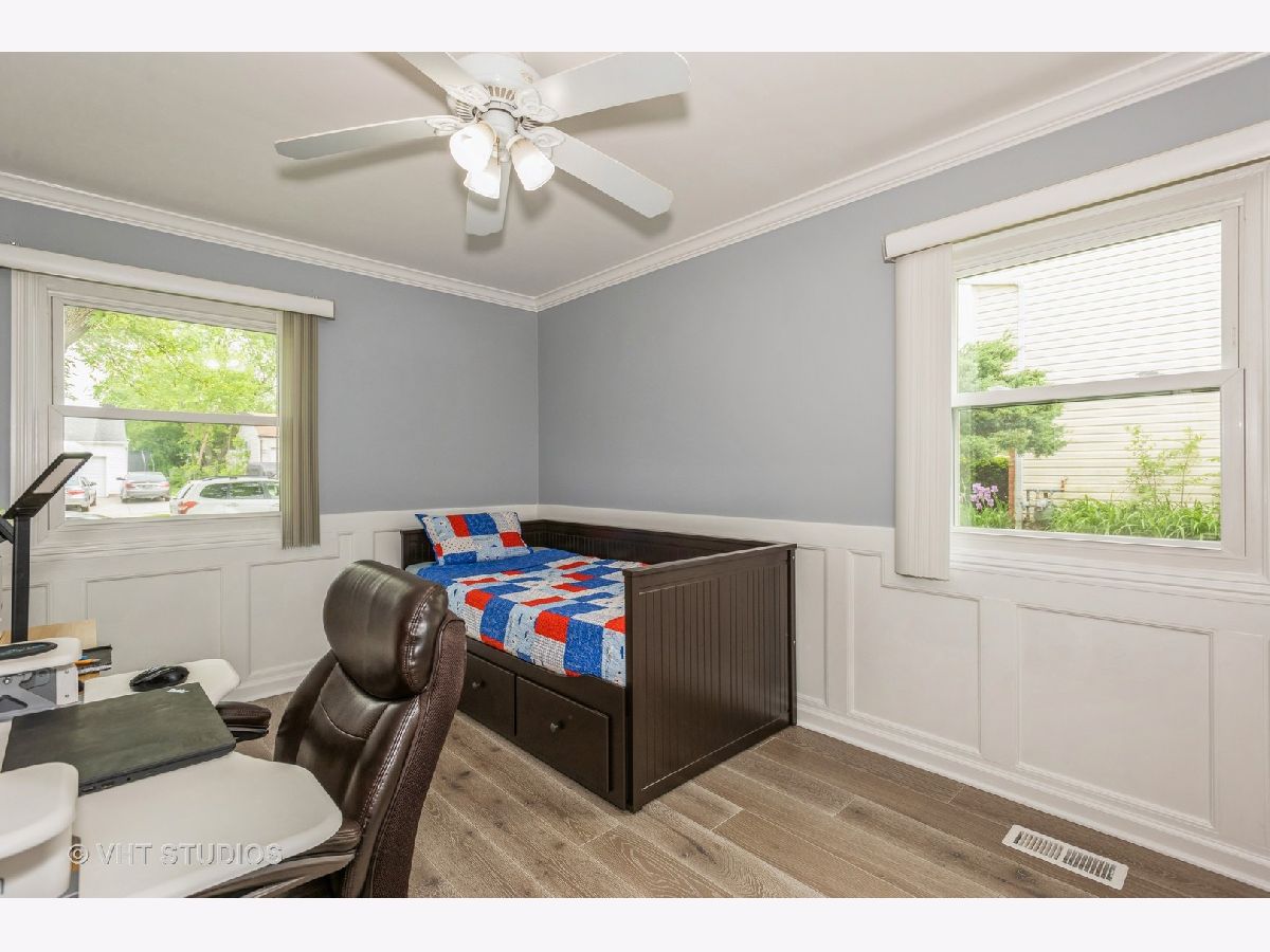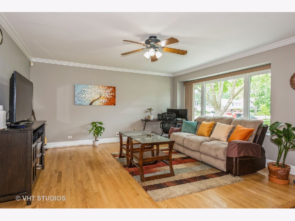 Welcome to this charming 3 bedroom, 2 bathroom ranch home. Step inside to discover hard surface flooring throughout the home (hardwood, ceramic tile or engineered hardwood), creating a seamless and easy-to-maintain living space. The living room is bathed in natural light from the large bow window, perfect for enjoying sunny mornings or cozy evenings with loved ones. The remodeled kitchen is a chef's dream with stunning quartz countertops, white cabinets, custom backsplash, garden window, and wood plank look ceramic tile floors. All appliances were upgraded in 2020 or 2021, ensuring top-of-the-line functionality and style. You'll find this home freshly painted and boasting white crown molding, upgraded 6" base trim, and white six panel doors throughout the home, adding a touch of sophistication to each room. The windows and sliding doors were replaced in 2014. There is a large utility room that houses the washer and dryer with lots of space for storage. The fenced backyard features a five-foot black vinyl coated chain link fence, providing privacy and security for outdoor gatherings. Additionally, a 10x16 shed with electric offers extra storage space or workshop. View spectacular sunsets from your back patio! This home is not only beautiful but also practical, with a new HVAC system in 2024, full wall and ceiling insulation in 2020, and a tear-off roof in 2013. New engineered hardwood installed in all three bedrooms in 2023. Located in the highly desired Hoover Math and Science school district, close to parks, park district activities, dining and shopping, this home is perfect if you are looking to settle down in a welcoming community. Don't miss out on this fantastic opportunity to make this house your new home!