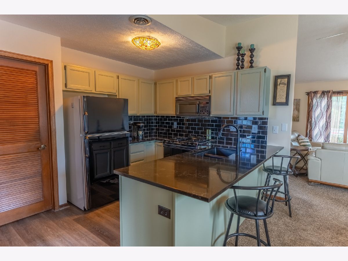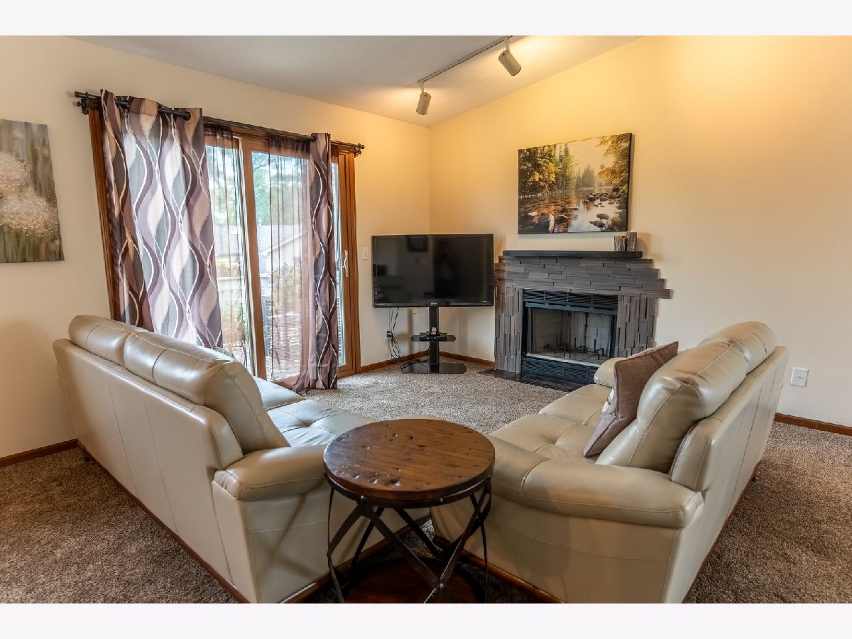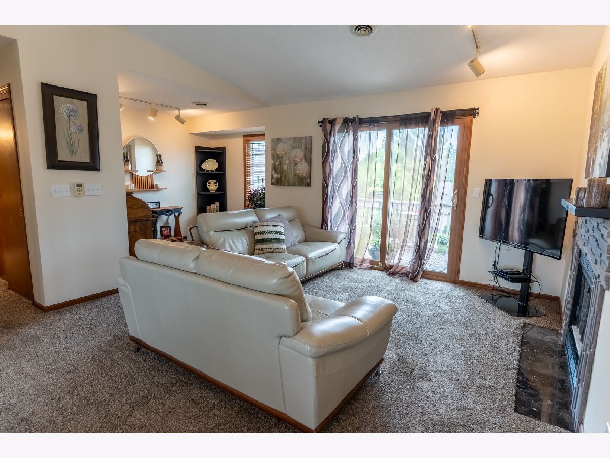 Welcome to this beautifully maintained condo offering over 1,300 square feet of comfortable living space with stylish updates throughout. Step into the inviting foyer with updated flooring that welcomes you into the home living area with vaulted ceilings that create a bright and open atmosphere. The open floor plan flows seamlessly from the foyer into the spacious dining room and updated kitchen, which features granite countertops, a tiled backsplash, breakfast bar, and new flooring-perfect for both everyday living and entertaining. Just off the kitchen, the spacious living room offers a warm fireplace with tile surround and a sliding glass door that opens to a private deck overlooking peaceful open space. An additional flex space off the living room is ideal for entertaining, a reading nook, or a home office. The light-filled primary bedroom includes a unique eyebrow window, a full en-suite bath with tile flooring, and a generous walk-in closet. A second large bedroom and another full bathroom provide plenty of space for guests or family. The separate laundry room adds convenience and functionality. The home also includes a full basement for additional storage or future finished space, and an attached one-car garage for added ease and security. Move-in ready and located in a desirable area, this condo is the perfect place to call home-schedule your showing today!