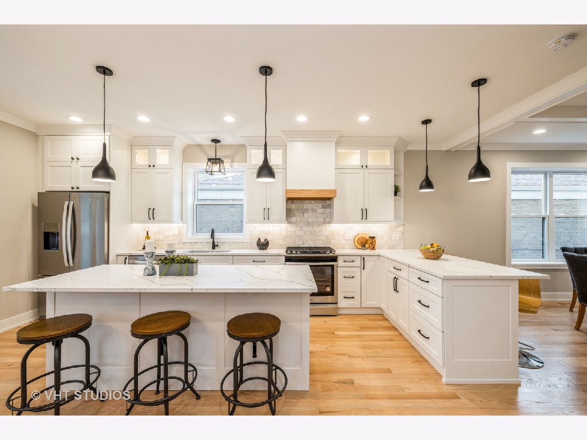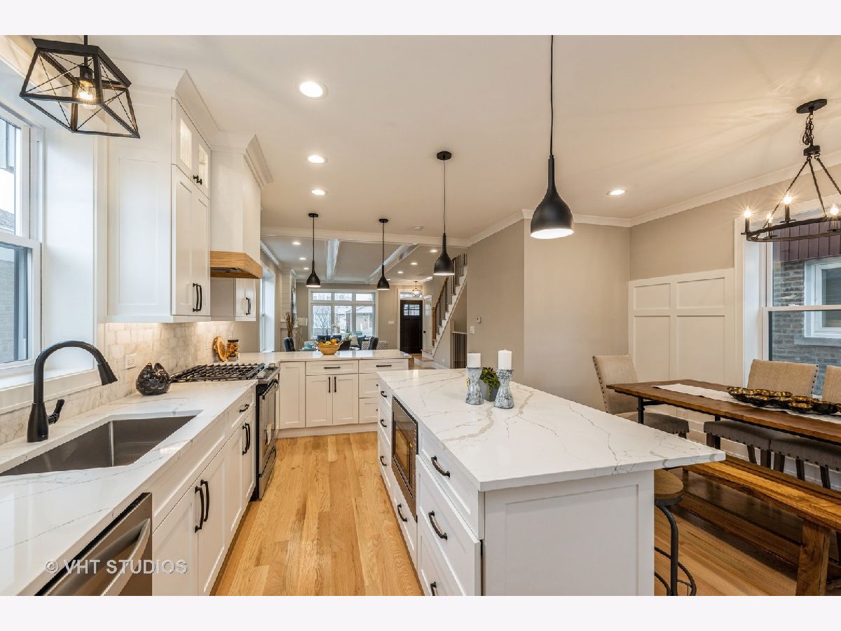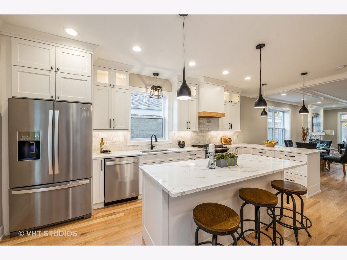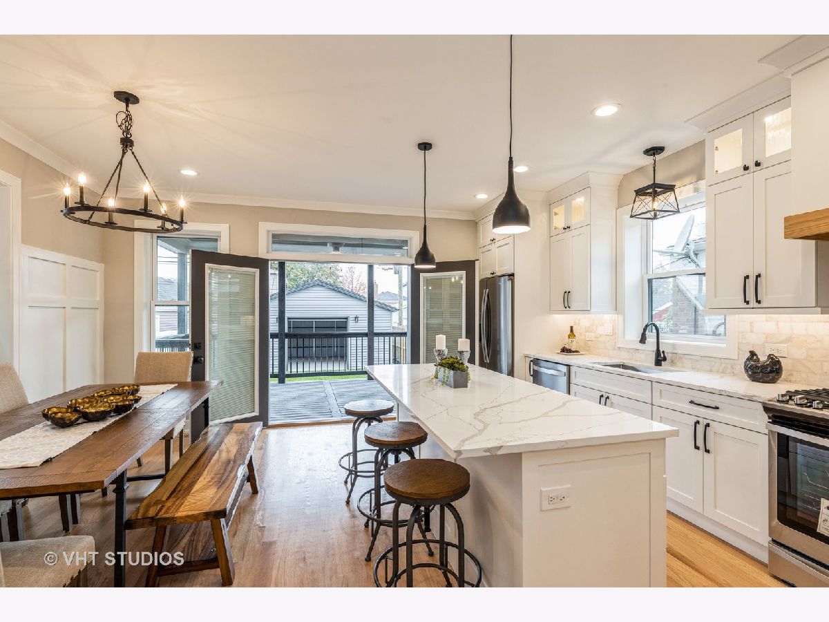 Gorgeous, 2 story home, rebuilt and completely redesigned to perfection with upscale finishes throughout. Offering 5 bedrooms, 3.5 baths in Prime Garfield Ridge. The moment you enter, you'll be impressed by the fabulous open concept layout, thoughtfully designed for entertaining & family living. The main floor features a spacious living room with a cozy fireplace, beautiful detailed ceilings, flowing graciously into the dining area, opens to a spectacular dream kitchen, featuring a large island, breakfast bar, and spacious table area, plenty of white shaker cabinetry, quartz countertops, stylish backsplash, high end s/s appliances with range hood. French doors leading out to huge cover deck. Recessed lighting & hardwood flooring throughout. 2nd level offers a luxury master suite with private bath featuring, separate soaking tub, seperate shower, double vanity, walk-in closet with built-ins. 2nd bedroom features vaulted ceilings, a walk-in closet with built-ins and 2 additional spacious bedrooms and another custom full bath & a laundry room for added convenience. Enjoy more living & entertaining space in the finished basement offering a wet bar, beverage fridge, 5th bedroom, 3rd full bath & a separate utility room. Fenced yard, professionally landscaped, brand new 2 car garage with party door. Exterior is hardie board, brick & stone. New HWT, (2) A/C units (2)Furnaces, Sump Pump, Ejector pump, Drain tile system, new sidewalks, new paved street, walking distance to schools, parks, transportation, shopping, easy access to I 55, minutes to Midway airport. Don't miss this opportunity to own this beautiful home.