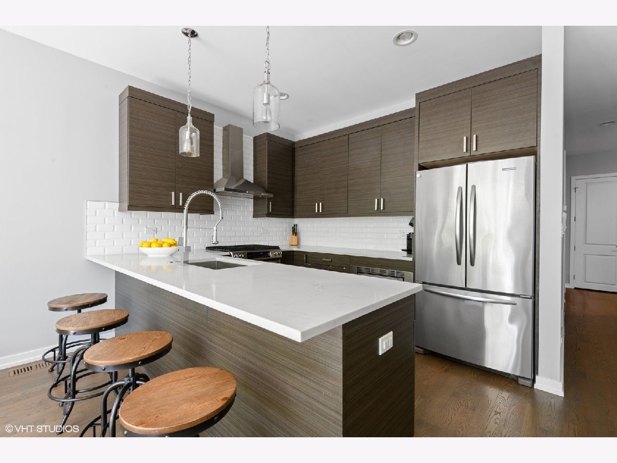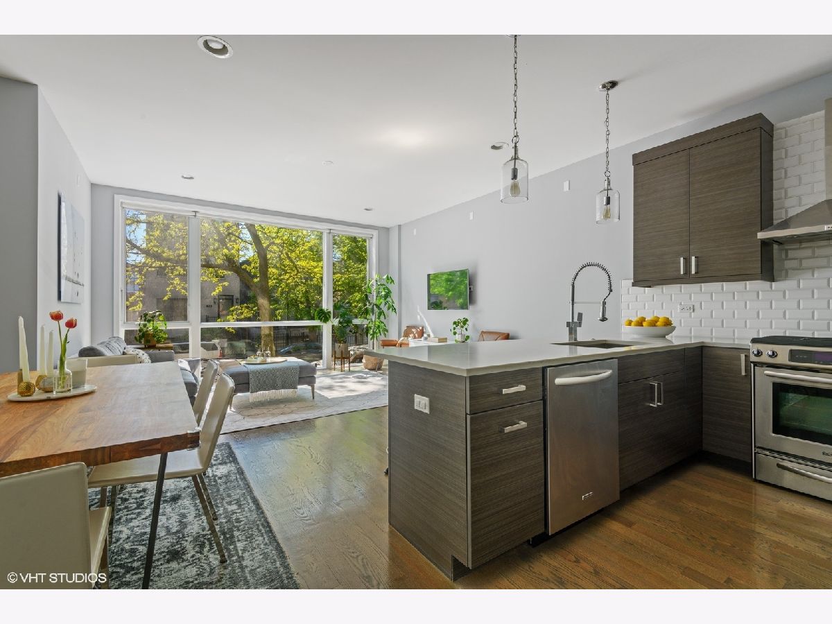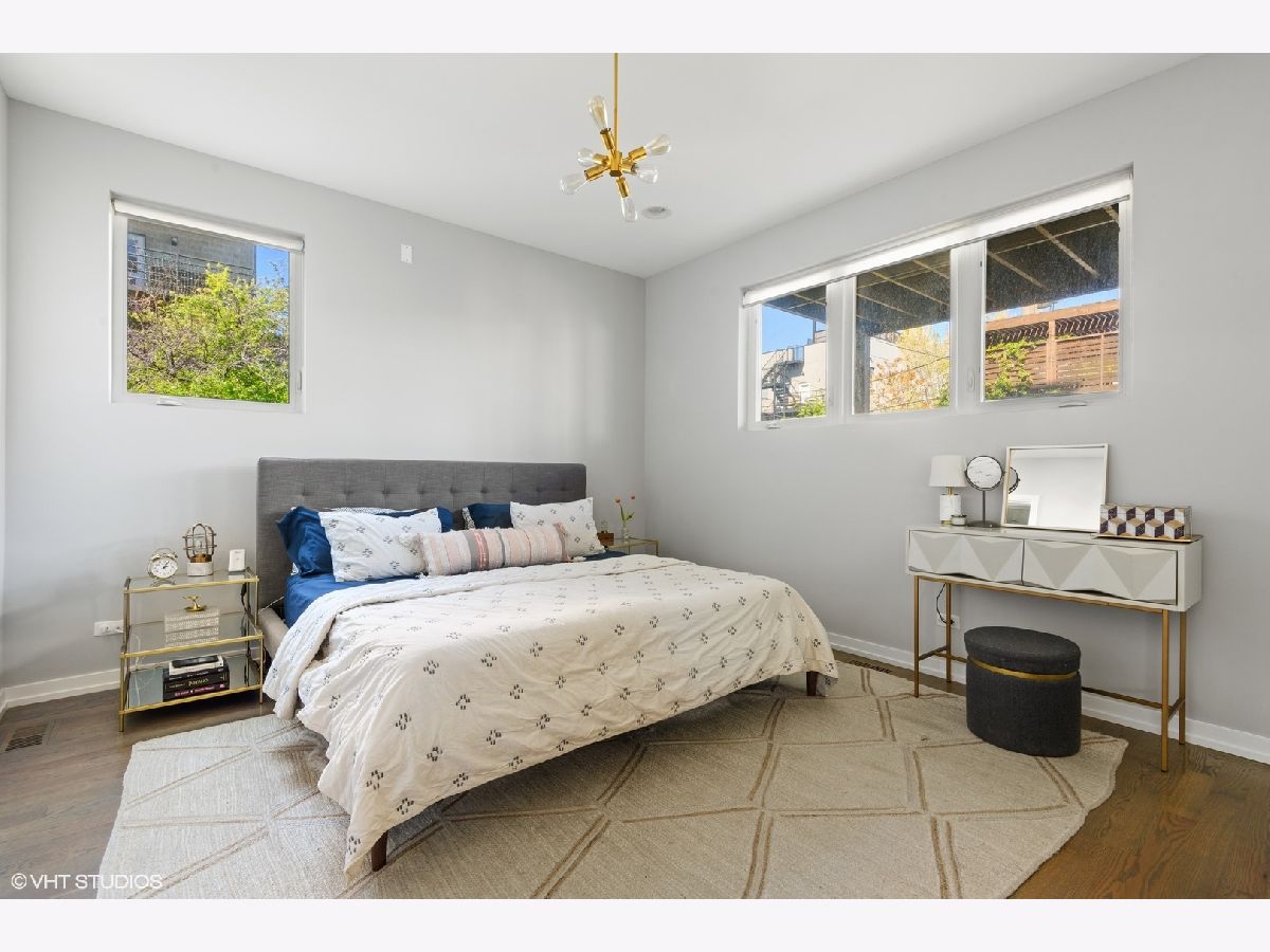 Better than new 4 bedroom, 3 bath duplex down in West Town/ Ukrainian Village with a HUGE garage roof deck, oversized back deck, turfed yard & mulched front yard. one Block to 1+Mitchell Elementary school. Approximately .3 miles to the Western Metra stop and minutes to the Grand bus! Walk to Smith Park, Marianos, all the galleries and shops on Grand and Chicago! Easy access to the West Loop and Downtown. On-trend finish selections: Subway backsplash, quartz countertops, wall-mounted vanities, heated floor in the primary bathroom, oversized East and West facing windows including huge Western facing lower and upper level windows. Tall ceilings on both levels. Full sized laundry room and storage! Some of the local hangouts include: Beatniks, Yuzu Sushi, Forbidden Root, and Kasama!