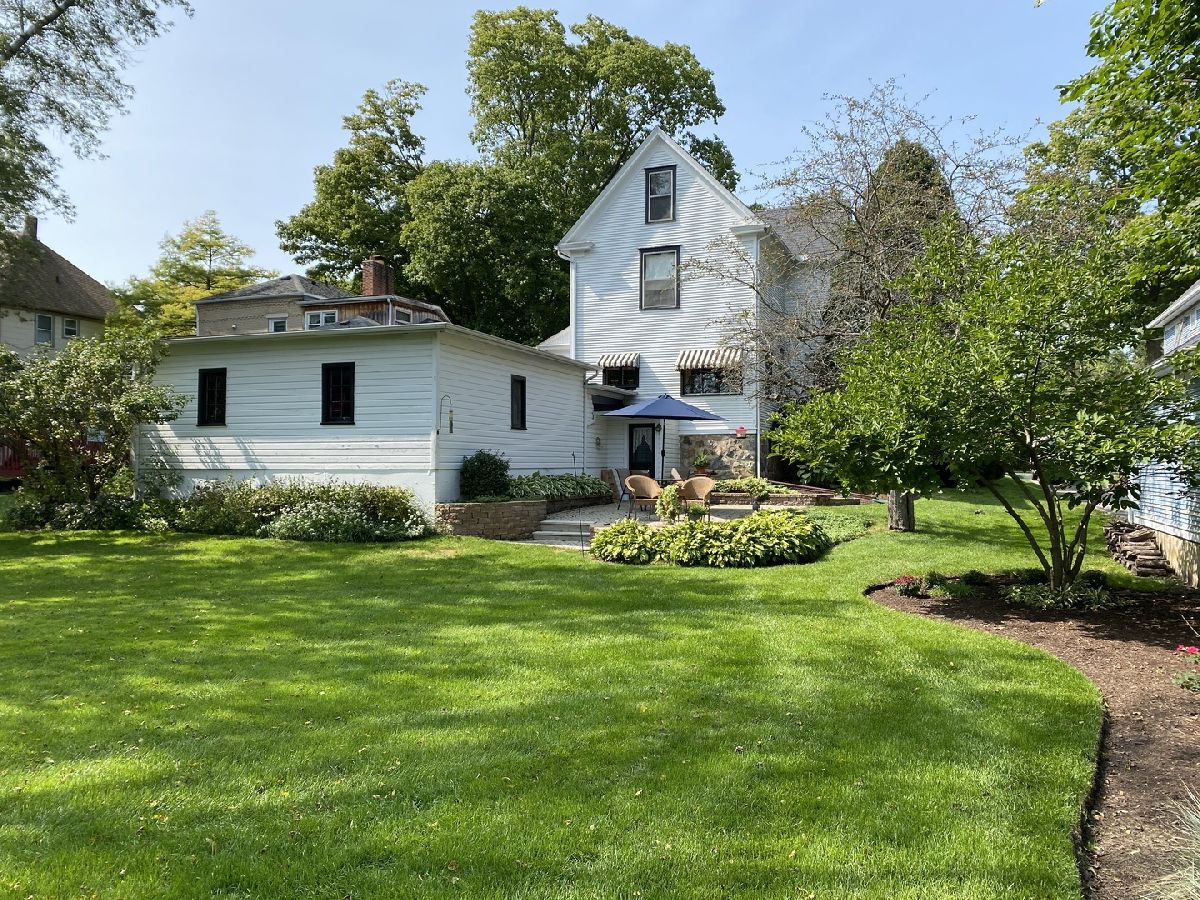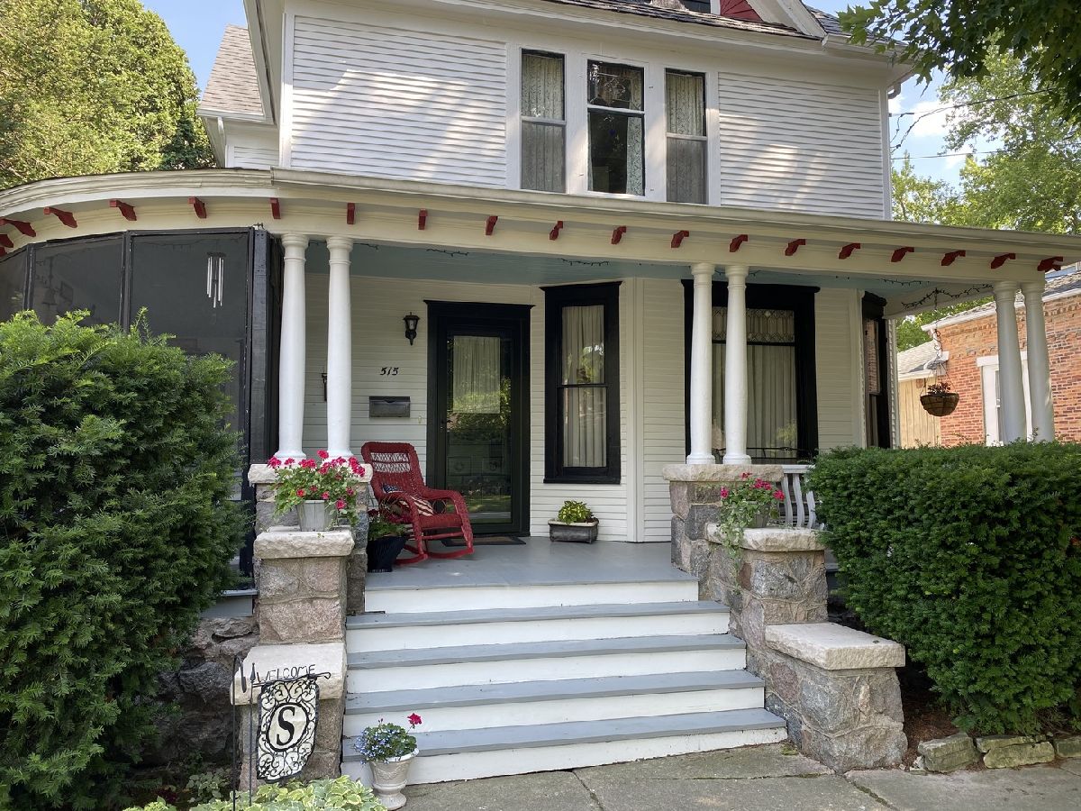 Simply charming 1900's home with welcoming covered front porch that opens onto a wrap around screen porch. Step inside and appreciate the warmth. The front parlor has French doors for privacy and could make a nice office if you're working from home. At the center of the home is the formal dining room, perfect for the upcoming holidays. The adjoining family room has a built-in entertainment center. The eat-in area in the kitchen has a picture window overlooking the gardens. There is a powder room on the main floor. Upstairs are 4 bedrooms and updated full bath. There is a walk-up 3rd floor attic that provides plenty of storage or could be finished to add more living space. The home features the old with original beveled glass windows and the new with central air. There is a full basement and a rarity for a home of this age is the attached and oversized 2 car garage. Step out back and relax on the brick patio overlooking the big backyard. This vintage home is only a couple blocks from schools, the Square and train station.
