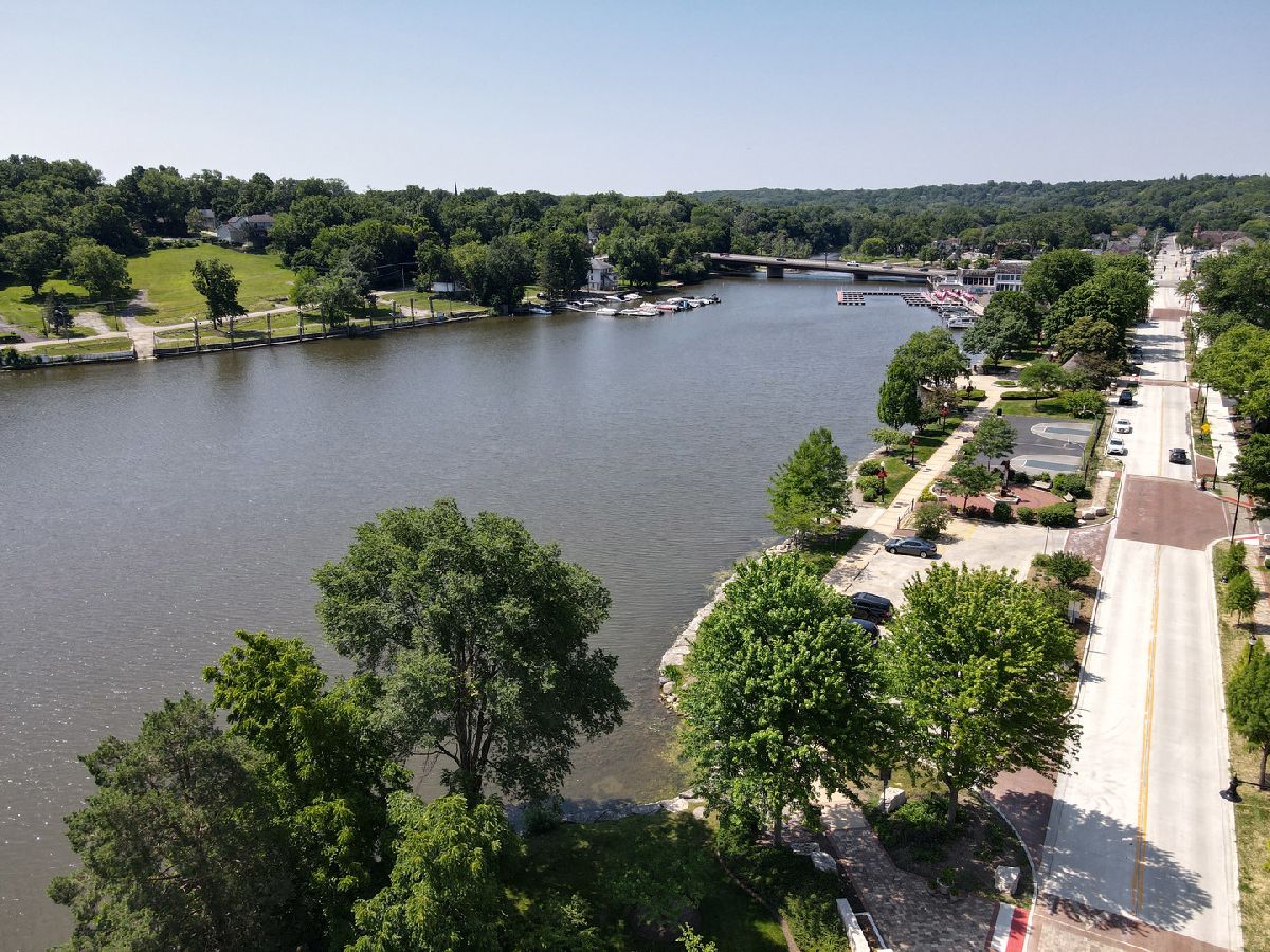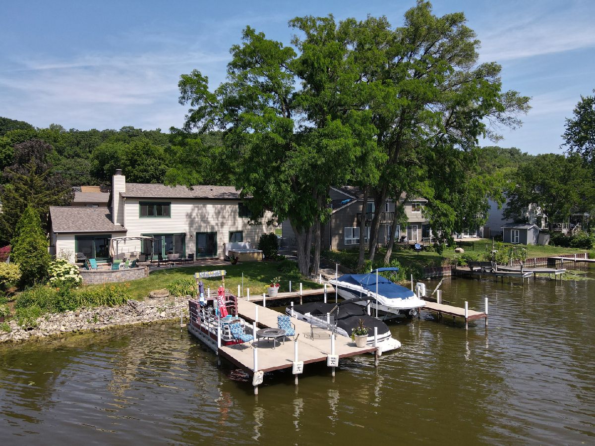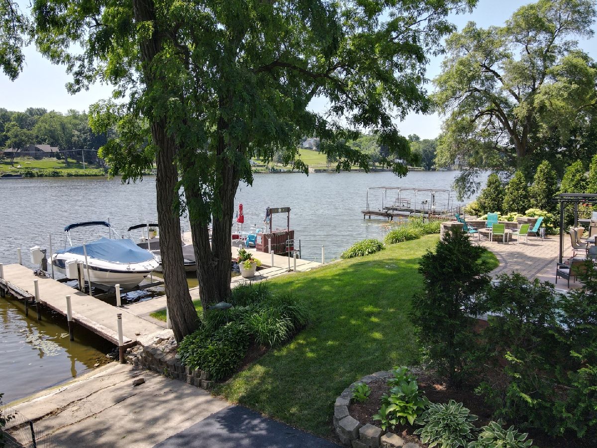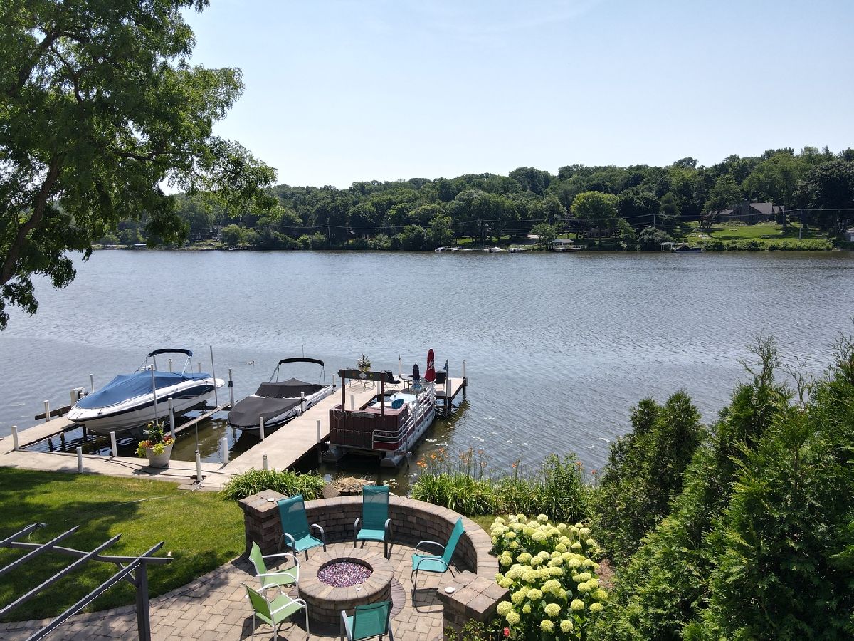 515 Harrison is the upper echelon of Riverfront properties located in Algonquin's recently refined and robust downtown area with brick accented walkways, and pergolas stretching from one side of the street to another while introducing remarkable restaurants, entertainment, and waterfront parks. Modern architectural roof lines and beautiful landscaping lead the way to a charming 2-story entry with clear views of the river out the back of the home and an incredible open concept. Adjacent to the foyer is a universal office/5th bedroom with gorgeous windows and a clear visual of the downtown ambiance. On the opposing side of the foyer is a spacious living room brilliantly used as a billiard and bar area. The living room unfolds into a phenomenal eat-in kitchen with timeless cherry cabinets, granite, black stainless-steel appliances, and a breakfast bar overlooking spacious dining and adjoined sitting room with an entire wall of glass overlooking the piers and water! Overshadowing the sitting and dining room is an expansive family room with wide planked floors, a stunning fireplace, and access to a powder room. The 2nd floor is equally as impressive with 4 generous bedrooms and 2 recently refined full bathrooms consisting of a master suite with views of the water and direct access to a full yet private master bathroom with gorgeous tile work in the shower and single vanity. The remaining 3 bedrooms share a full hall bathroom with a single vanity and shower/tub combination. 2.5-car attached epoxy floor garage! Stunning yard for entertaining with brick paver patio, built-in gas fire pit with room for Adirondack chairs, hot tub overlooking the water, 2 private cement piers, 1 boat lift, 4 individual slips for toys and guests, and your own private boat launch on the property just beyond the fenced yard.
