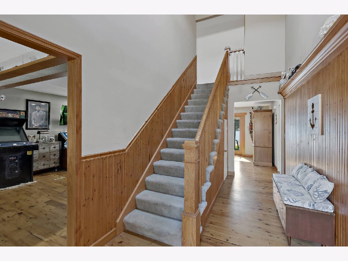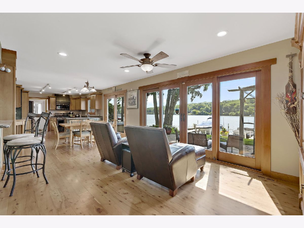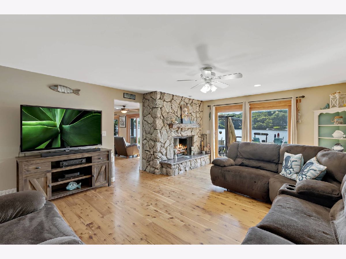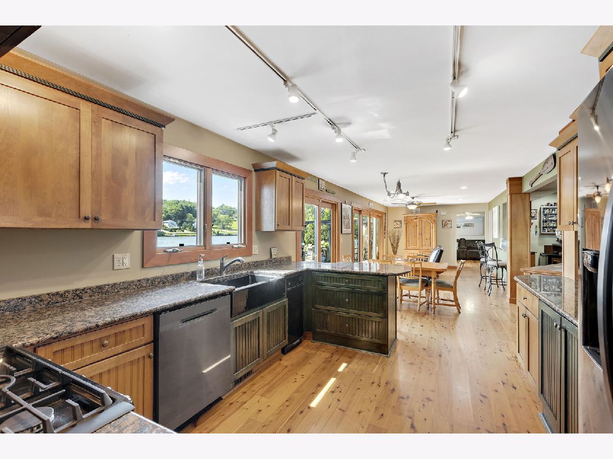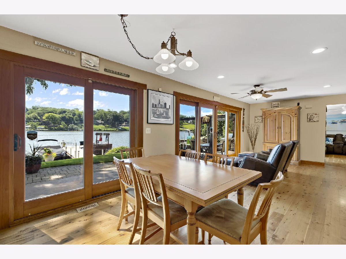 515 Harrison is the upper echelon of Riverfront properties located in Algonquin's recently refined and robust downtown area with brick accented walkways, and pergolas stretching from one side of the street to another while introducing remarkable restaurants, entertainment, and waterfront parks. Modern architectural roof lines and beautiful landscaping lead the way to a charming 2-story entry with clear views of the river out the back of the home and an incredible open concept. Adjacent to the foyer is a universal office/5th bedroom with gorgeous windows and a clear visual of the downtown ambiance. On the opposing side of the foyer is a spacious living room brilliantly used as a billiard and bar area. The living room unfolds into a phenomenal eat-in kitchen with timeless cherry cabinets, granite, black stainless-steel appliances, and a breakfast bar overlooking spacious dining and adjoined sitting room with an entire wall of glass overlooking the piers and water! Overshadowing the sitting and dining room is an expansive family room with wide planked floors, a stunning fireplace, and access to a powder room. The 2nd floor is equally as impressive with 4 generous bedrooms and 2 recently refined full bathrooms consisting of a master suite with views of the water and direct access to a full yet private master bathroom with gorgeous tile work in the shower and single vanity. The remaining 3 bedrooms share a full hall bathroom with a single vanity and shower/tub combination. 2.5-car attached epoxy floor garage! Stunning yard for entertaining with brick paver patio, built-in gas fire pit with room for Adirondack chairs, hot tub overlooking the water, 2 private cement piers, 1 boat lift, 4 individual slips for toys and guests, and your own private boat launch on the property just beyond the fenced yard.