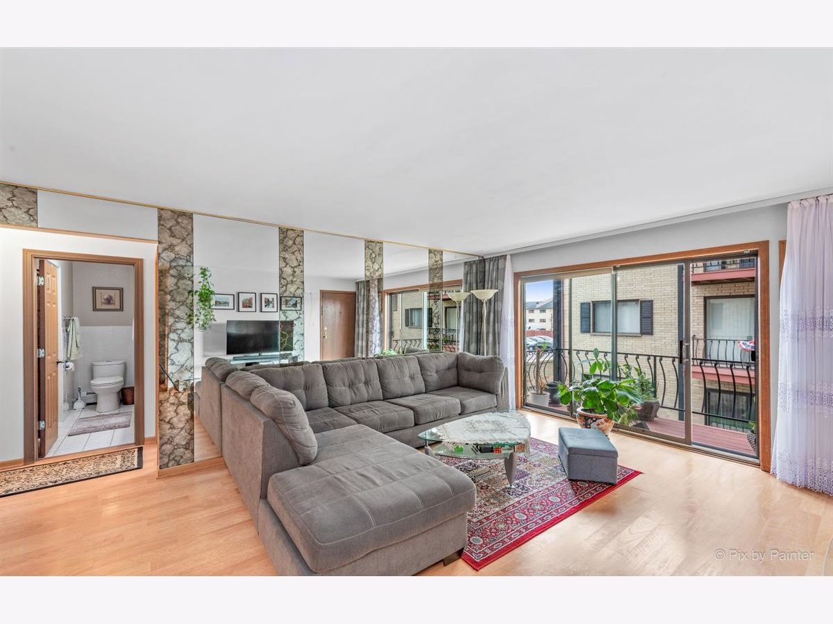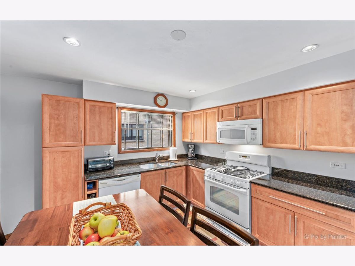 Beautiful, huge and well maintained 2nd floor condo with balcony! Two large bedrooms with 1.5 baths and wood laminate throughout the unit. Master bedroom features two large closets and private 1/2 bath. Large kitchen with granite counter tops and plenty of space for table. Tons of closet space, additional storage in the basement, washer and dryer in the unit and assigned parking space. Low assessment includes heat, water and gas. Excellent location near blue line, expressway, shops, parks and forest preserve!