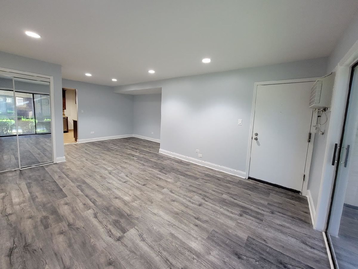 Welcome to this beautifully maintained first-floor condo, offering the convenience of no stairs and a host of modern updates. This 2-bedroom, 1.1-bath unit features a spacious kitchen with a dining area, complete with a brand new stainless steel stove and refrigerator. The open floor plan combines the living and dining rooms, creating a comfortable and versatile space. The master bedroom includes a half bath and dual closets, with a walk-in closet that's currently used as a home office. You'll appreciate the in-unit washer and dryer, as well as two new high-efficiency window A/C units. Additional storage is available in the basement, and the private balcony offers a lovely view of the well-maintained courtyard. Enjoy low monthly assessments that cover parking (1 reserved space), heat, gas, water, snow removal, lawn maintenance, and more. With no current exemptions, property taxes will be lower. The location is unbeatable-close to the CTA Blue Line, I-90, O'Hare Airport, shopping, and the forest preserve. Why rent when you can own? This is a fantastic opportunity to make this charming condo your new home!