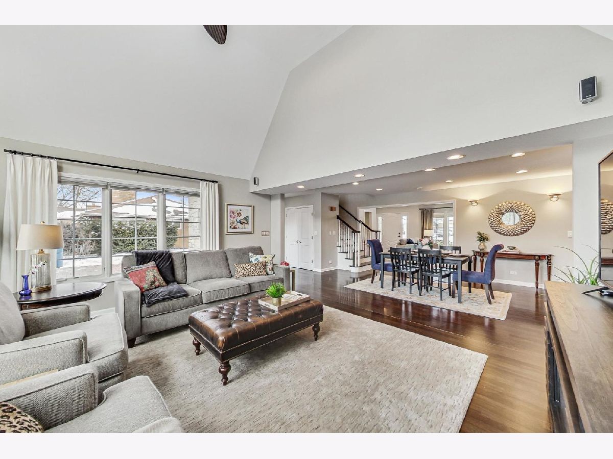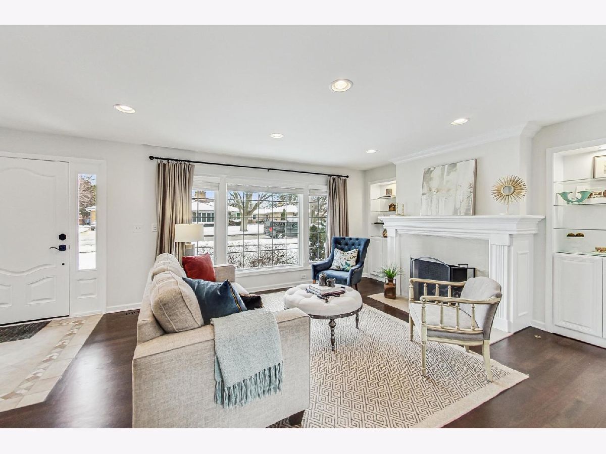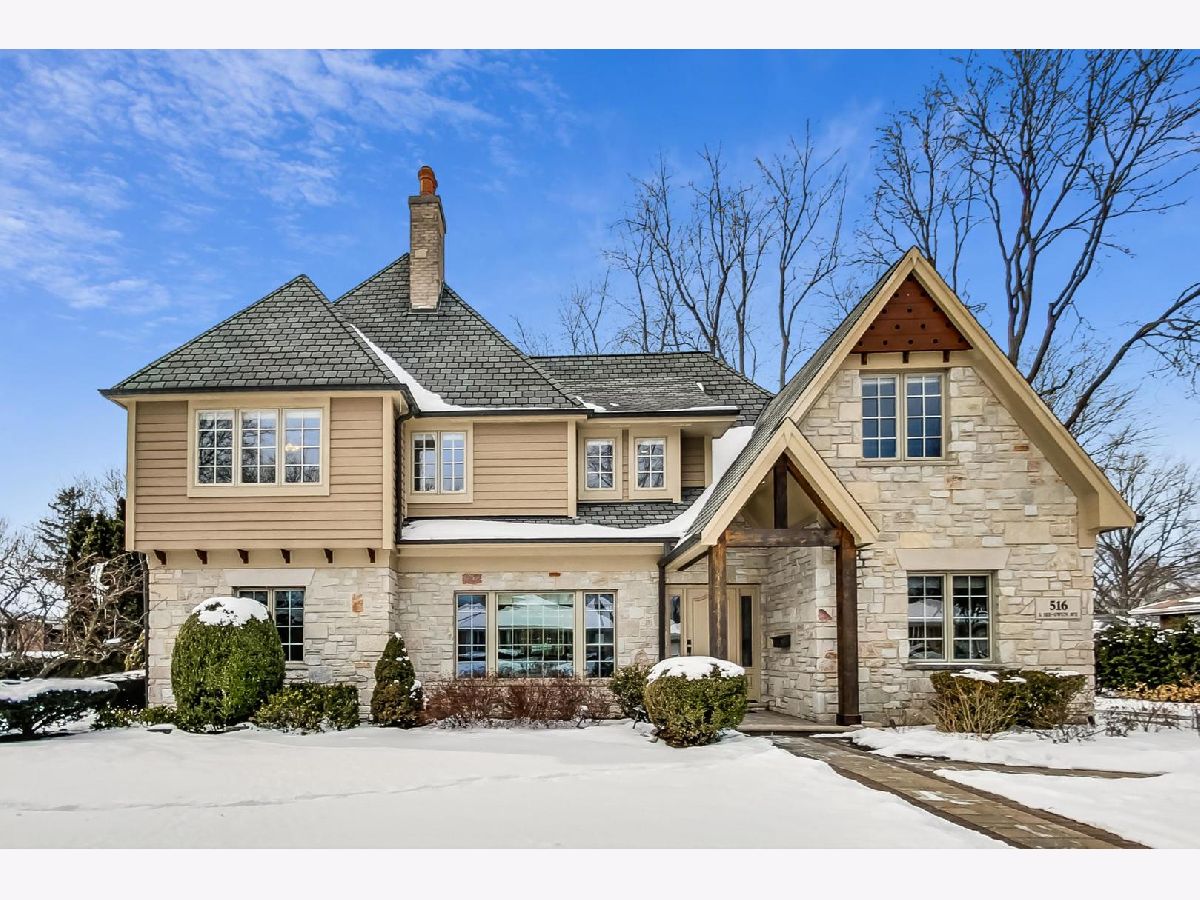 Seize the rare opportunity to own this beautifully designed, custom-built French Tudor home, ideally situated just moments from the picturesque Mount Prospect Golf Club. This stunning two-story residence stands out with its striking curb appeal, highlighted by steeply pitched gables, elegant stone accents, timber trim, copper gutters, and a charming portico entry. The Centennial slate 50 year roof not only enhances the home's aesthetic but also offers lasting durability. Inside, the open-concept layout is designed for both functionality and luxury, providing endless possibilities for modern living. The inviting foyer leads into the expansive living room, featuring a cozy fireplace with built-ins on each side and recessed lighting, flowing seamlessly into the formal dining area-ideal for hosting gatherings of any size. The two-story family room boasts a grand palladium window, allowing natural light to flood the space while offering stunning views of the lush, manicured yard. The gourmet kitchen open to the main living areas, is a chef's dream, complete with rich cabinetry, updated countertops, tiled backsplash, newer stainless steel appliances, and a built-in beverage cooler. Gleaming refinished hardwood floors flow throughout the main level, adding warmth and charm. This home features five spacious bedrooms-three upstairs and two on the main floor-providing versatile options for a home office, in-law suite, or guest accommodations. The second floor landing includes a cozy sitting area and built-in bookcase. The sunlit primary suite is a serene retreat, offering a walk-in closet with Elfa organizers and a beautifully remodeled ensuite bath featuring a sleek walk-in shower and double vanity. Two additional bedrooms share a well-appointed full bathroom with dual sinks. The main level mudroom provides laundry and additional storage. The fully finished basement offers space for a recreation area plus an office/play room or home gym, ample storage and utility rooms. Outside, enjoy the newly installed brick paver driveway, sidewalks, stoops, and large, back patio perfect for outdoor gatherings. Take a leisurely stroll to the clubhouse to enjoy a meal, or simply relax and take in the tranquil views of the golf course. This rare gem in an unbeatable location is an opportunity not to be missed!
