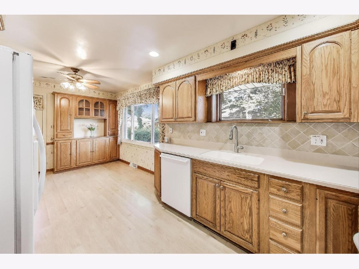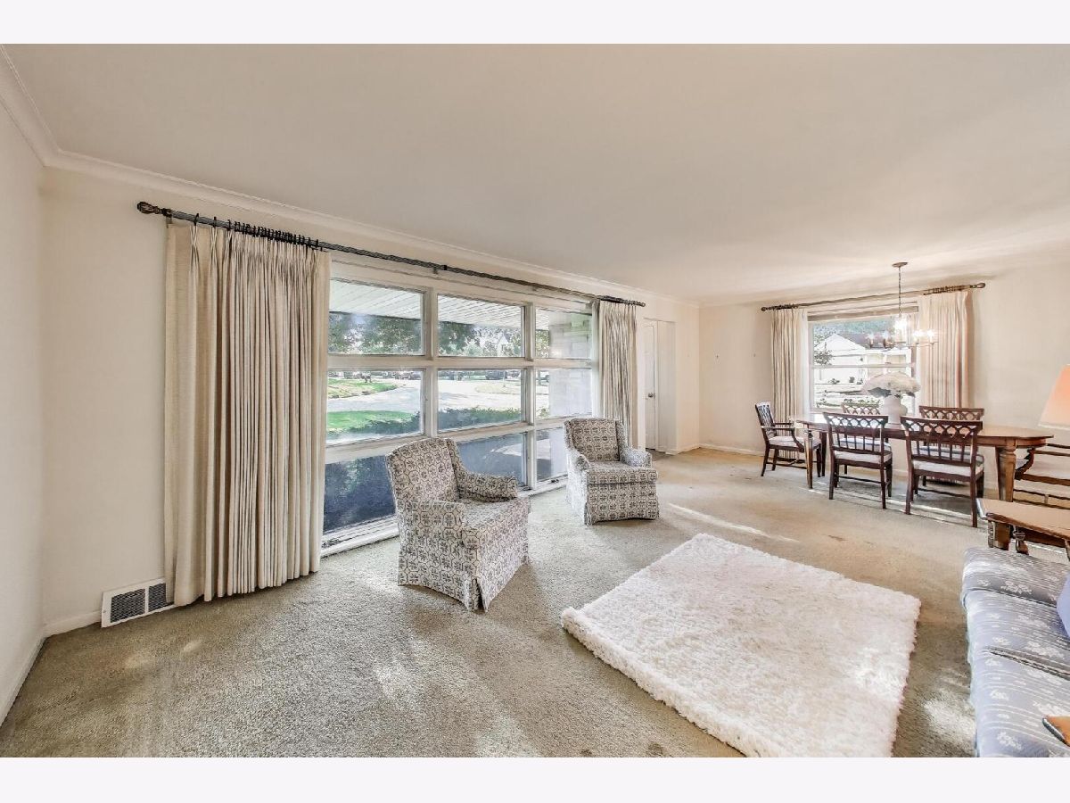 Welcome home to this inviting brick and stone ranch, perfectly situated on a quiet cul-de-sac and designed for easy one-level living on a wonderful 70' x 128' lot. Step inside the cheerful foyer and into a bright and inviting living and dining room, where a large picture window fills the space with natural light. The adjacent kitchen offers plenty of cabinets and counter space, room for a kitchen table, and a handy pantry-everything you need right at your fingertips. Down the hall, three comfortable bedrooms share a full bath, with an additional half bath for guests. The lower level adds so much extra space to spread out, featuring a cozy recreation room with built-ins, two flexible rooms that could be used as an office, exercise room, or guest space, plus a large laundry and storage area. Bring your design ideas to this solidly built ranch, nestled in a welcoming community just minutes from Glenview's exciting new downtown redevelopment and within the highly regarded District 34 and 225 schools.