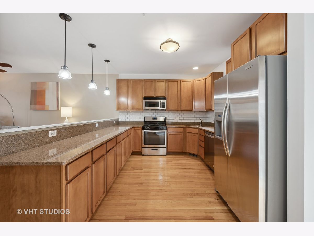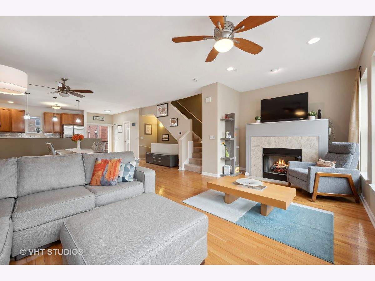 This extra wide, well-appointed townhome in Evanston with impressive open floor plan features hardwood flooring, gas burning fireplace, beautiful new backsplash in kitchen, stainless steel appliances, granite countertops. The east-facing balcony off the kitchen is perfect for a summertime morning coffee and includes the gas grill. Three bedrooms on the third floor, large primary suite features walk-in wardrobe with contemporary smart storage system, and ensuite bathroom. Brand new roof installation completed late 2023. Opportunity for a private rooftop deck, seller will leave TREXX for re-installation. Great location, close to Metra/CTA, shopping, restaurants, South Blvd beach and the lake. Large attached 2-car garage with ample storage.