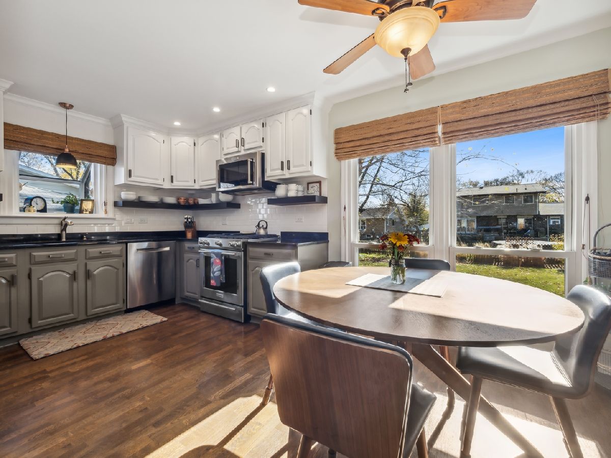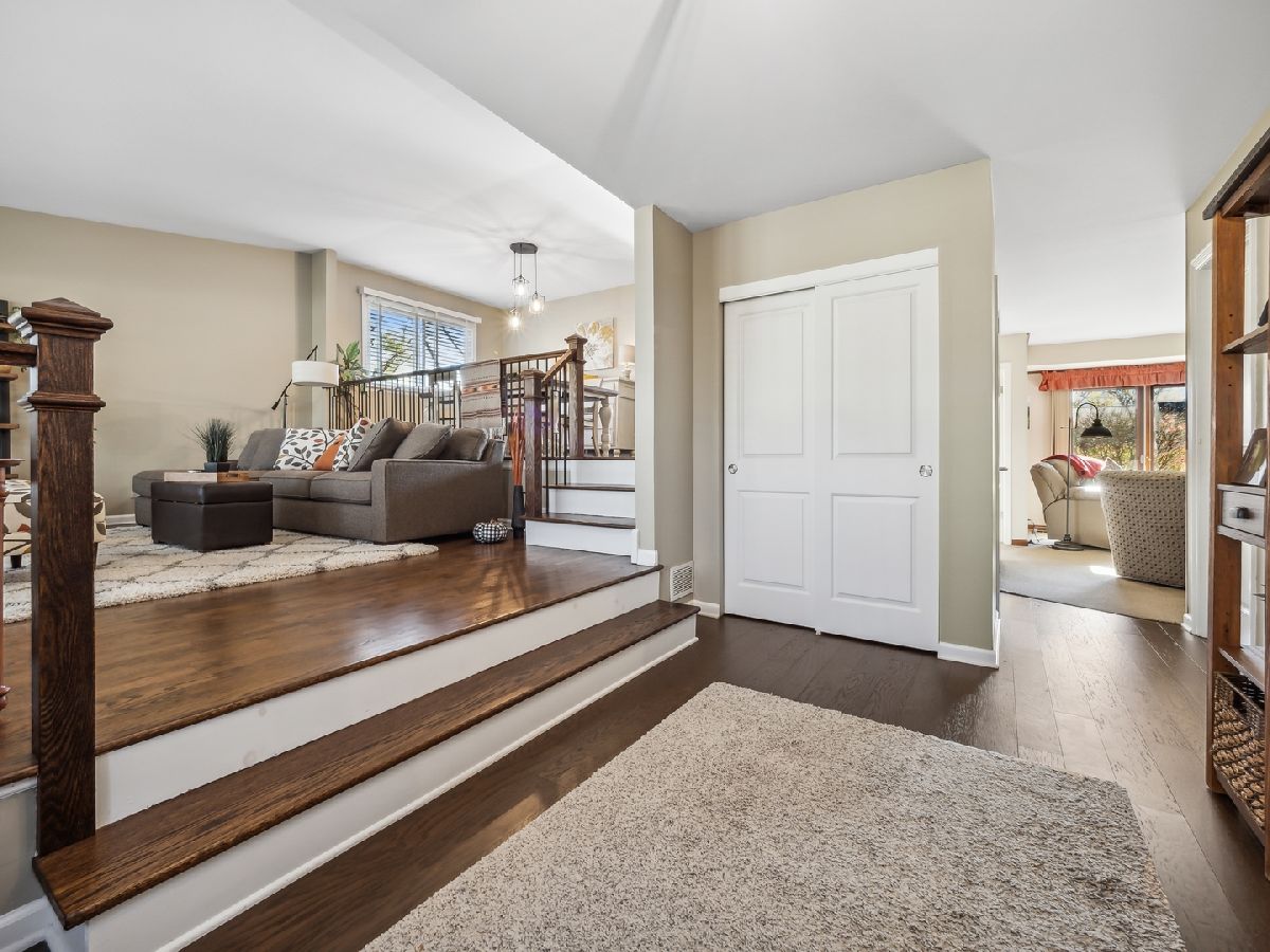 Have you been looking for the perfect updated move-in ready home? Good news...you found it! Gorgeous updated split-level (with sub-basement) with exceptional curb appeal on a quiet tree-lined street in desirable Palatine school district #15/211! Gleaming hardwood floors flow from the spacious foyer through the living and dining rooms, filled with warm natural light, and lead you to the updated kitchen. This beautiful eat-in kitchen boasts, stainless steel appliances, refinished cabinets, a modern open shelf, subway tile backsplash, and a walk-in pantry. Gather around the fireplace in the inviting family room featuring slider doors that lead you to the paver patio and private fenced yard, complete with large outdoor shed. Upstairs, retire to your primary en-suite with large windows, dual closets, and a renovated primary bathroom with standup shower. Two more spacious bedrooms with ample closet space share a full hallway bath with shower/tub combo. The upstairs bedrooms are carpeted, and have the original hardwood floors in great condition underneath. Downstairs, the unfinished basement includes laundry as well as a home workshop. The large crawl space provides lots of extra storage space. So much to enjoy inside and out including the fully fenced yard, paver patio, shed, and 2 car garage. This fabulous location is close to shopping, parks, schools, the Metra station, and all downtown Palatine has to offer.