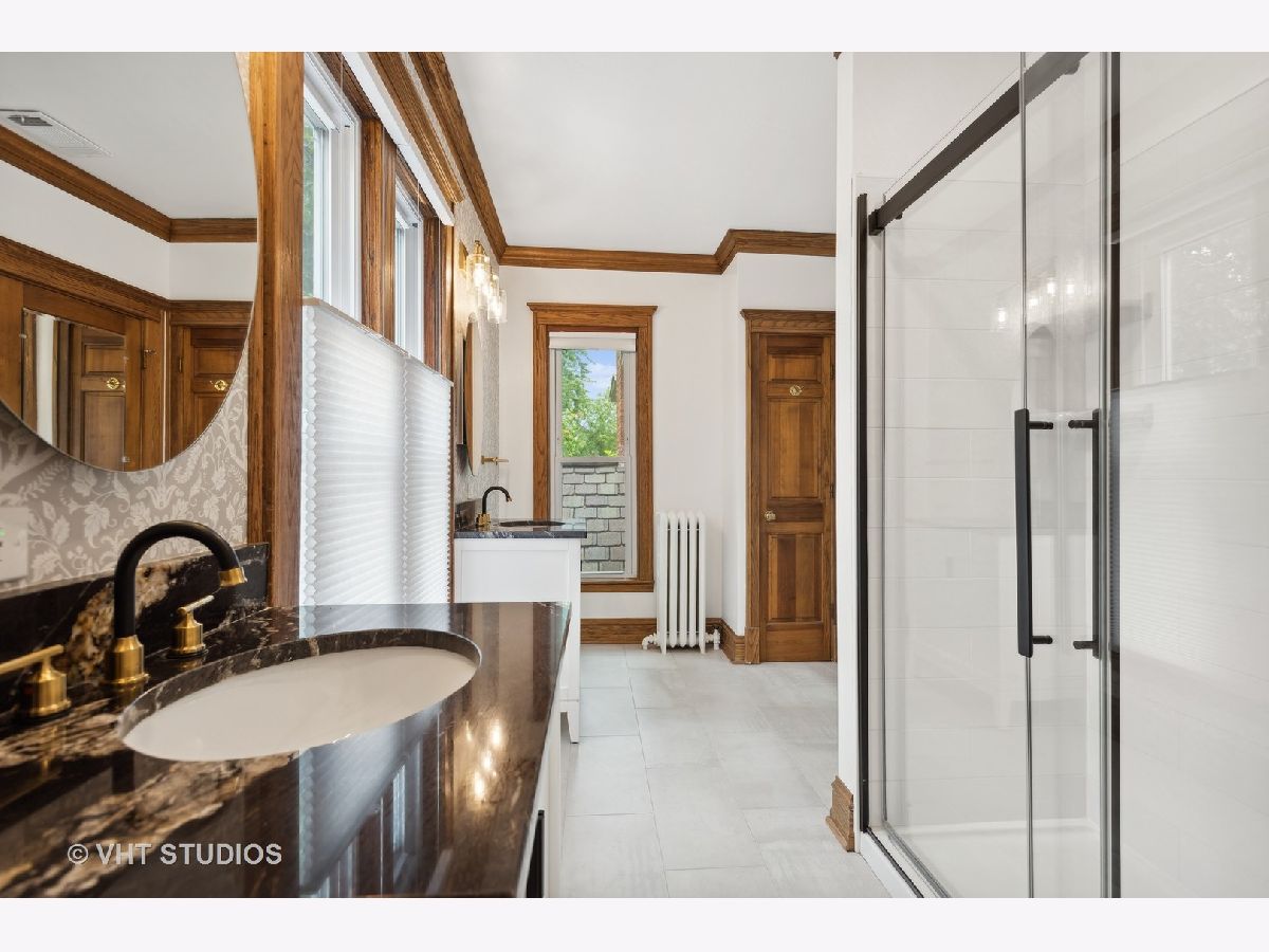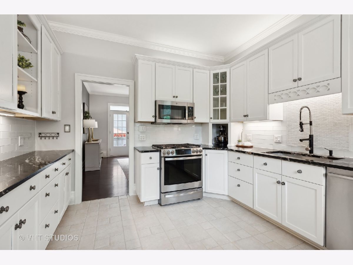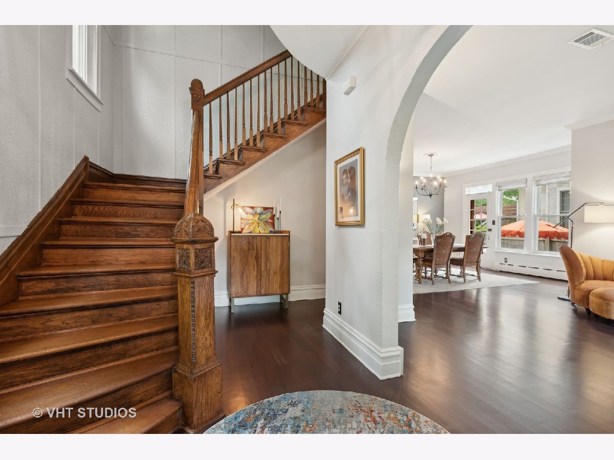 Welcome to this stunning vintage home in the heart of downtown Wheaton, blending historic charm with modern updates. Built in 1879 and remodeled for today's lifestyle, this residence features over 40 tall windows, crown moldings, 10 ft ceilings, and newly finished wood floors. The grand foyer, with its elegant staircase and unique arched doorway, leads to a living space with a double-faced wood-burning fireplace between the living room and family room. The spacious dining room is perfect for entertaining and opens to the living room. Separate from the LR/DR is a beautiful eat-in kitchen, which boasts granite countertops, soft-close cabinets, stainless steel appliances, under-cabinet lighting, and a subway glass tile backsplash. The first-floor bath includes a slipper-shaped clawfoot tub and a pedestal sink. Upstairs, the luxurious master suite has two closets, new carpet, and a remodeled bathroom featuring His and Her vanities with granite tops, a large shower, a porcelain tile floor, and new windows. The guest bath has also been recently remodeled and has a skylight and newer fixtures. Additional features include a partially finished basement that adds more liveable space, and ample storage area in the basement, attic, and garage loft. Located within walking distance to the Metra station, top-rated CUSD200 schools, and the vibrant downtown Wheaton area with its restaurants, shopping, and parks. Updated features include: Master bath '24, 2nd floor Guest bath '19, Under cabinet lighting in kitchen '24, Micro-wave '24, Washer '24, Dryer '22, CAC '24, Boiler '24, Refinished 1st floor wood floors '24, Carpet in Master Bedroom & Stairs to basement and 2nd floor '24, Repainted interior '24, New storm doors to the patio and driveway '24, Basement Perma Sealed '16, Water main from street to house replaced '16, French drains '16, Sump pump and battery backup '16. and many newer windows in '24. 100yr Architectural shingles, Fenced yard beautifully landscaped with bluestone flagstone private patio