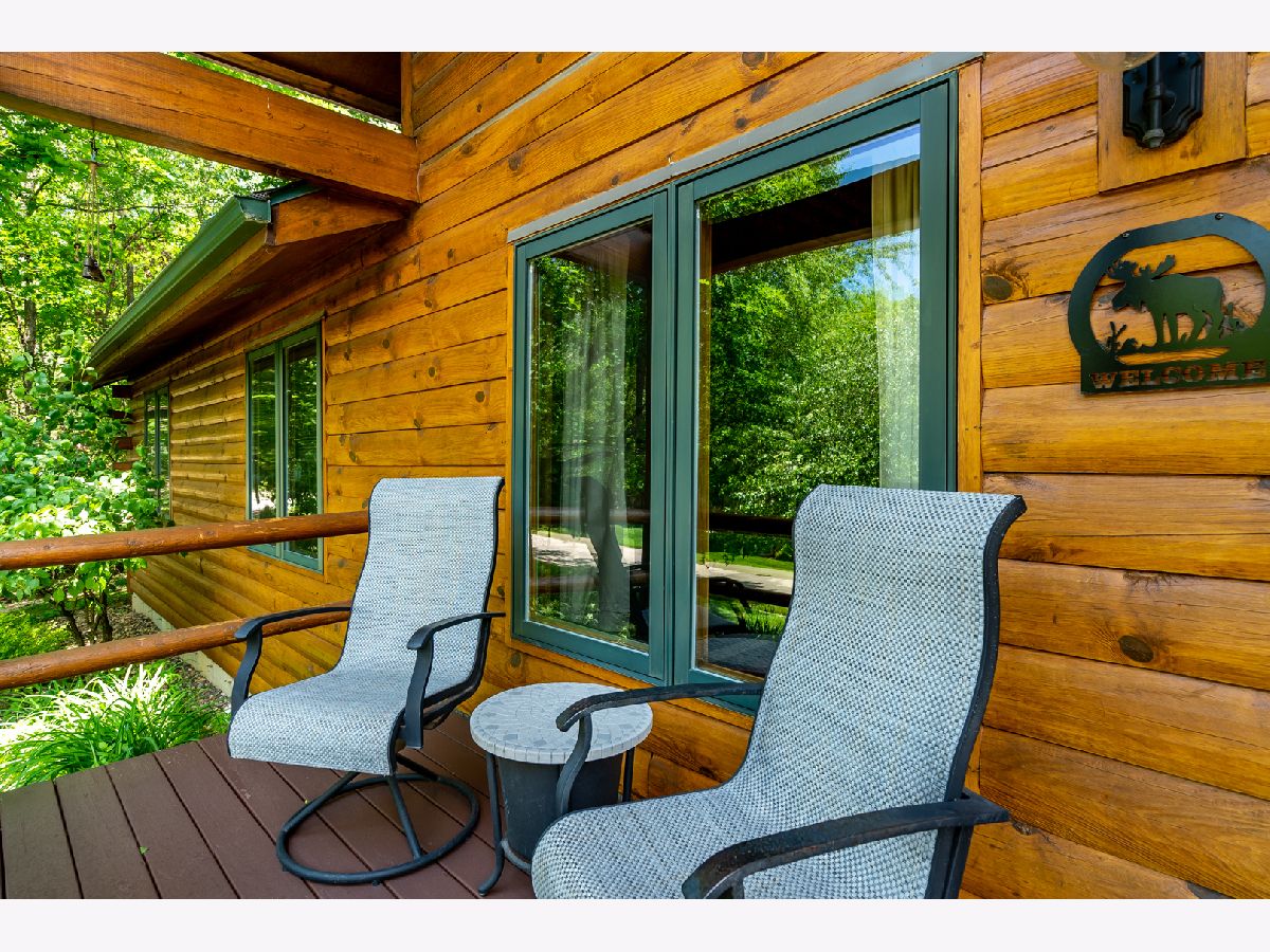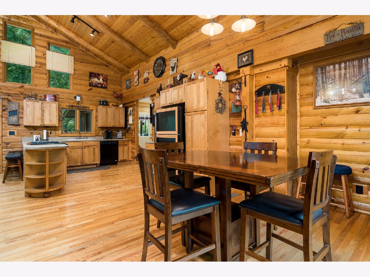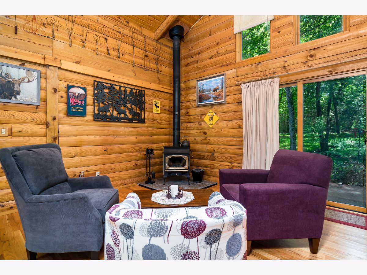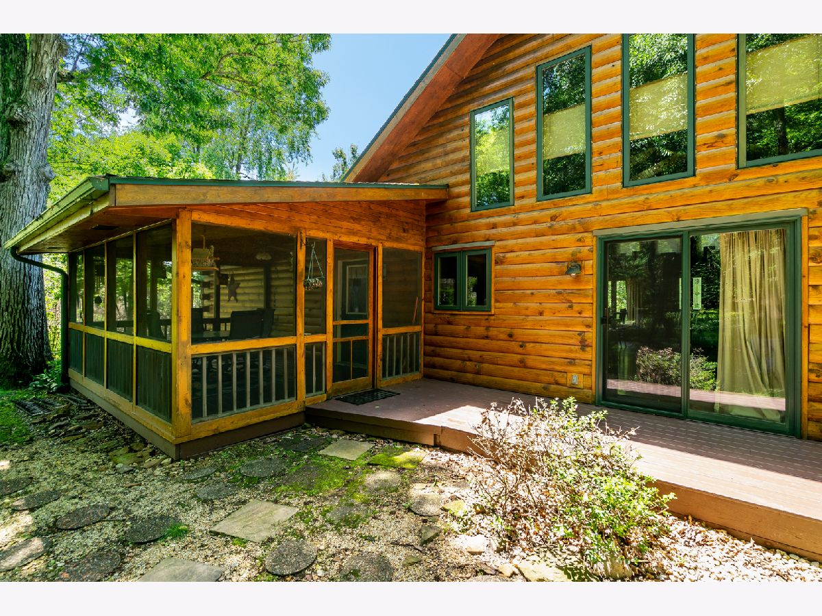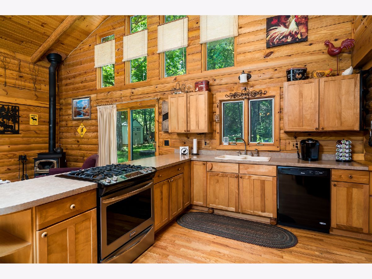 Custom Log Home sits on a double wooded lot. Grand Open floor plan with vaulted ceilings and large living room, dining room and kitchen with wood burning stove. Main floor laundry, perfect screened porch plus deck and a perennial filled yard with fire-pit and garden shed. Master bedroom with master bath. Second and third bedrooms are a good size. Full basement with family room area, shop and 3rd bath. Amenities include full southern yellow pine logs, hardwood floors, vaulted ceilings, sauna and an attached garage. Homeowners can enjoy a stocked lake, private roads, 2 beaches and tennis courts. Virtual tour available for your preview.