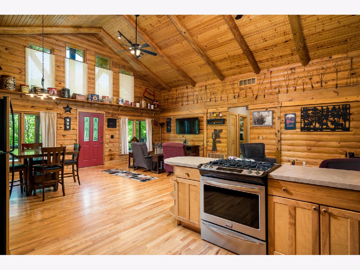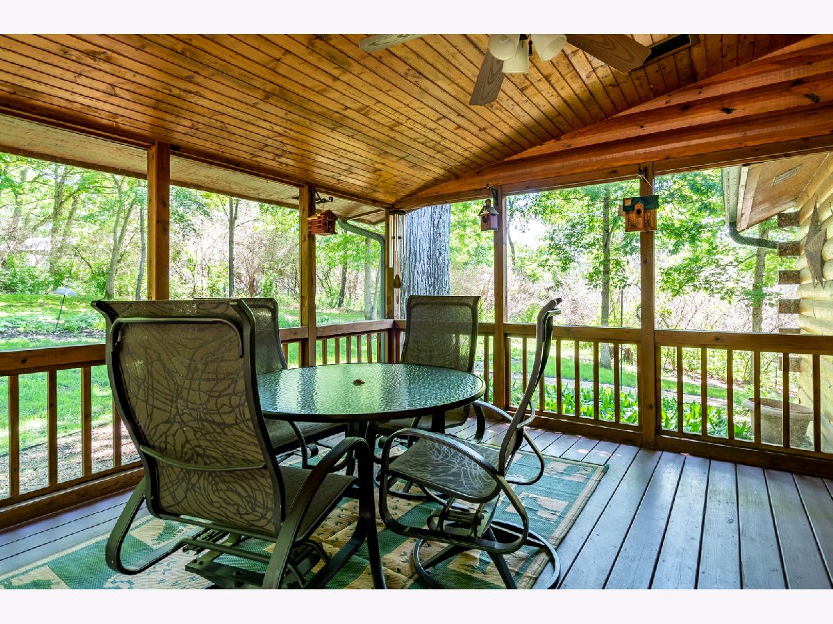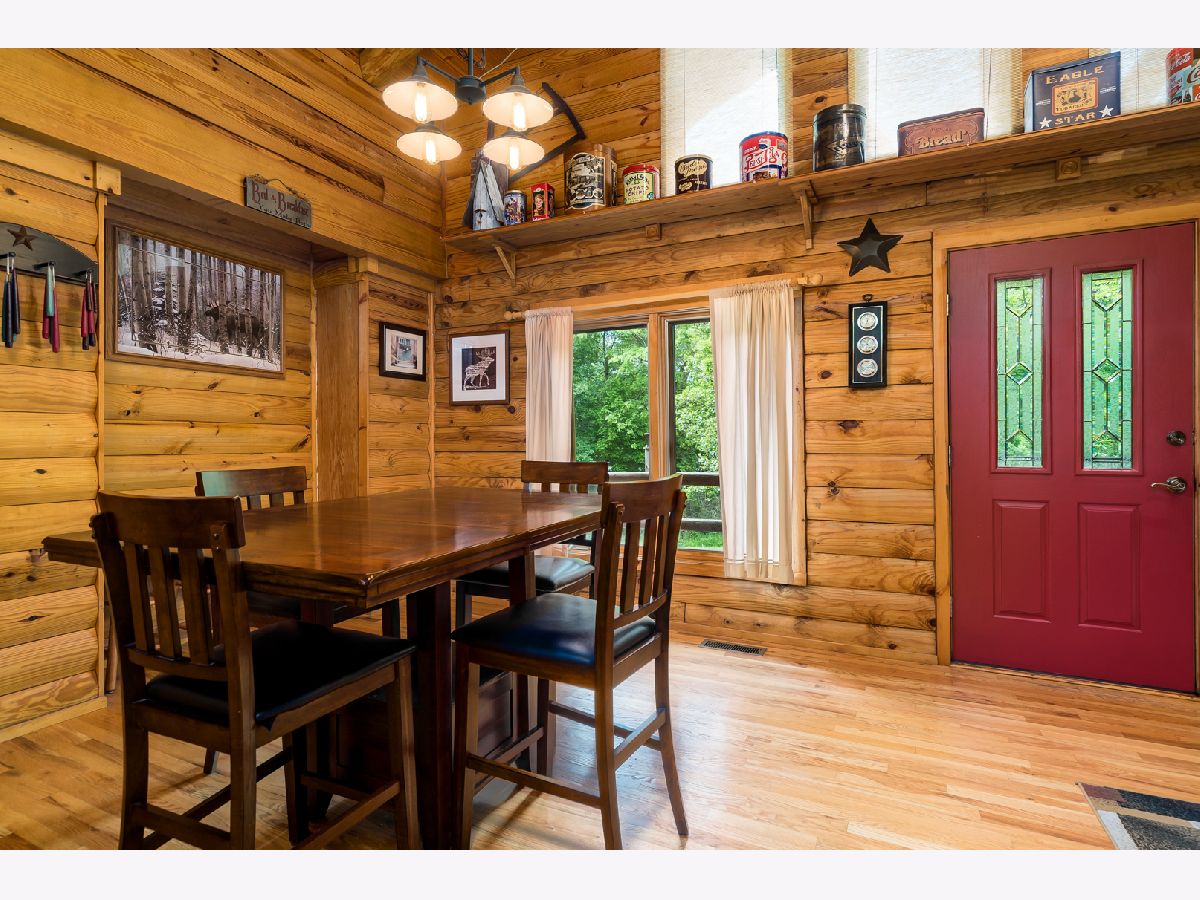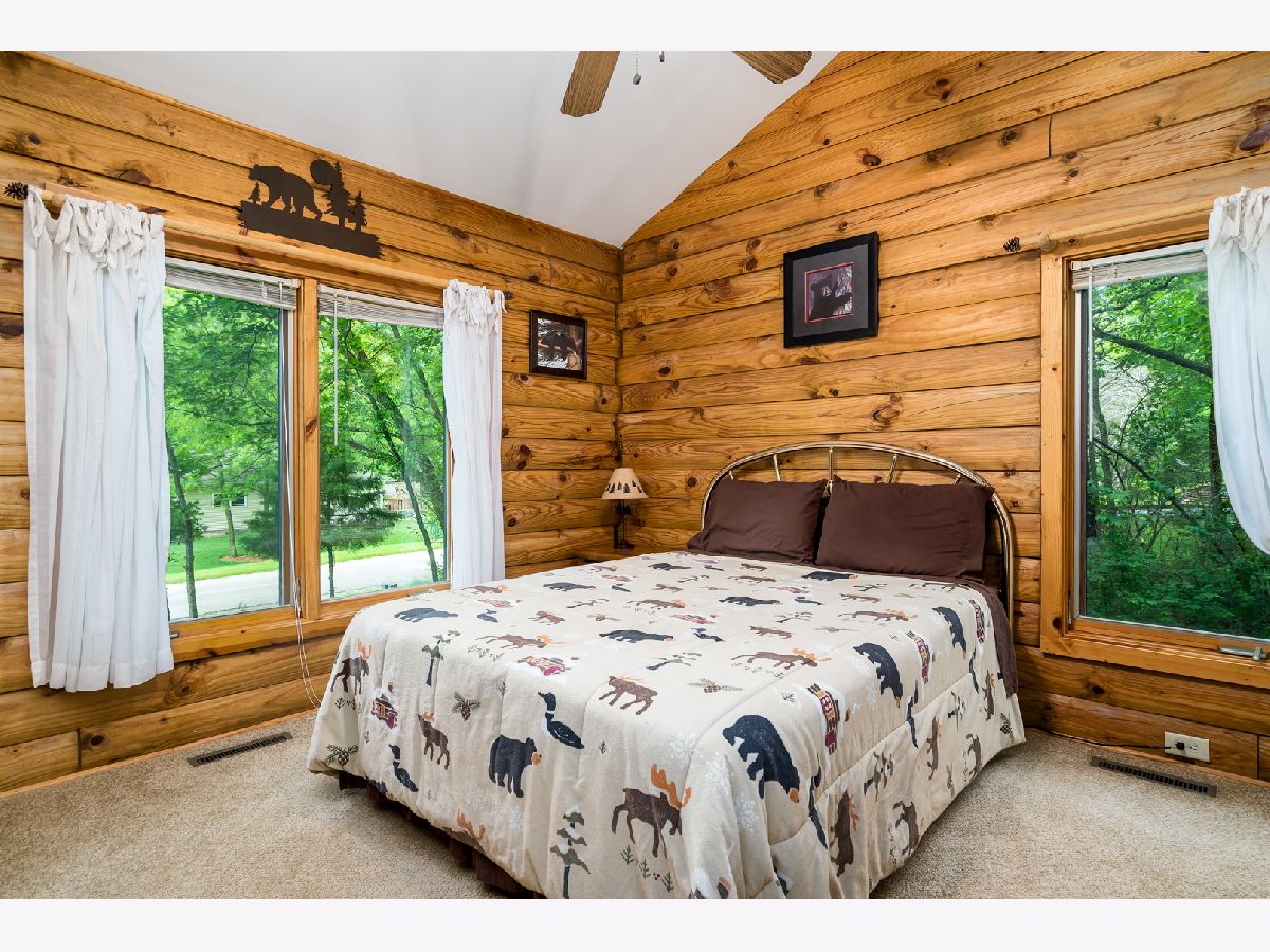 Custom Log Home sits on a double wooded lot. Grand Open floor plan with vaulted ceilings and large living room, dining room and kitchen with wood burning stove. Main floor laundry, perfect screened porch plus deck and a perennial filled yard with fire-pit and garden shed. Master bedroom with master bath. Second and third bedrooms are a good size. Full basement with family room area, shop and 3rd bath. Amenities include full southern yellow pine logs, hardwood floors, vaulted ceilings, sauna and an attached garage. Homeowners can enjoy a stocked lake, private roads, 2 beaches and tennis courts. Virtual tour available for your preview.