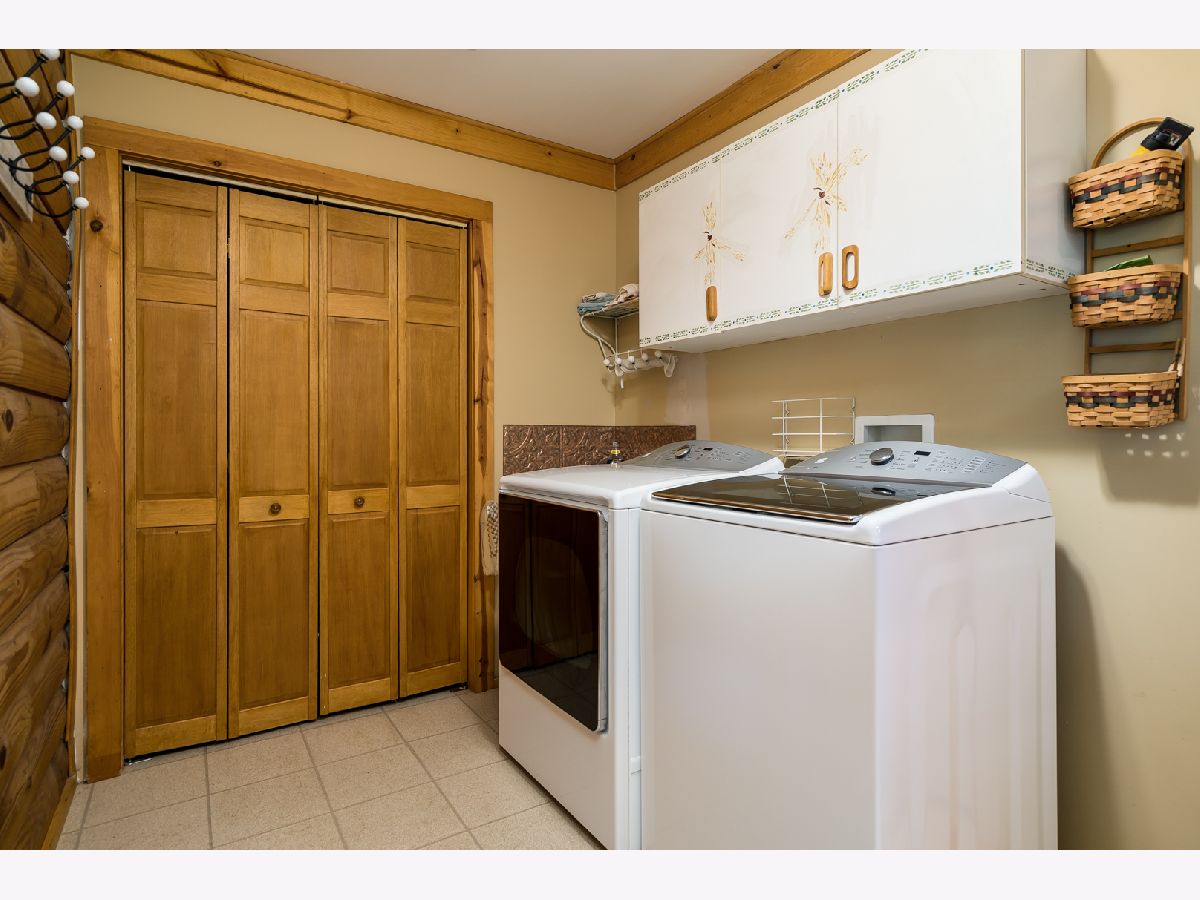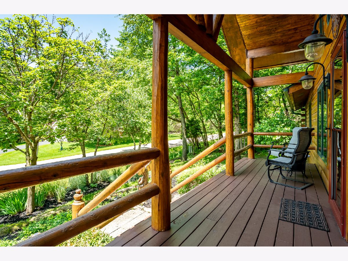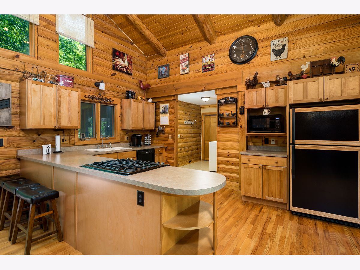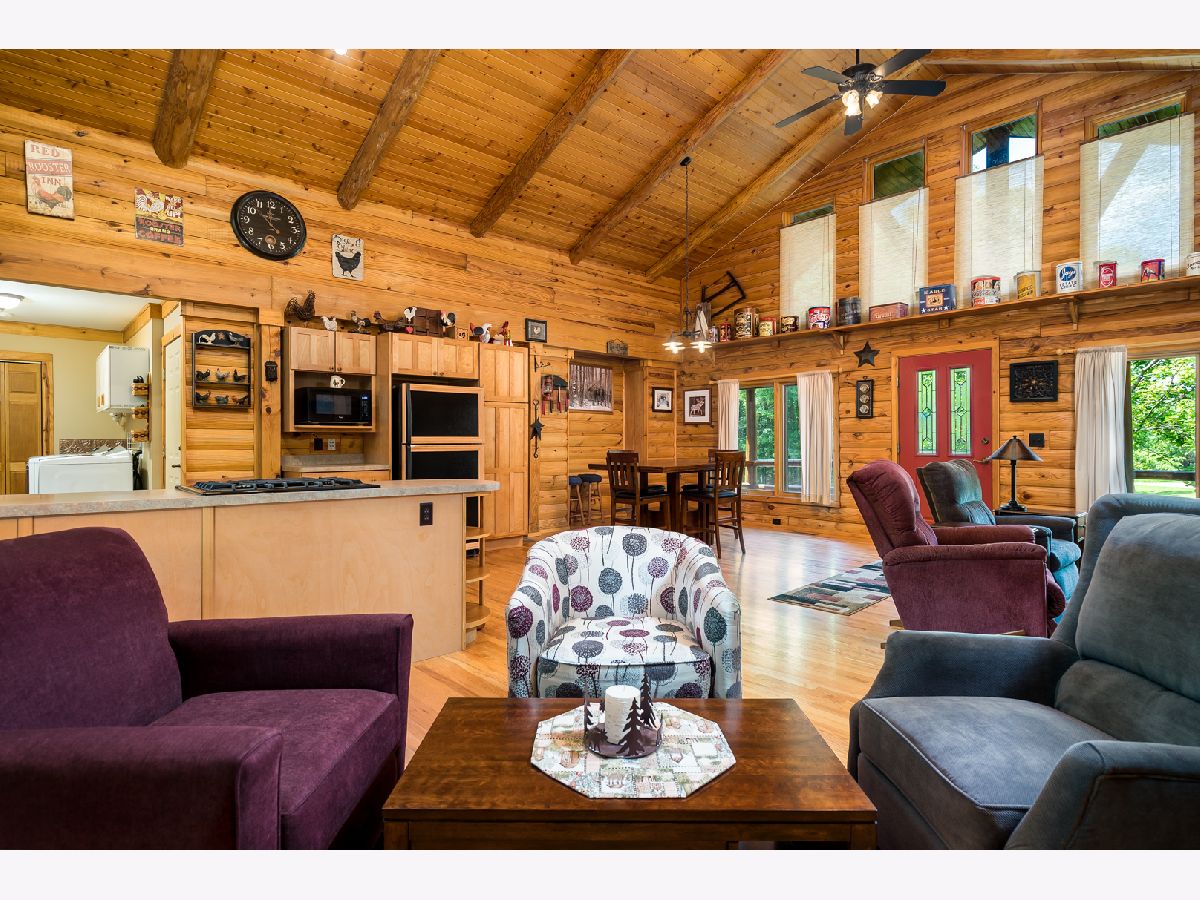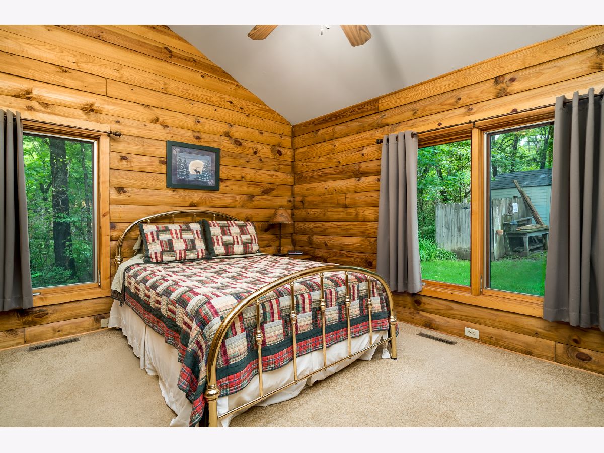 Custom Log Home sits on a double wooded lot. Grand Open floor plan with vaulted ceilings and large living room, dining room and kitchen with wood burning stove. Main floor laundry, perfect screened porch plus deck and a perennial filled yard with fire-pit and garden shed. Master bedroom with master bath. Second and third bedrooms are a good size. Full basement with family room area, shop and 3rd bath. Amenities include full southern yellow pine logs, hardwood floors, vaulted ceilings, sauna and an attached garage. Homeowners can enjoy a stocked lake, private roads, 2 beaches and tennis courts. Virtual tour available for your preview.