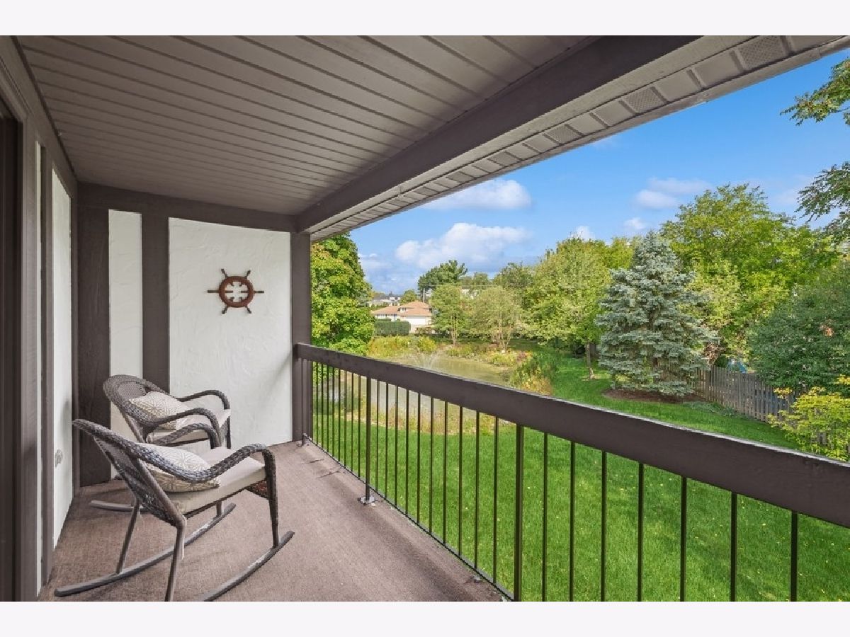 Rarely available, well maintained, two bedroom two bath with attached one car garage and views of the pond. Freshly painted with brand new upgraded carpet throughout. The main living area features cathedral ceilings, a defined area for formal dining, a wet bar and views of the pond. Lovely kitchen with granite countertops, white cabinets, eat in table area, and easy access to a large balcony perfect for grilling and relaxing in the warm weather months. Spacious primary suite with massive walk in closet, large vanity and walk in shower. Second bedroom is big enough to be used as a den/office and bedroom. Laundry room with newer side by side washer dryer. Large hallway bath with tub/shower. The attached garage gives you immediate access to the building and has room for storage. Additional parking for guests as well. Walk to Starbucks, Marianos, the La Grange Country Club and restaurants. Wonderful unit in a prime location!