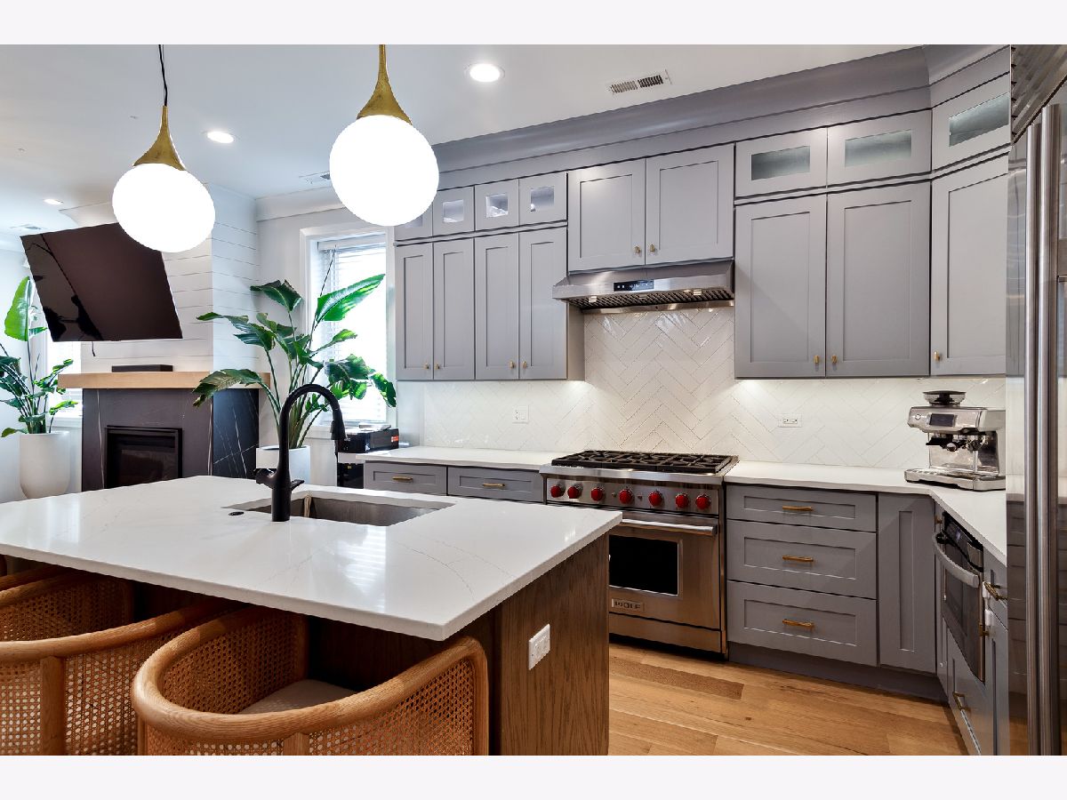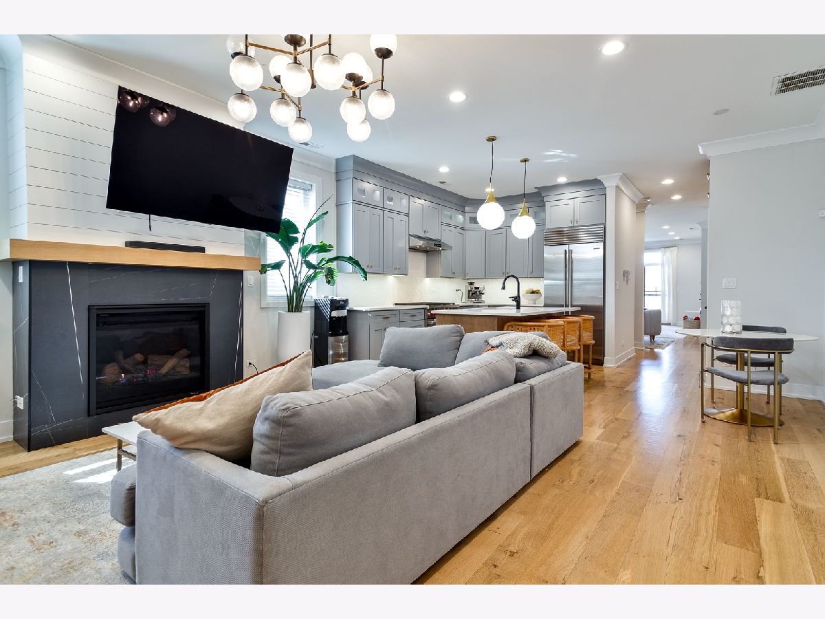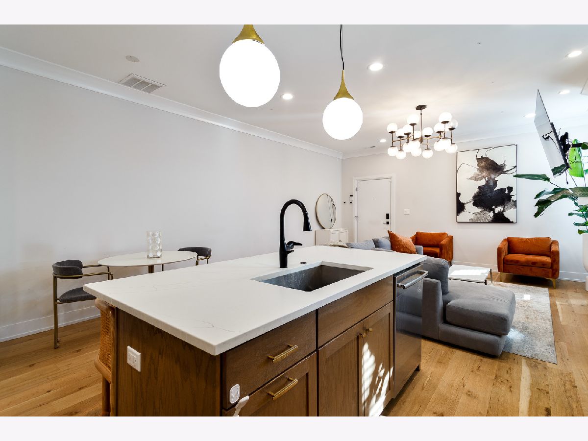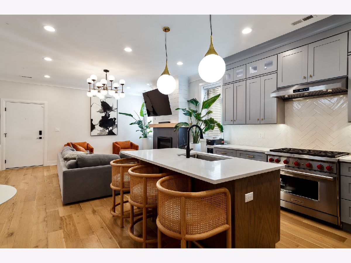 Impeccable recent construction duplex up in West Town. Built in 2022, this multi-level condo lives like a single-family home. Spacious 4 bedroom, 2.1 bath floor plan with private roof deck. Main level perfect for entertaining includes a combined living/dining area with dry bar and balcony, eat-in kitchen with professional Wolf/Sub-Zero appliances, island, and pantry, and adjoining family room with gas fireplace. Wide plank oak hardwood flooring, 8' doors, crown molding, wiring for sound, and statement lighting. Upper level primary suite with large, built-out WIC and private bath featuring dual sinks, heated floors, and a frameless glass steam shower. Three additional bedrooms, full bath with tub, and laundry complete the upper level. Top floor access to private roof top deck with amazing city views + gas/water/electric and beverage center. Heated driveway with one attached garage parking space. Prime West Town location close to restaurants, shopping, entertainment, and Smith Park! Easy access to public transportation and other great neighborhoods.