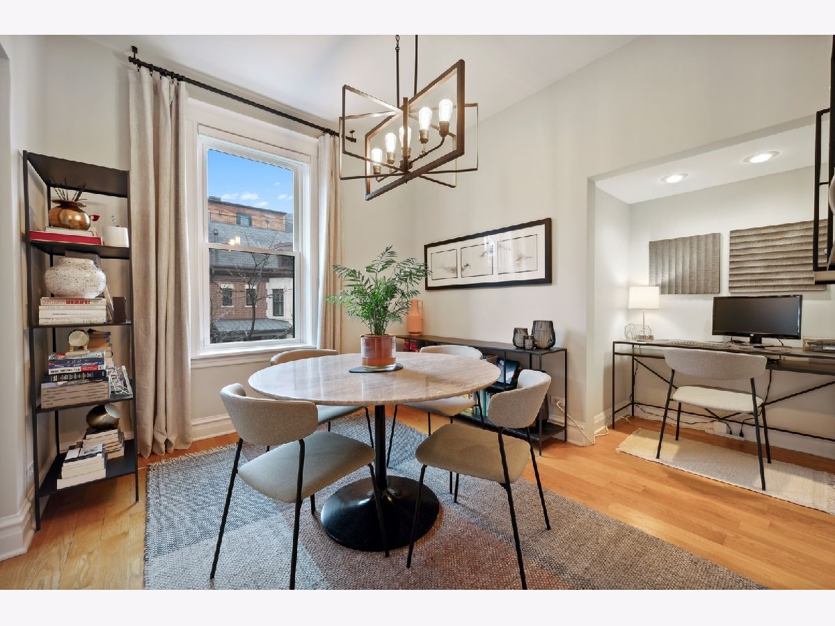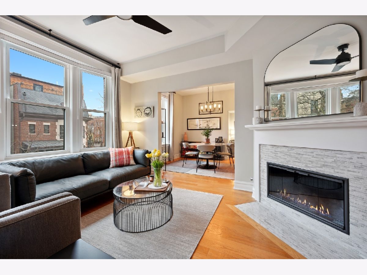 Renovated in 2021 to blend the charm of a Chicago vintage walk up with the modern style and conveniences of today. Here is your 2 bedroom and 1 bathroom condo in this top notch Lincoln Park location. As soon as you enter, the natural sunlight from the South facing windows draw you in. With a layout that embraces entertaining and functionality- enjoy an inviting gallery wall, living room with fireplace, dining room with WFH desk nook and a renovated kitchen with Haier stainless appliance suite (2020), quartz counter tops and backsplash, Rejuvenation open shelving, expansive cabinet storage and Bosch washer and dryer (2021). Windows were replaced by seller in 2020. Custom Hunter Douglas electric shades (October 2020), bathroom fully renovated with Rejuvenation vanity and designer accents. Two large storage closets- basement level- are transferred with the sale. Enjoy the Lincoln Park lifestyle at this highly demanded locale. The best of Armitage Corridor, Lincoln Park - parks, nightlife, jogging paths, LP Zoo and Old Town Triangle, Lincoln and Halsted are at your finger tips. Nearest Train: Armitage EL (Brown/Purple) and bus routes on Clark and Halsted. Street parking (Zone 143) is very realistic in the immediate neighborhood.