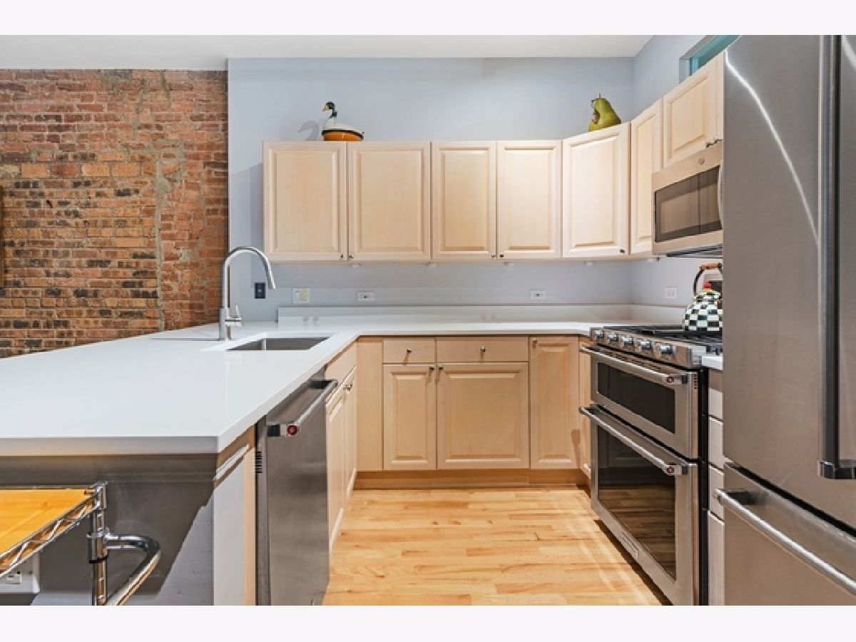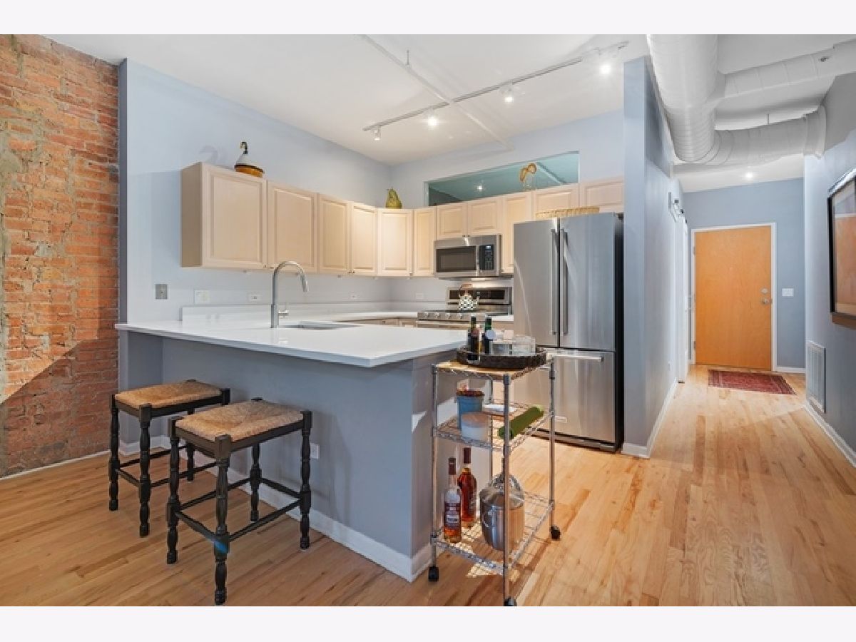 Spacious brick/timber loft featuring two fully enclosed bedrooms, high ceilings and large windows for abundant light. Residence features beautiful architectural elements, open, spacious, flowing floor plan offering foyer, hardwood floors, kitchen with new quartz countertops and stainless steel appliances. Large primary bedroom with walk in closet and six foot soaking tub in bathroom. Additional features include and 18 X 5 balcony, abundant closets, gas fireplace in living room, in unit washer/dryer and east facing private balcony, off the living room. Indoor attached heated lower level parking spot #21 @ $35K. 520 West Huron is known as River North Commons Lofts and is located in the heart of River North, one block to the Riverwalk, dog park, Ward park, blocks to public transportation (both bus and L), shopping, grocery, restaurants, banks, easy expressway access and so much more. Come home today to your treasure box.