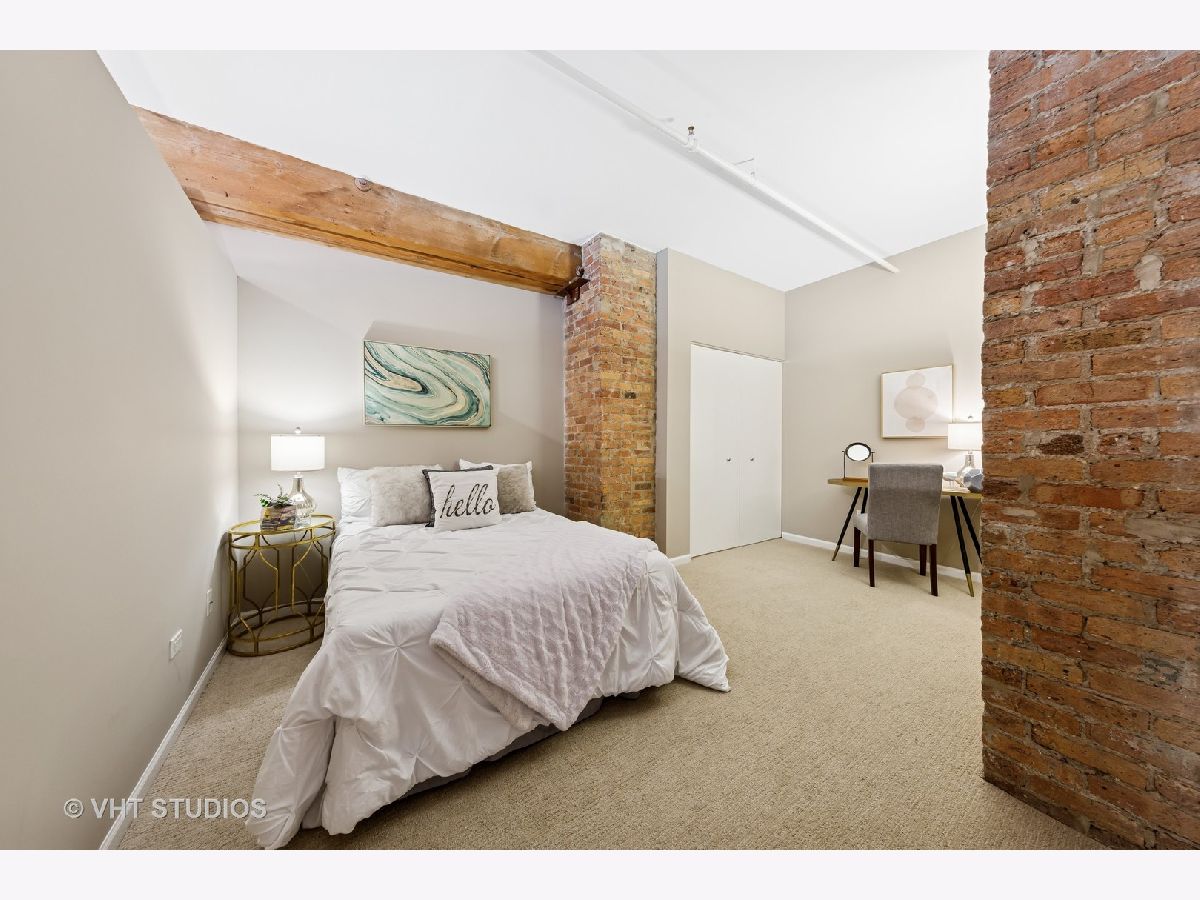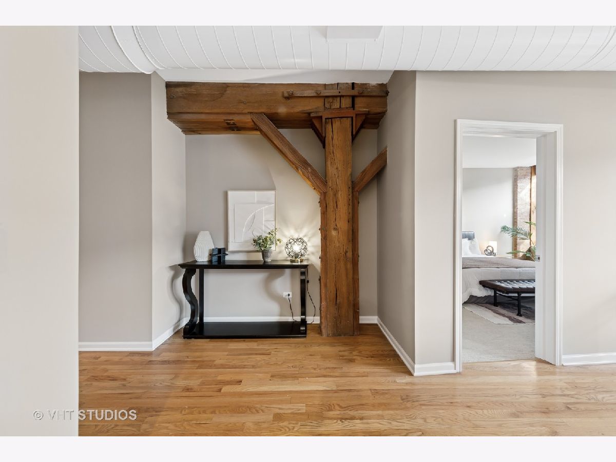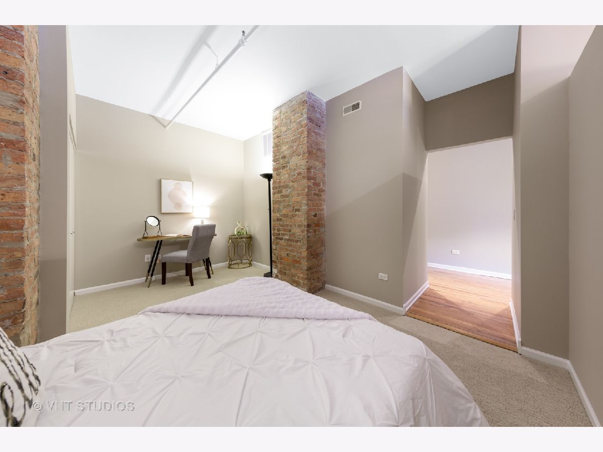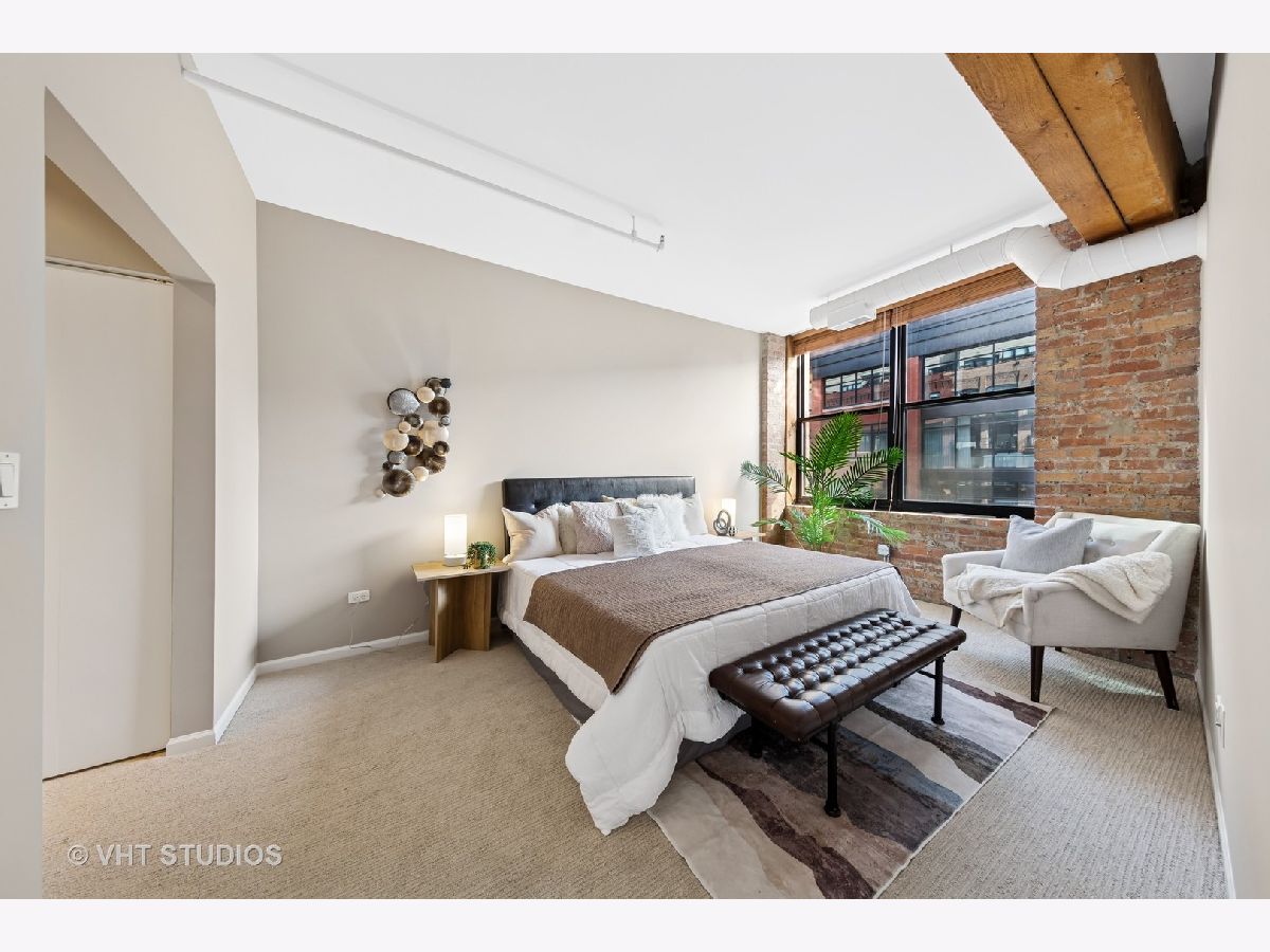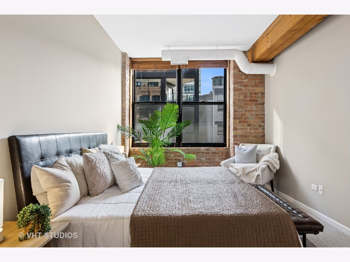 Stunning 2BR/2BA timber loft perfectly situated in the heart of River North. This South facing, spacious floor has a large living room with exposed brick, stunning timber accents, a gas fireplace, and easy access to a spacious balcony! Adjacent to the living room is an open concept kitchen featuring an oversized marble island and bar seating, tile backsplash, and stainless-steel appliances. Spacious primary suite boasting (2) full walls of closets. The primary bathroom features a marble dual vanity, separate standing shower, and a Jacuzzi tub. A generously sized second bedroom is large enough for a bed and full office. Hardwood floors throughout main areas and new carpet in the bedrooms. Potential for an office nook in hallway as well. In-home laundry. Building amenities include 24-hour door staff, fitness center, and incredible skyline views from the common roof deck. Located within close proximity to public transportation, parks, dog park and all of River North's fantastic shops and restaurants. This home offers the perfect blend of neighborhood vibe with city conveniences! Heated garage parking spot available and must be sold with unit. New HVAC in 2024.