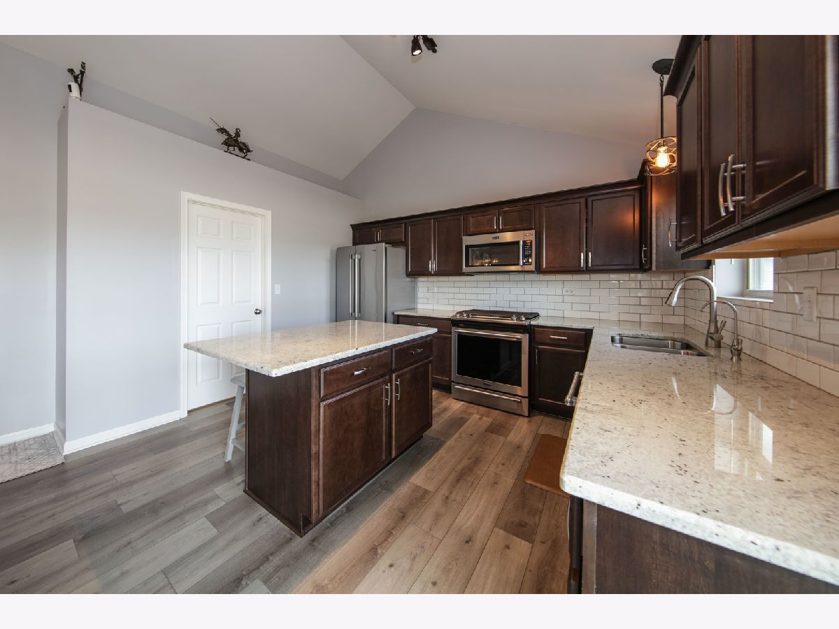 Stunning newer construction Built in 2020! This spacious, open concept floor plan, ranch has it all! Boasts gourmet kitchen with abundant stone counters, quality cabinets, island breakfast bar and full appliance package. One level living at its finest! Soaring ceilings, Three bedrooms including the Primary bedroom with private bath and huge walk-in closet. Large Main floor laundry room, huge full basement waiting for your finishing touches and already plumbed for an additional bath if desired. Seller has added landscaping, a back patio, water filtration system, and a tasteful 6ft privacy fence. Special discounted electric company rates through dynergy. Heated 2 car garage rounds out this gracious home. Schedule your showing today!
