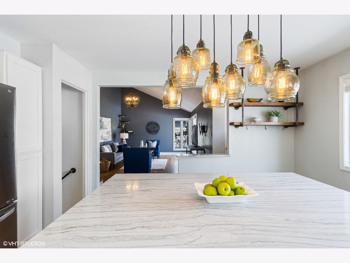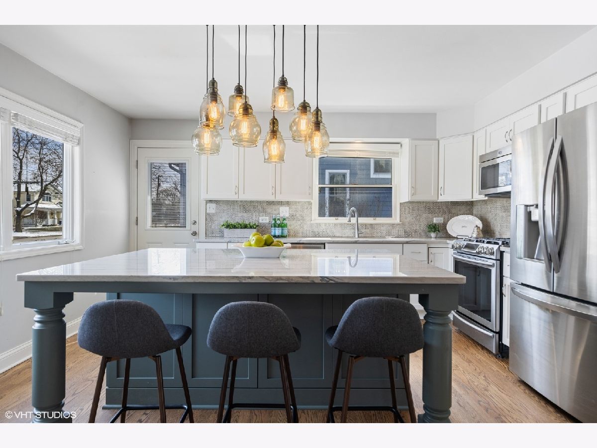 The perfect combination of updates, space and location awaits in this beautifully renovated in-town charmer that is a true walk to town location! The classic entry and pergola covered front porch welcomes you to this sunny and open floor plan. The first level features a great room with hardwood floors, oversized windows, vaulted shiplap ceiling and custom iron stair railings that is open to the updated white kitchen with large island seating. Kitchen finishes include quartzite counters, stainless appliances and vintage-style lighting. The second level features 3 bedrooms with hardwood floors and a full updated bath. On the lower level is a second living area and dining area with loads of natural light, updated full bath, mudroom/laundry room and access to the back yard. The fully fenced yard includes a patio with barrel-style hot tub/plunge pool and 2.5 car garage. With over 1700 square feet of finished living area and so many updates including windows, siding, roof, electrical, exterior doors, door hardware, lighting, whole house generator & more- this home will not disappoint. Plus- the added bonus of the Walnut Glen Playground and Prairie Path at the end of the street!