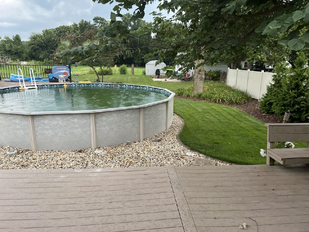 Experience the charm and comfort of this beautifully maintained ranch-style home. As you pull up, you'll be greeted by a welcoming front covered porch and privacy fence. The back yard is perfect for relaxing and enjoying the serene surroundings. Features a back patio, and a cozy firepit area perfect for entertaining. Situated on two large lots. The back of the home includes a large deck that connects to a 24'' pool, complete with a ladder and filter, making it a great spot for summer fun. Inside, the home offers a thoughtfully designed layout with 3 cozy bedrooms and 2 full bathrooms. The living room is a highlight, featuring an electric wall fireplace that adds both warmth and elegance. The eat-in kitchen comes fully equipped with modern appliances. The finished lower level is a versatile space with a family room and an additional gas fireplace for relaxing and watching movies. You'll also find an office area adorned with a stylish barn door, a laundry room with a sliding barn door and washer and dryer, a full bathroom, and ample storage space. For added convenience, the property includes a 1-car attached garage that is heated, ensuring comfort during colder months. The seller is open to negotiating the sale of furniture (separate from the listing price) offering a unique opportunity to make this home truly yours with minimal hassle. Don't let this exceptional property slip away-contact us today to get more details and arrange a viewing. Ask listing agent for more details.