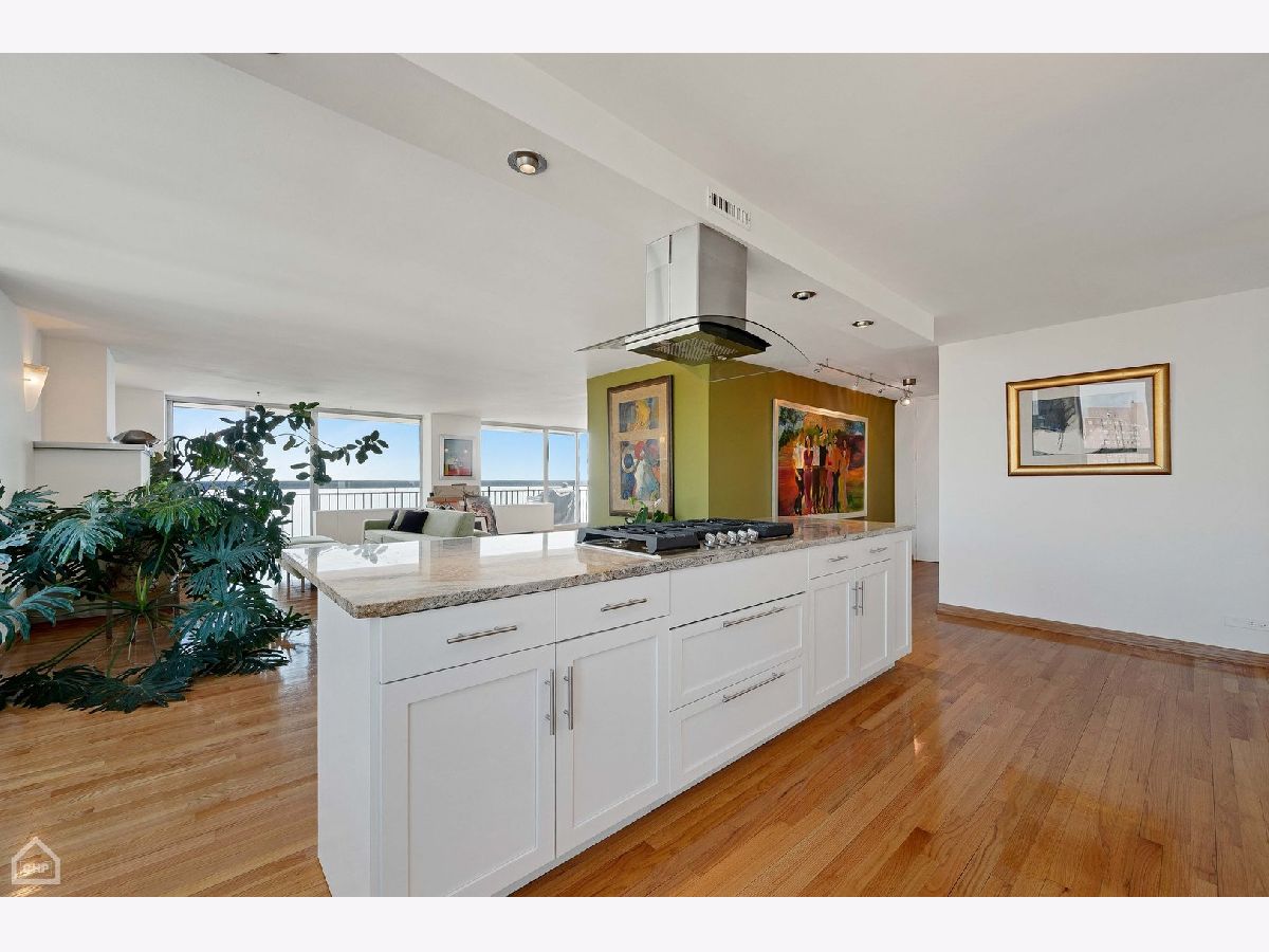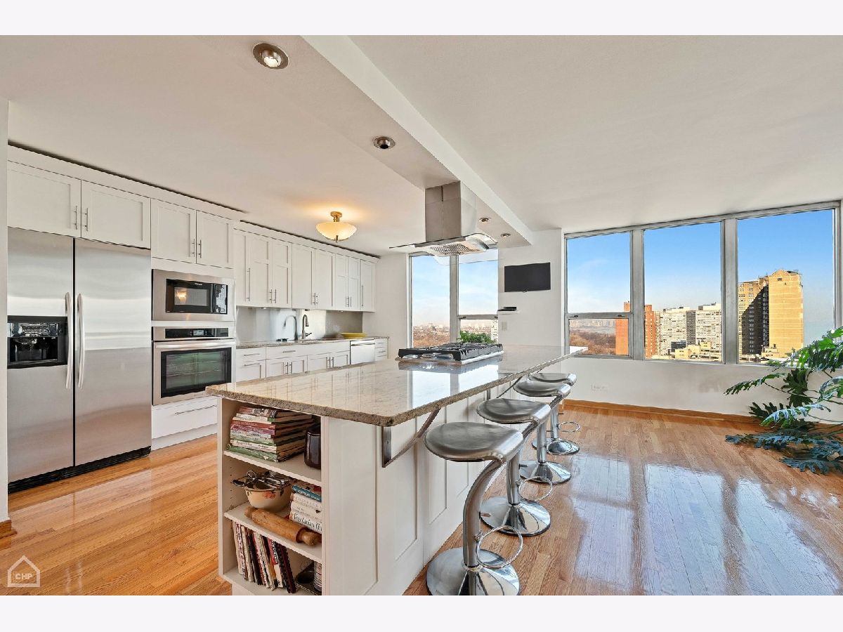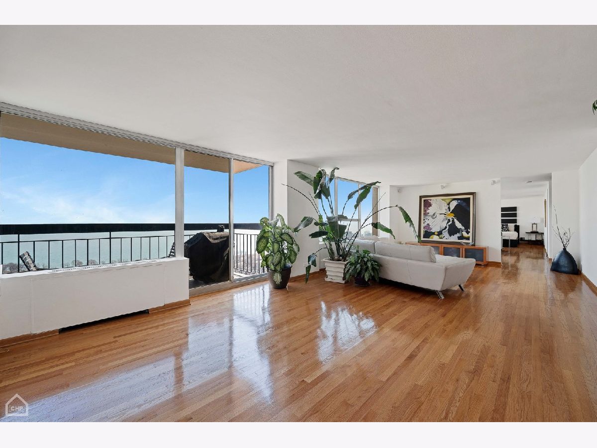 If you love amazing views, this home is for you! This gorgeous fully updated one-of-a-kind condominium home is comprised of a combined two units and occupies the full north, east and west corner of the building-- offering sweeping views of the city and the lake. There are two entry foyers, the larger is a perfect gallery space for your favorite photographs or artwork. The current owners have created a remarkable space that makes entertaining easy in this extraordinarily spacious open floor plan home. The living room, dining room, wet bar, family room and kitchen all flow seamlessly. The living room has a gas fireplace, the dining room can accommodate multiple guests, the wet bar with wine cooler offers additional beverage service and storage space and the family room beckons guests to relax and enjoy. Accessible from the living room and dining room there is a 26-foot-long balcony overlooking the lake offering coveted private outdoor space. The fully equipped kitchen has granite countertops and stainless-steel appliances and abundant cabinetry including storage in the oversized island which can easily seat four to six people. Originally a five-bedroom home, two bedrooms in the east wing of the home were combined to create an oversized primary bedroom suite with sitting room, a walk-in closet and a luxurious ensuite bath with separate whirlpool, steam shower and double sinks. The west wing of the home contains three bedrooms, one of which has been crafted into an open office (but can easily be restored for private bedroom use). In this wing is a large ensuite bedroom with walk in closet and a beautiful bath with walk-in shower with multiple shower jets. The updated full guest bath has a walk-in shower. Recent improvements to the home include new and refurbished red oak floors done in September 2022; kitchen cooktop, vent, oven, microwave, and refaced kitchen cabinets; wet bar cabinetry, faucet and wine cooler; and the entire apartment was painted in November 2022. Cornell Village is a premier Hyde Park condominium complex offering desired amenities such as an outdoor swimming pool and sundeck, party room with outside access, a fitness center, door staff, mezzanine level laundry, storage and garage parking. Located steps to transportation, shopping, restaurants, the lake, parks, Museum of Science and Industry, the upcoming Obama Presidential Center and the University of Chicago. An optional two garage spaces are guaranteed at a monthly fee of $150 each. The current property taxes do not reflect any exemptions.