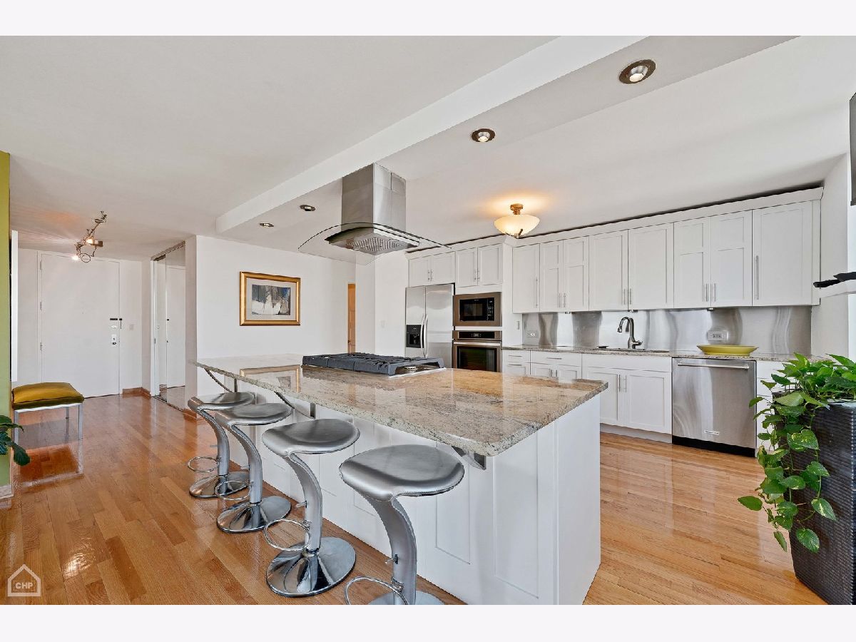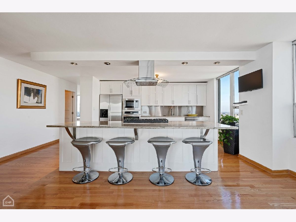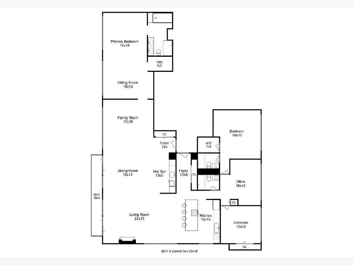 If you love amazing views, this home is for you! This gorgeous fully updated one-of-a-kind condominium home is comprised of a combined two units and occupies the full north, east and west corner of the building-- offering sweeping views of the city and the lake. There are two entry foyers, the larger is a perfect gallery space for your favorite photographs or artwork. The current owners have created a remarkable space that makes entertaining easy in this extraordinarily spacious open floor plan home. The living room, dining room, wet bar, family room and kitchen all flow seamlessly. The living room has a gas fireplace, the dining room can accommodate multiple guests, the wet bar with wine cooler offers additional beverage service and storage space and the family room beckons guests to relax and enjoy. Accessible from the living room and dining room there is a 26-foot-long balcony overlooking the lake offering coveted private outdoor space. The fully equipped kitchen has granite countertops and stainless-steel appliances and abundant cabinetry including storage in the oversized island which can easily seat four to six people. Originally a five-bedroom home, two bedrooms in the east wing of the home were combined to create an oversized primary bedroom suite with sitting room, a walk-in closet and a luxurious ensuite bath with separate whirlpool, steam shower and double sinks. The west wing of the home contains three bedrooms, one of which has been crafted into an open office (but can easily be restored for private bedroom use). In this wing is a large ensuite bedroom with walk in closet and a beautiful bath with walk-in shower with multiple shower jets. The updated full guest bath has a walk-in shower. Recent improvements to the home include new and refurbished red oak floors done in September 2022; kitchen cooktop, vent, oven, microwave, and refaced kitchen cabinets; wet bar cabinetry, faucet and wine cooler; and the entire apartment was painted in November 2022. Cornell Village is a premier Hyde Park condominium complex offering desired amenities such as an outdoor swimming pool and sundeck, party room with outside access, a fitness center, door staff, mezzanine level laundry, storage and garage parking. Located steps to transportation, shopping, restaurants, the lake, parks, Museum of Science and Industry, the upcoming Obama Presidential Center and the University of Chicago. An optional two garage spaces are guaranteed at a monthly fee of $150 each. The current property taxes do not reflect any exemptions.