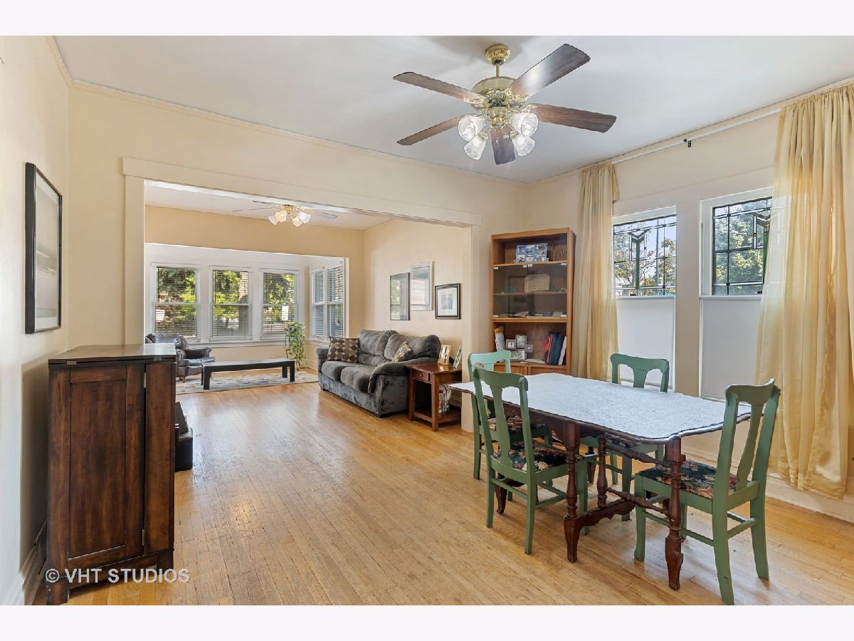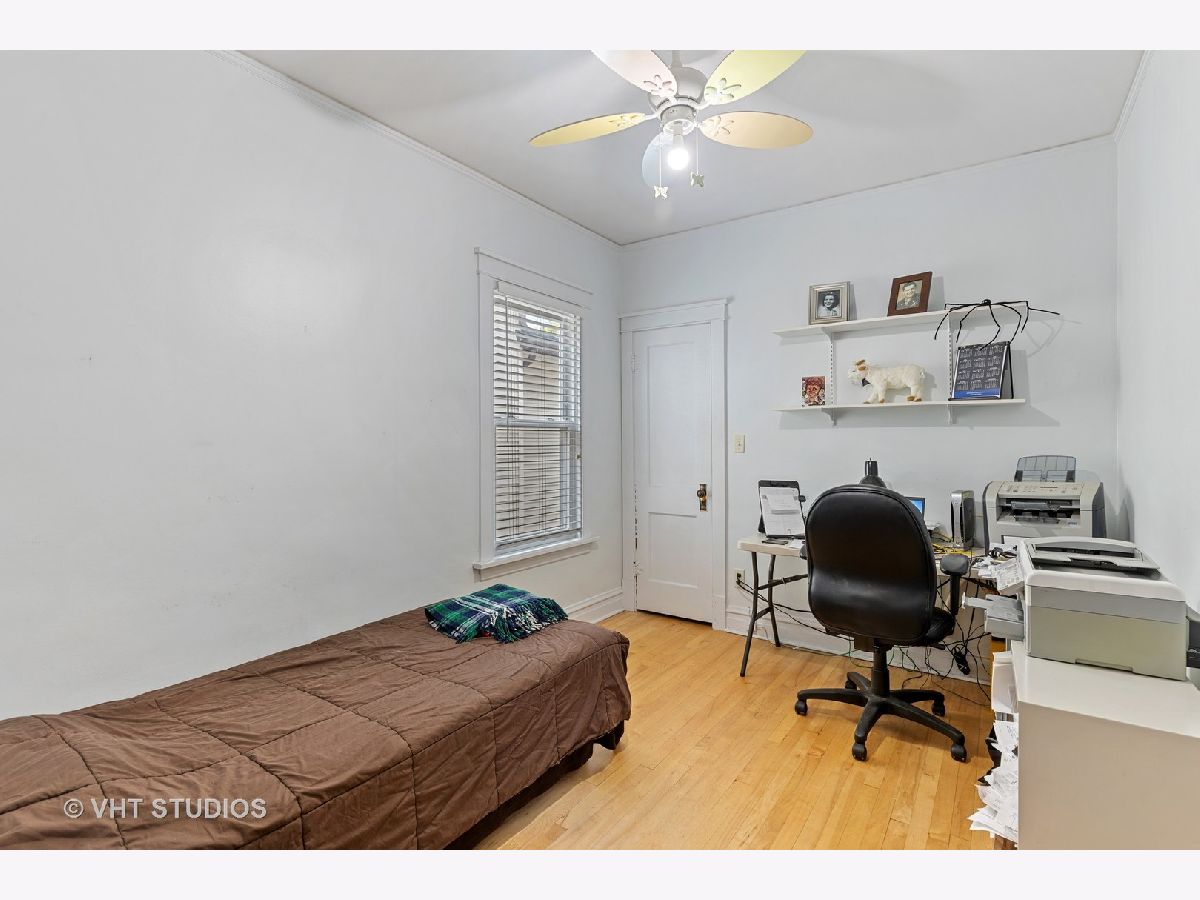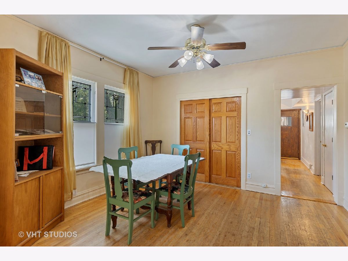 PROPERTY UNDER CONTRACT. Welcome to this corner-lot 4-bedroom, 3-bathroom single family home in Portage Park! Opportunity awaits with this home that offers great bones and potential. This is an as-is sale. Main level offers hardwood floors, large front sun-room and living room, dining space with gorgeous stain-glass windows, kitchen, 2 well-sized bedrooms and a full bathroom. Upper level offers primary bedroom with en-suite full bathroom, loft space, and unfinished attic space. Partially finished basement features a bedroom and full bathroom (non-functional), storage space, and large utility room. Main level features central heat and air, upper level uses radiator heat and 2 window A/C units. Roof was a full tear-off in 2013, leaf-guards on the gutters. Other features include a 3-season rear porch, large backyard with concrete patio and lawn space. 2-car garage is partially finished with built-in workbench. Excellent location between Chopin Park and Portage Park and 6-corners!