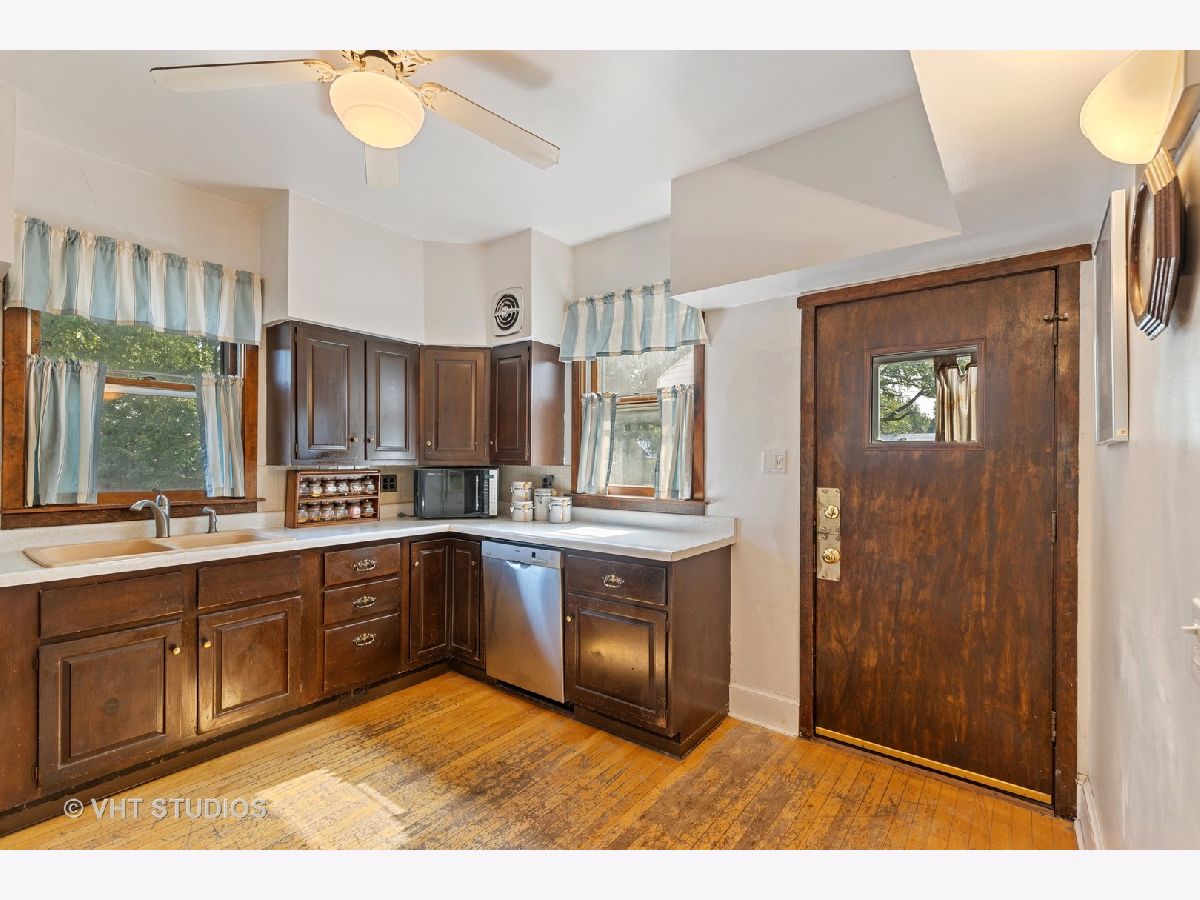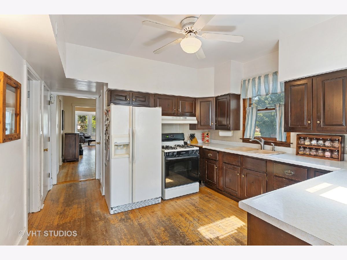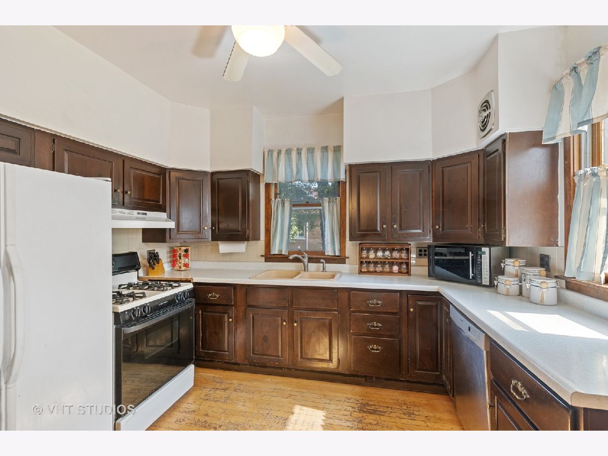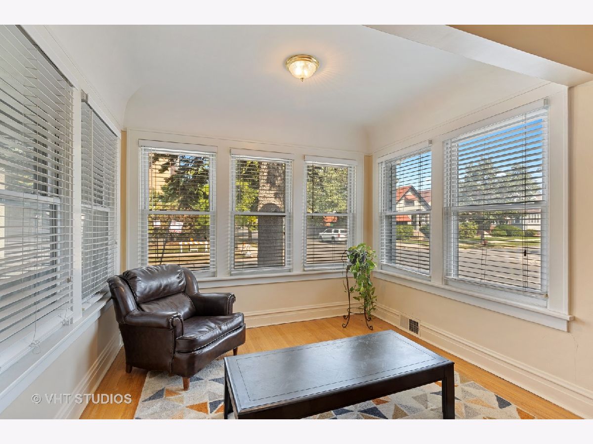 PROPERTY UNDER CONTRACT. Welcome to this corner-lot 4-bedroom, 3-bathroom single family home in Portage Park! Opportunity awaits with this home that offers great bones and potential. This is an as-is sale. Main level offers hardwood floors, large front sun-room and living room, dining space with gorgeous stain-glass windows, kitchen, 2 well-sized bedrooms and a full bathroom. Upper level offers primary bedroom with en-suite full bathroom, loft space, and unfinished attic space. Partially finished basement features a bedroom and full bathroom (non-functional), storage space, and large utility room. Main level features central heat and air, upper level uses radiator heat and 2 window A/C units. Roof was a full tear-off in 2013, leaf-guards on the gutters. Other features include a 3-season rear porch, large backyard with concrete patio and lawn space. 2-car garage is partially finished with built-in workbench. Excellent location between Chopin Park and Portage Park and 6-corners!