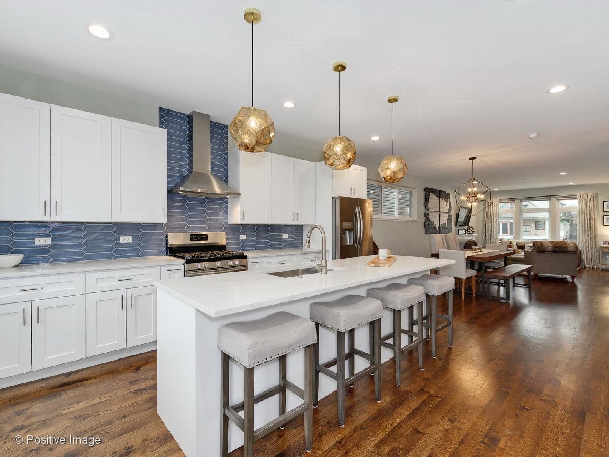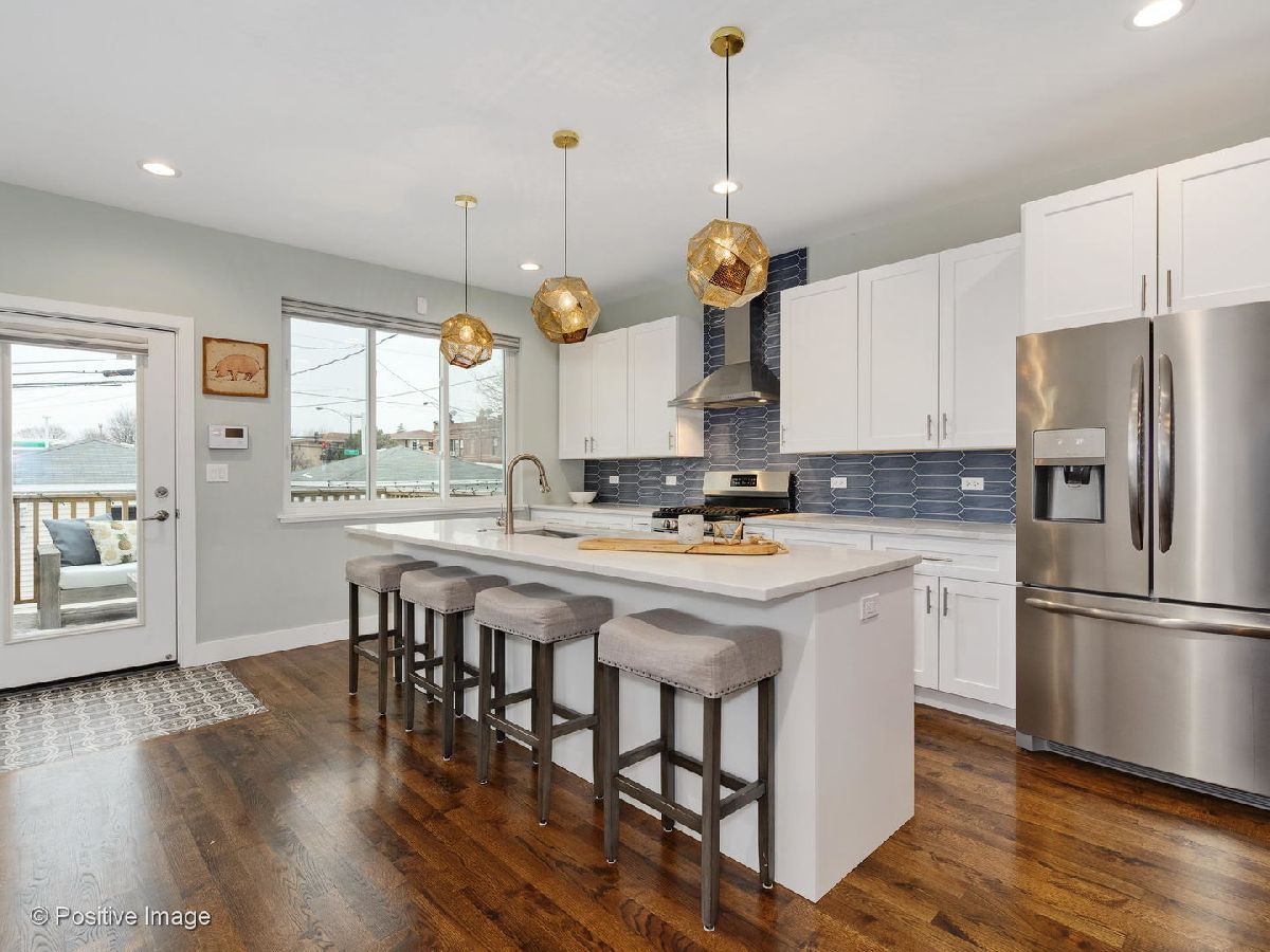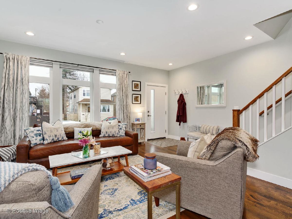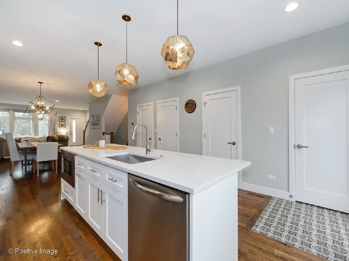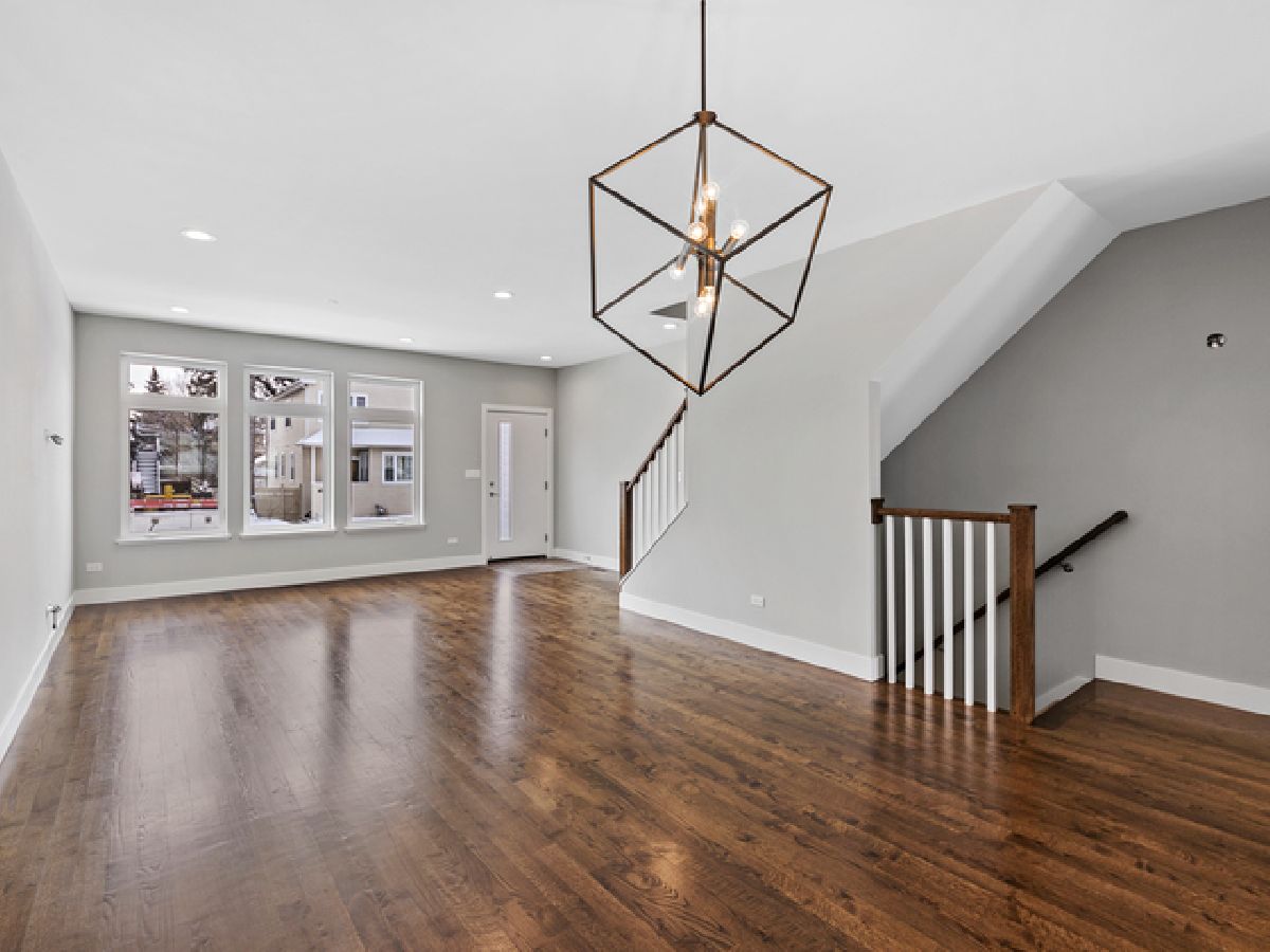 Prime Portage Park! Exuding style and thoughtful design, this 2018 built home offers an open main level consisting of a lovely living room, generous dining space, and polished kitchen! More storage than you'll know what to do with - the main level alone includes a coat closet, pantry closet, and utility/rear coat closet, (all with built-in organizers!), plus a chic wallpapered powder room! Both the front and back entrances are met with mosaic tile flooring, designed to protect the beautiful oak hardwood floors that continue throughout main level. The kitchen is refreshing and airy, with white quartz countertops, sleek white cabinetry. as well as large windows overlooking the spacious (fenced) backyard where you can savor the summer! In addition to closet organizers, window treatments have been added throughout the entire home! Of the 4 total bedrooms, 3 are upstairs, including the en-suite master. Features of the master bathroom include modern tile flooring, curbless standing shower with body sprayers, quartz countertops, grey vanity cabinetry with double sinks, plus a skylight! The master bedroom has a very large walk-thru closet complete with custom organizers! This 2nd floor (with cathedral ceilings throughout!) includes 2 more bedrooms, plus 2 additional hall closets for extra storage, and another stylish bathroom with tub/shower combo, grey quartz countertops, white vanity cabinetry and double sinks! Downstairs, the lower level boasts an enormous family room, bright from the southern exposure and ceiling height! Also included downstairs, the 4th bedroom, 3rd full bathroom, tons of extra storage, and full laundry room! This home has an absolutely ideal layout! Further features - 2 car garage, Nest thermostats, high-efficiency dual zoned HVAC, and high-performing windows! App-controlled security system with multiple cameras also added! This meticulously maintained home seamlessly combines function and style, in an area where newer construction is very hard to find!