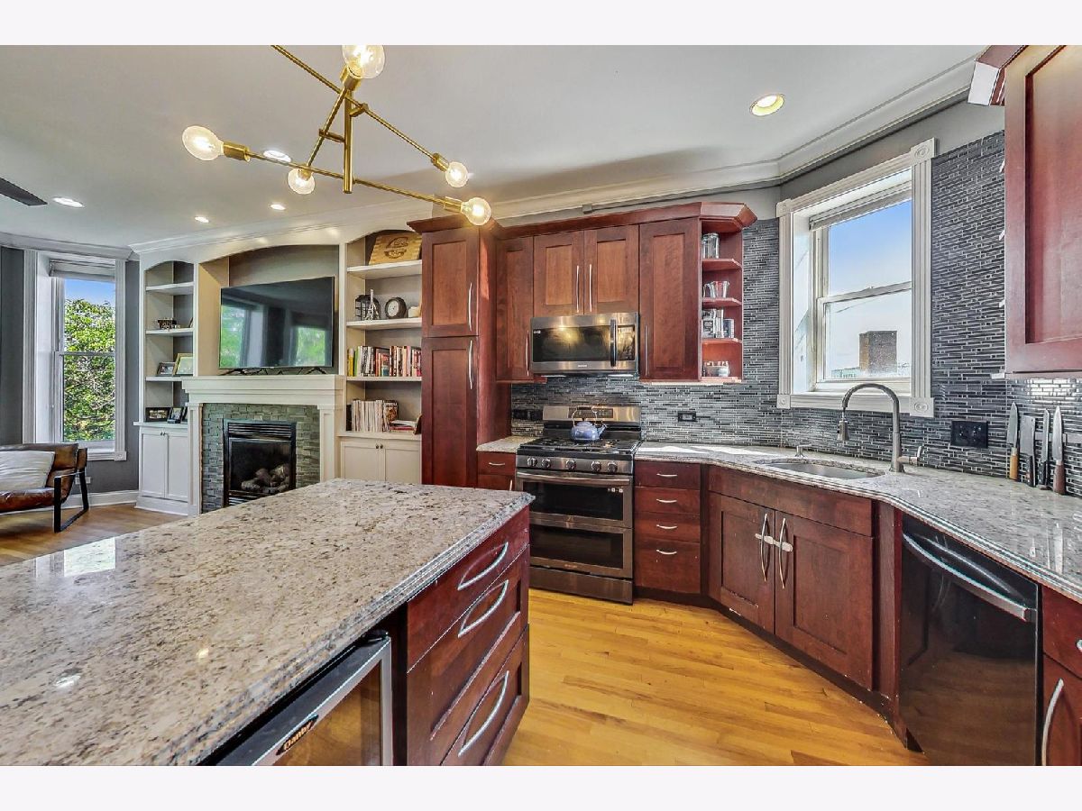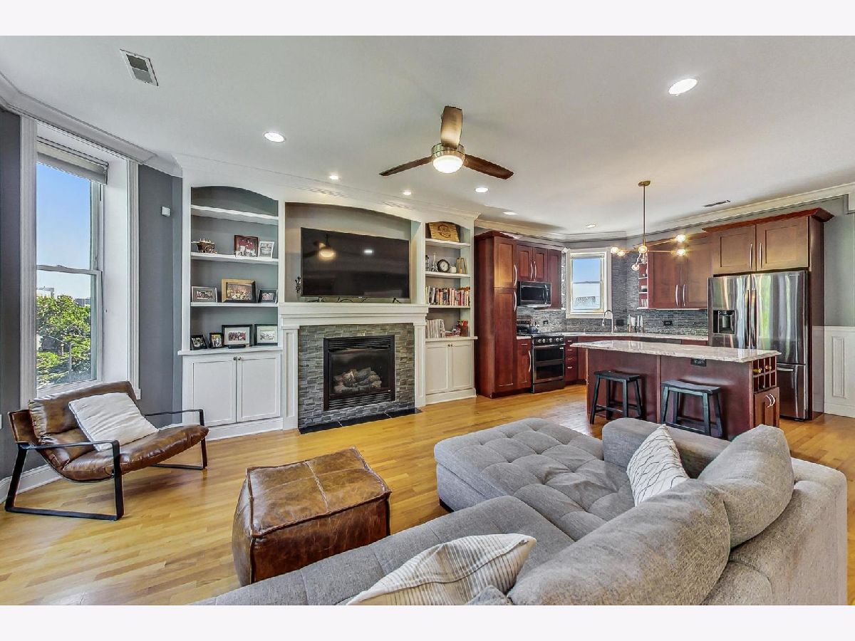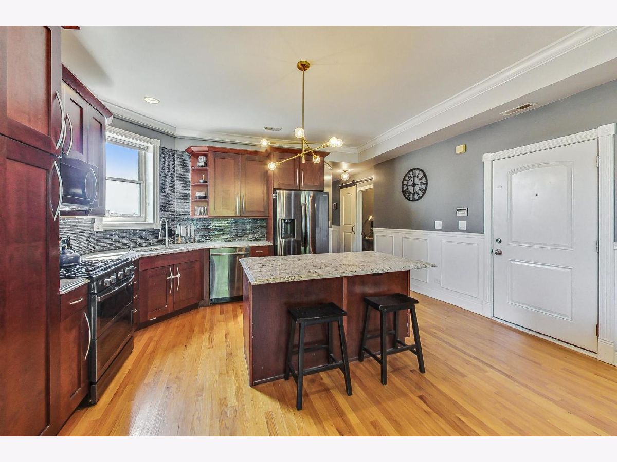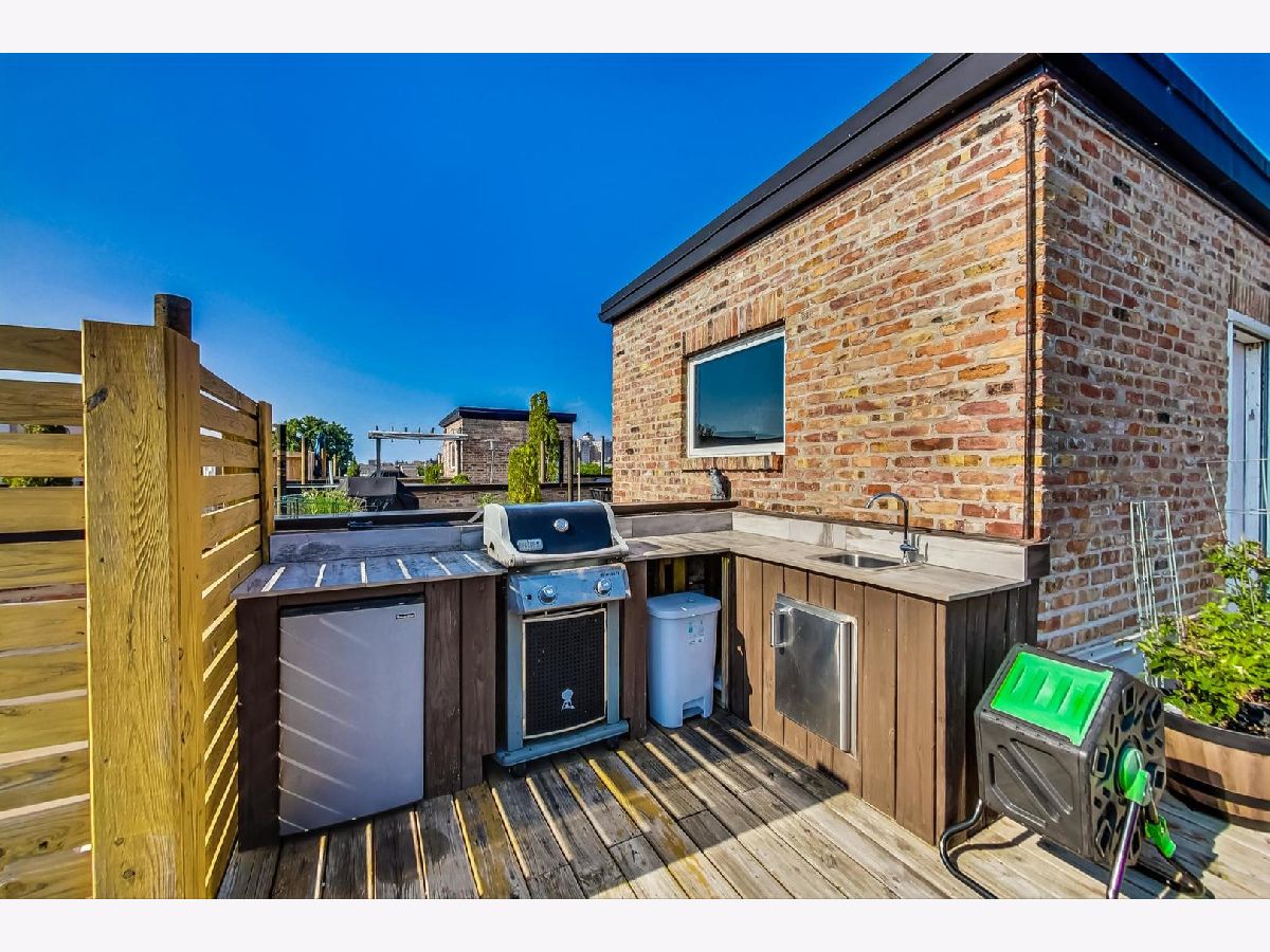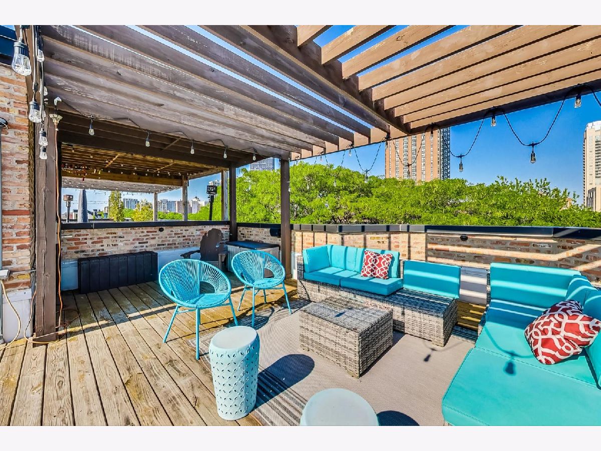 This Edgewater penthouse corner unit is a hidden gem, offering a truly coveted feature in Chicago: 1000 square feet of PRIVATE UNOBSTRUCTED ROOFTOP space. Imagine having your own exclusive outdoor oasis with 360-degree views of the city, perfect for entertaining, relaxing, and gardening. This spacious home includes 2 bedrooms plus an office space and two full baths. The open concept living/dining/kitchen area features oak flooring throughout and stunning high ceilings. The living room is adorned with custom built-ins and wainscoting, and a newly remodeled gas fireplace. The kitchen boasts a large center island with a wine fridge, double bullnose granite countertops, and cherry wood cabinetry. The primary suite offers a walk-in closet and a primary bath with a steam shower. However, the star of this home is the PRIVATE ROOF DECK, which includes a fully equipped outdoor kitchen. This rooftop space is a gardener's paradise, offering full sun, partial sun, and full shade options. Additionally, an outdoor speaker system was installed in 2019, making it an ideal spot for both relaxation and entertainment. One assigned parking spot in a detached garage is included. Recent preventative maintenance improvements to, ensure peace of mind with updates such as a new water heater (2021), new furnace & A/C unit (2020), and a newer roof (2018). Located a short walk from Foster Beach and Andersonville's dining and shopping, and just a 2-minute walk to the Berwyn red line stop. Conveniently close to Jewel, CVS, and Mariano's. Don't miss out on this extraordinary home! Note: This is not an elevator building.
