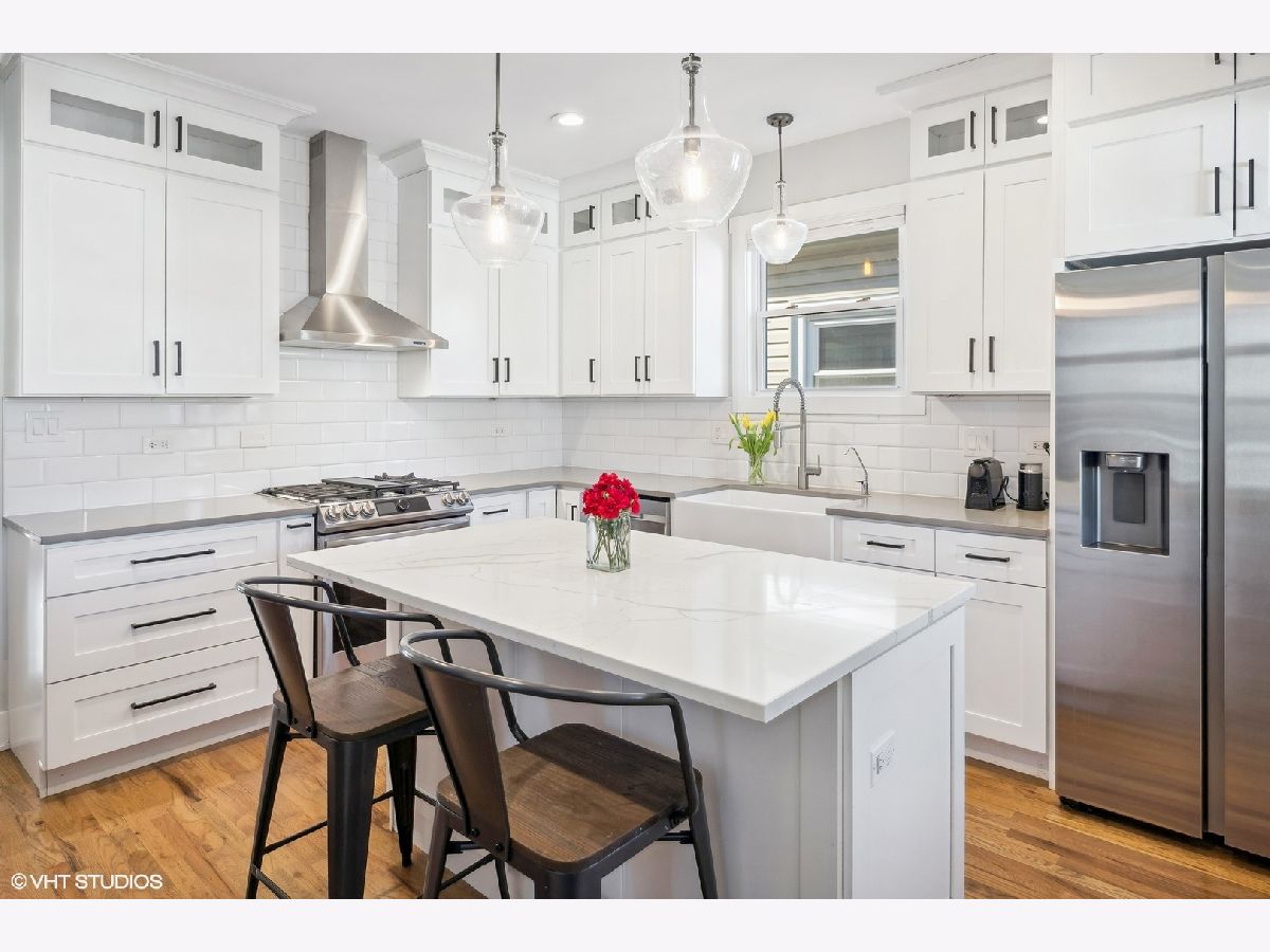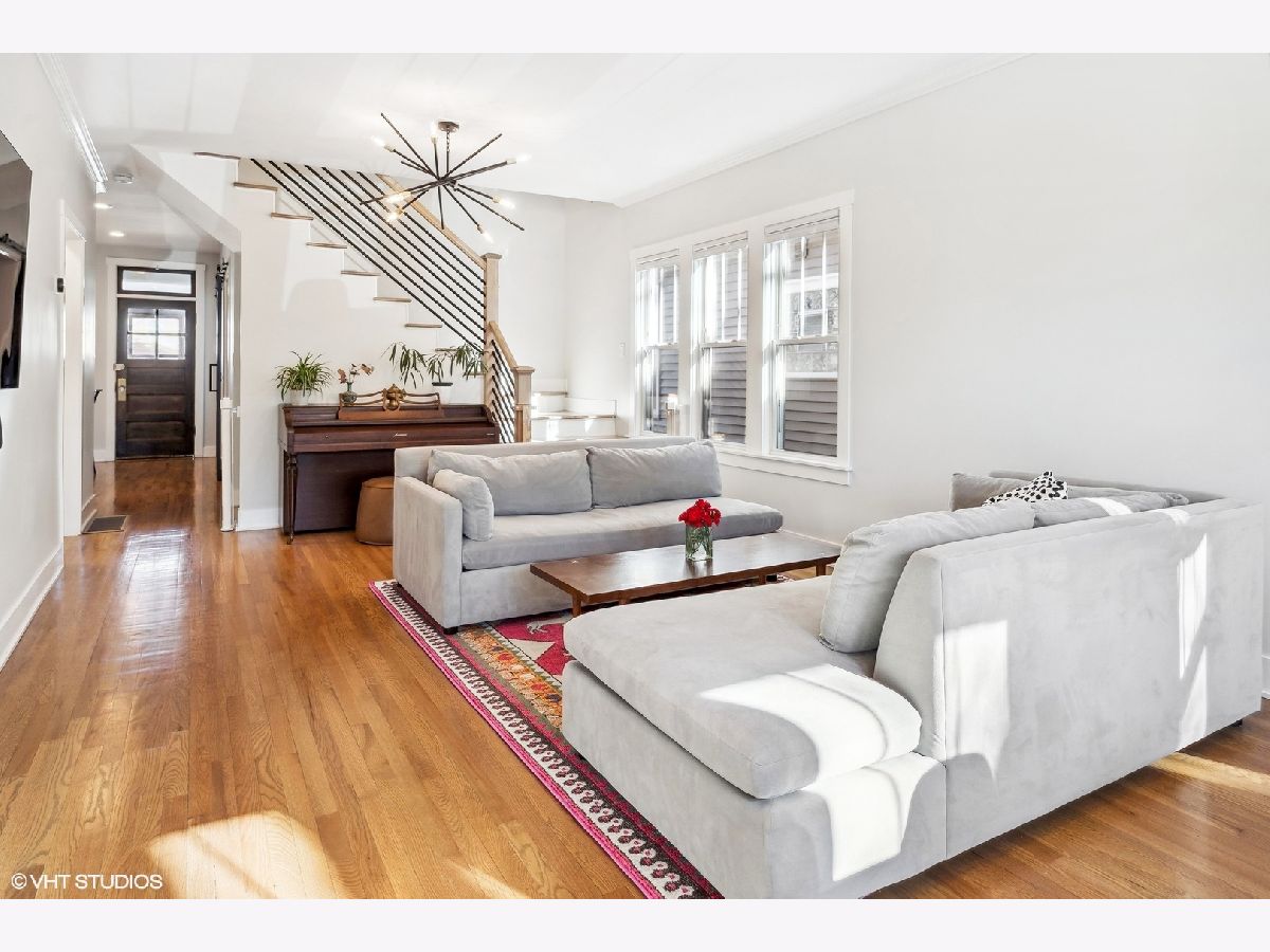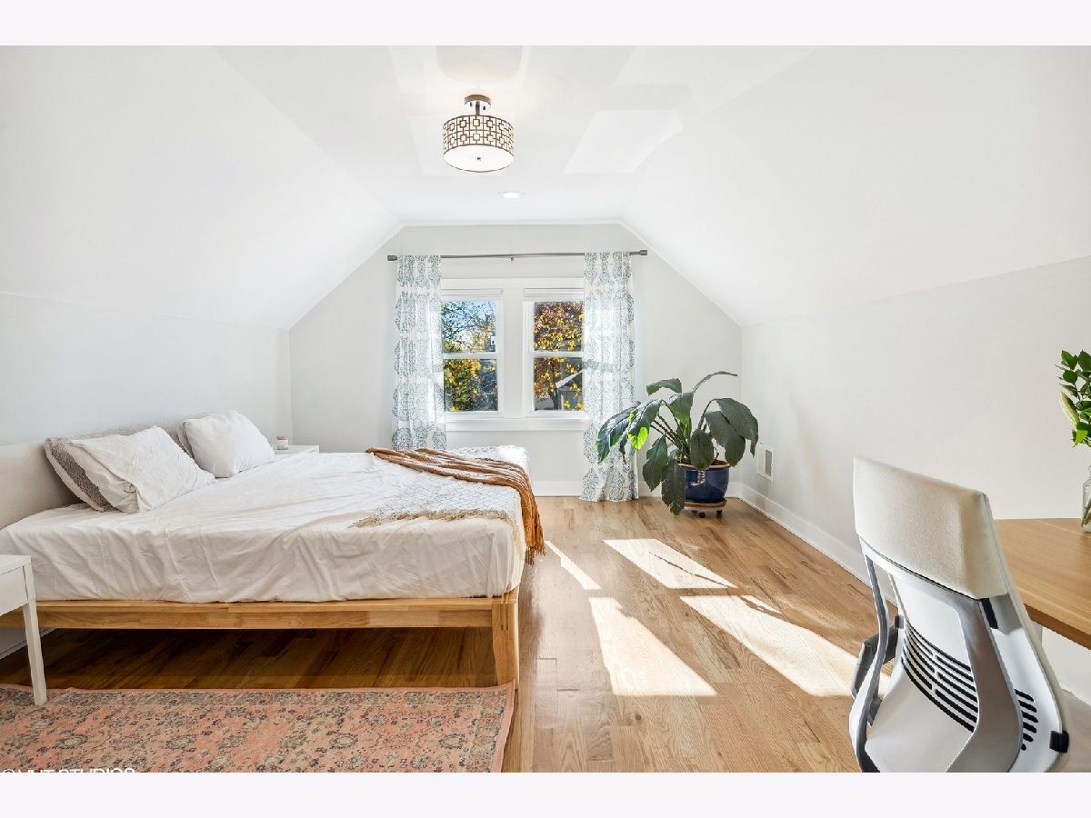 Welcome to this beautiful 5 bedroom/3 bath single-family home on a 30' EXTRA-WIDE lot in picturesque Portage Park! This bungalow was thoughtfully rehabbed in 2021 and is a perfect blend of modern amenities and timeless style. Charming curb appeal sets the stage for what awaits inside. Upon entering, you're met with beautifully refinished original oak floors and a massive combined living and dining room. South-facing windows flood the space with natural light. The bright and airy kitchen is a chef's delight with quartz countertops, extra-tall shaker cabinets, subway tile, farm sink, Samsung SmartThings appliances, motion-controlled faucet, and a separate pantry with dry bar for additional storage. Just off the kitchen, a stylish barn door leads to a versatile bedroom, playroom, or office. A generously sized second bedroom with a full bath, and a three-season room round out this level. Upstairs, the large primary bedroom is a retreat with two huge walk-in closets. A large second bedroom also boasts a walk-in closet. The luxurious shared bath features a double vanity and spa-like double shower. The lower level has high ceilings, a generous rec room for play or movie nights, and a 5th bedroom with a full bath - perfect for guests or as a home office. The full laundry room includes a utility sink and even more storage. An additional bonus space can be customized as a home gym or easily converted into an extra bedroom. Step outside to relax and entertain in the large landscaped backyard with deck and brand-new jacuzzi tub. Among the home's many upgrades, additional insulation was added in 2022 for energy efficiency, and a new whole home water filtration system and sewer backup prevention system were added in 2023. This property also includes a 2-car garage with new garage pad for added convenience. Located in vibrant Portage Park, this residence is one block from Gray Elementary and a stone's throw from the soon-to-be redeveloped Six Corners District, grocery stores, restaurants, multiple parks, community pool, multiple bus lines, metra, and expressway. This fantastic home truly offers a lifestyle of convenience and enjoyment!
